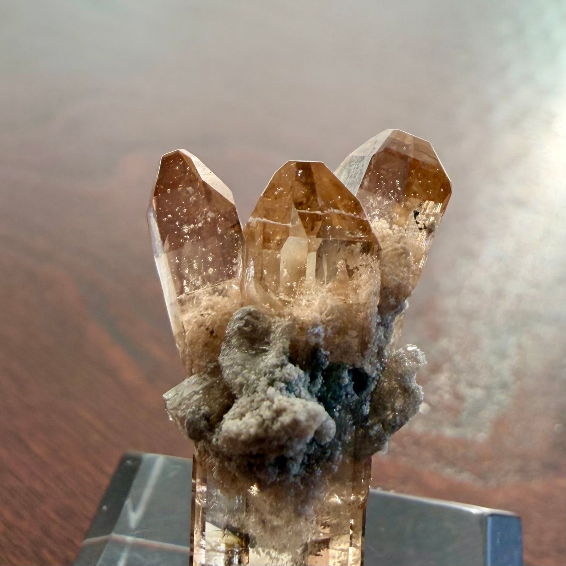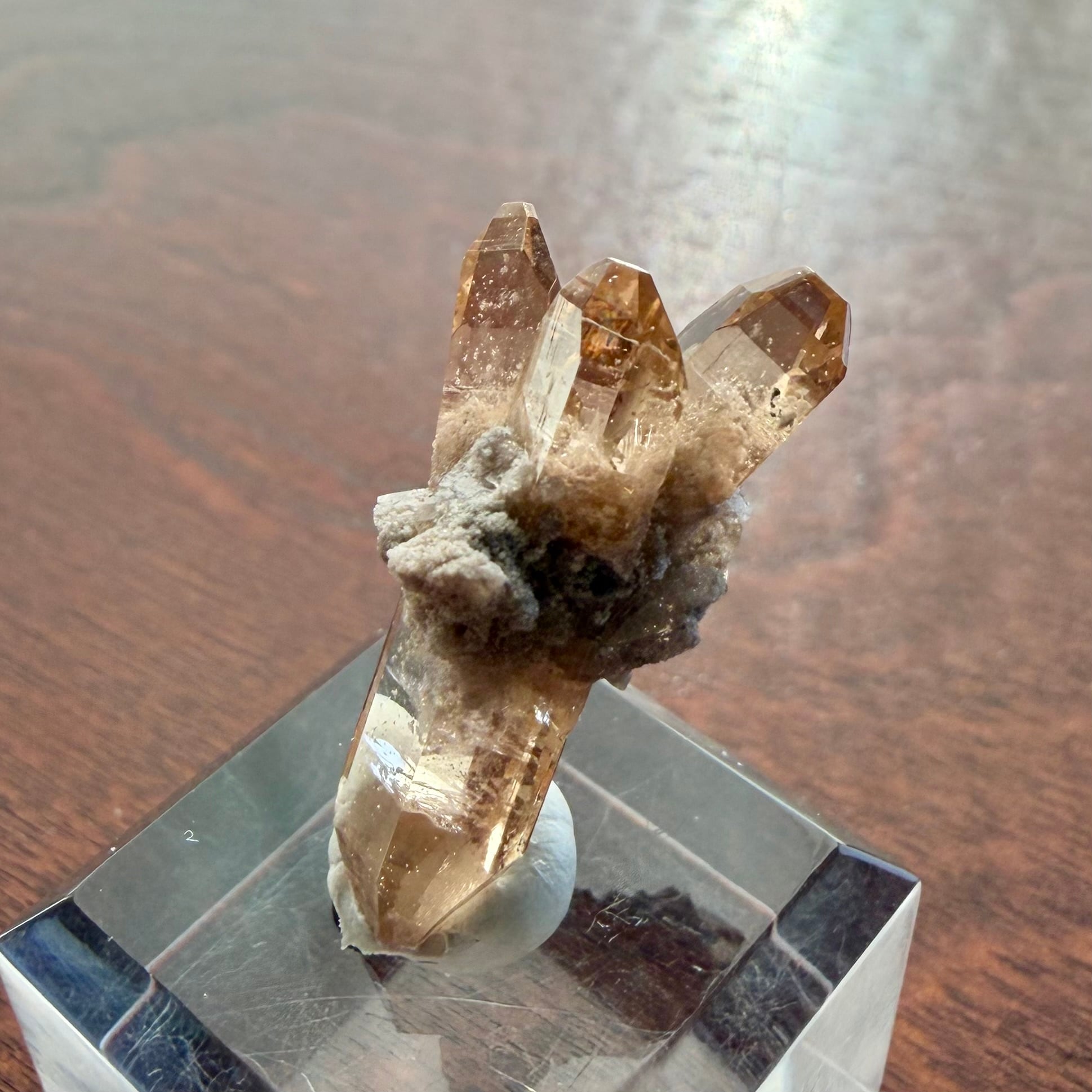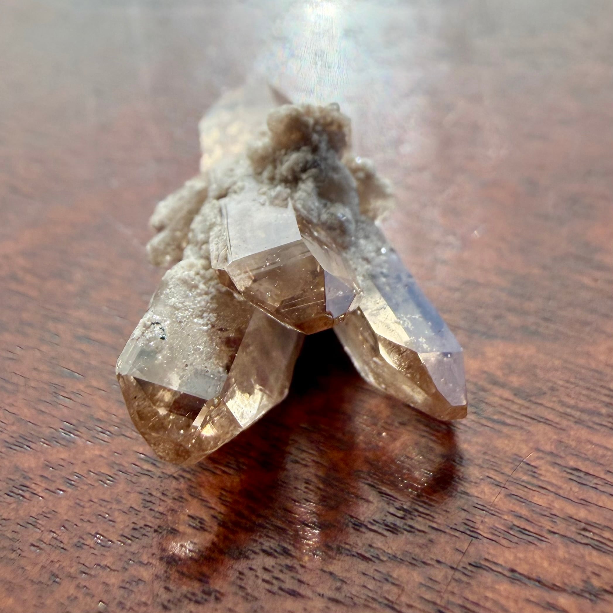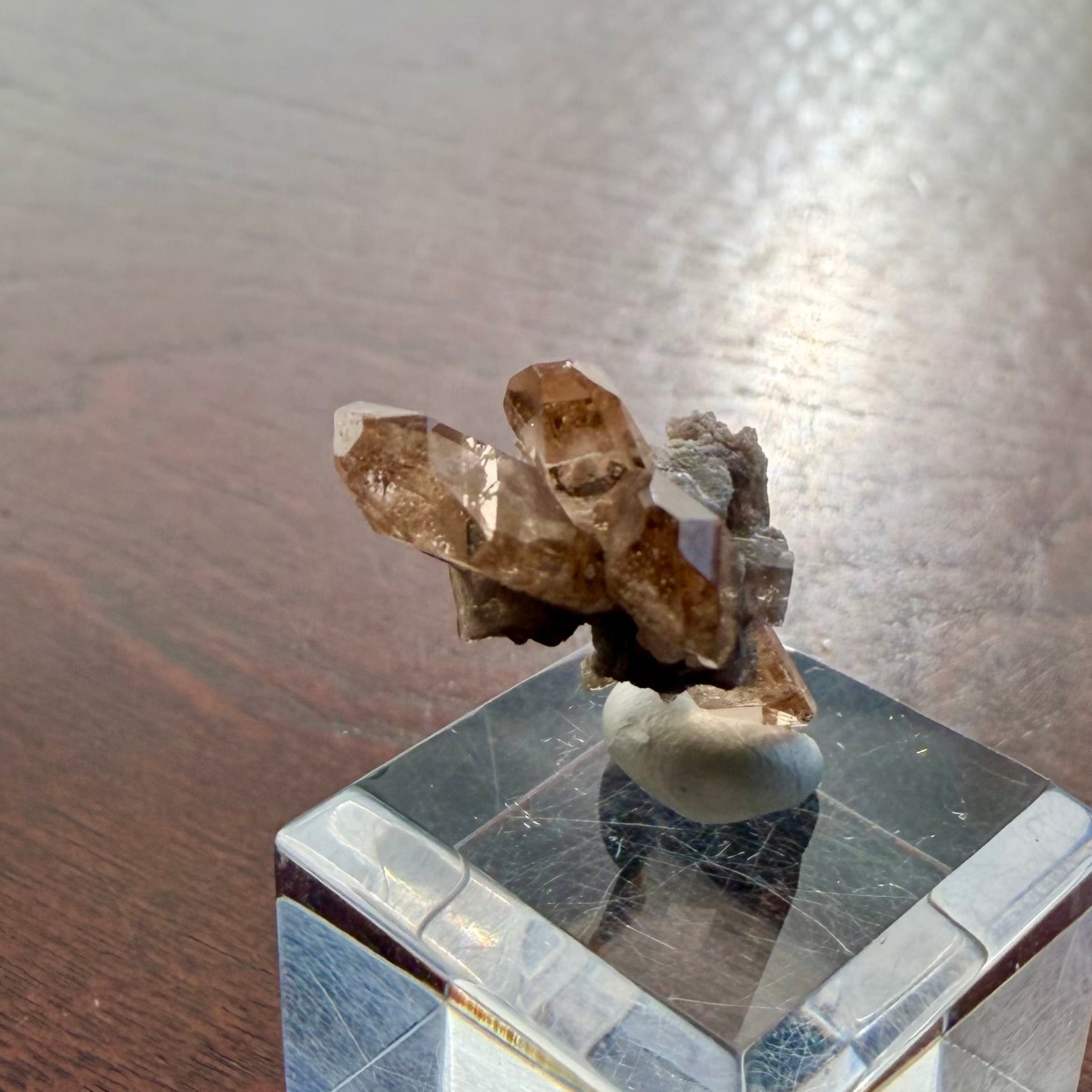 当該産地といえばこうだよね、といった発色や形状を維持した結晶ですが、印象的なのは片方が三叉に分かれたユニークな形状で、透明感やテリの強さとそのユニークさが相まって、唯一無二感が更に感じられます。