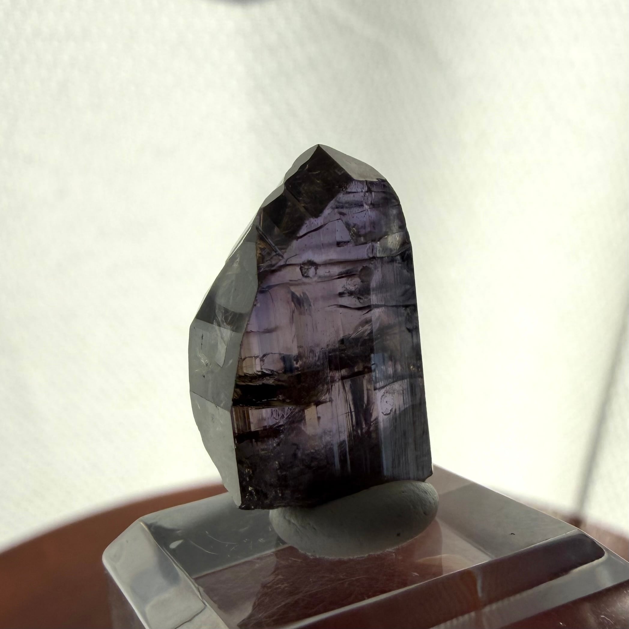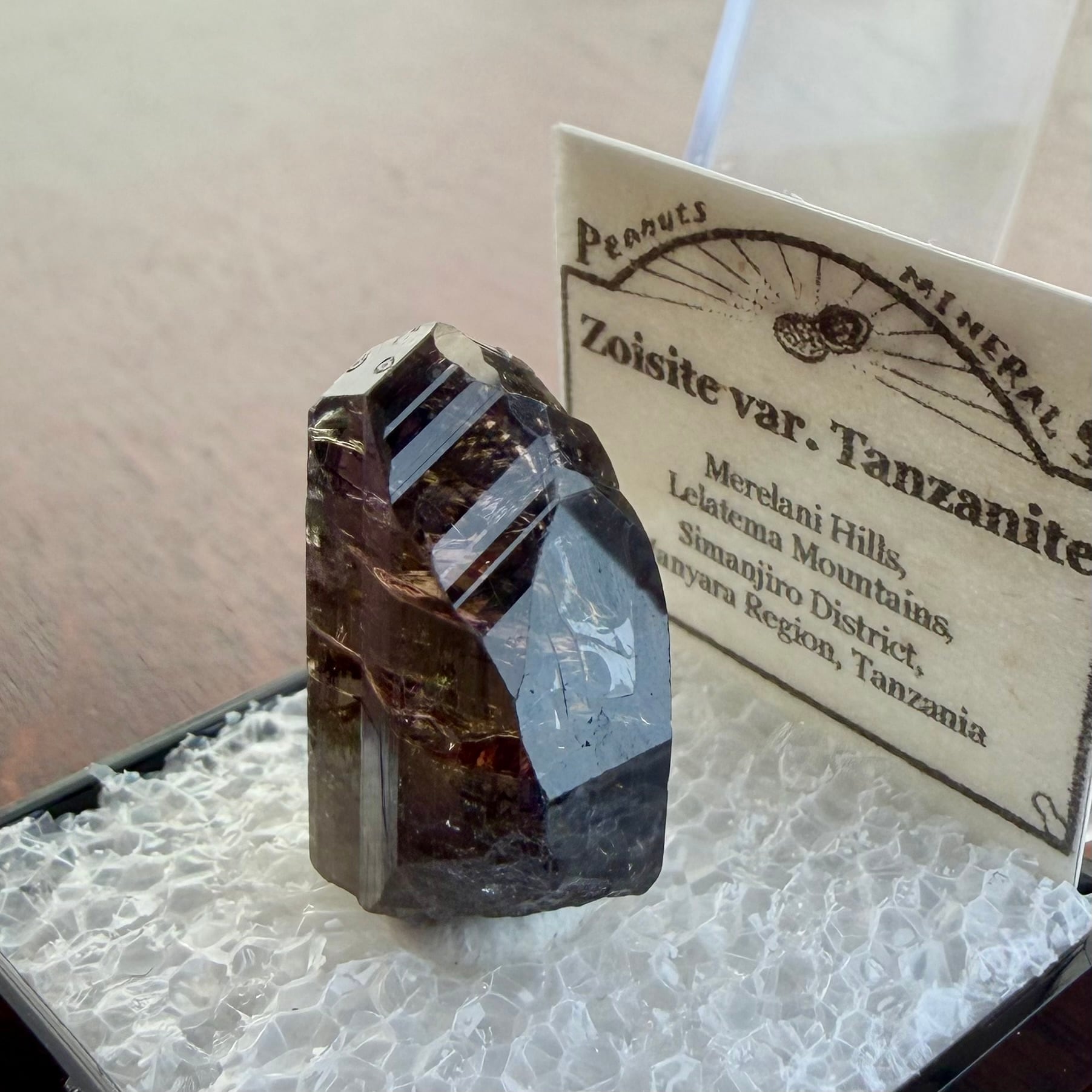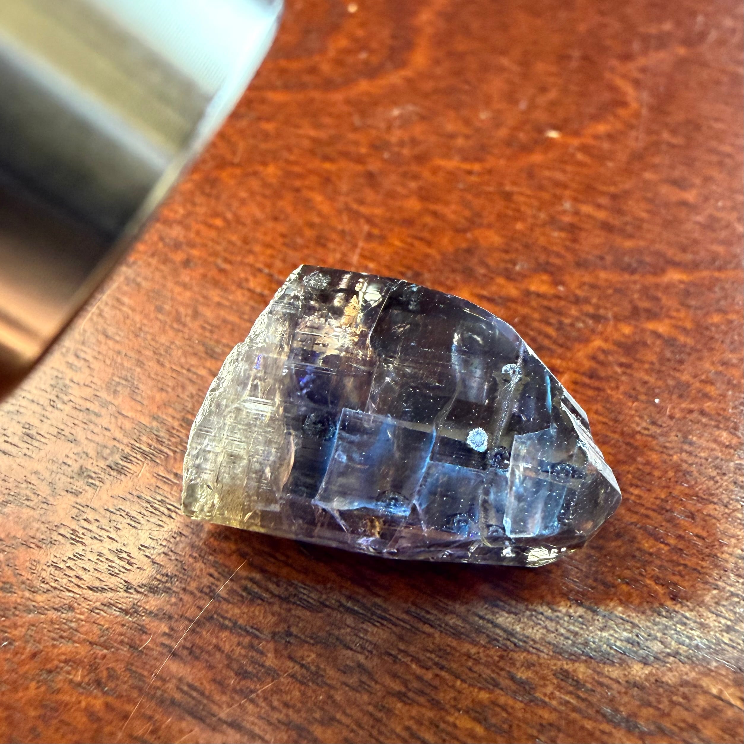 タンザナイトの結晶、サムネイルサイズですが厚みのある結晶は比較的クラックが少なめのためしっかりと透過し、美しい発色を楽しめます。