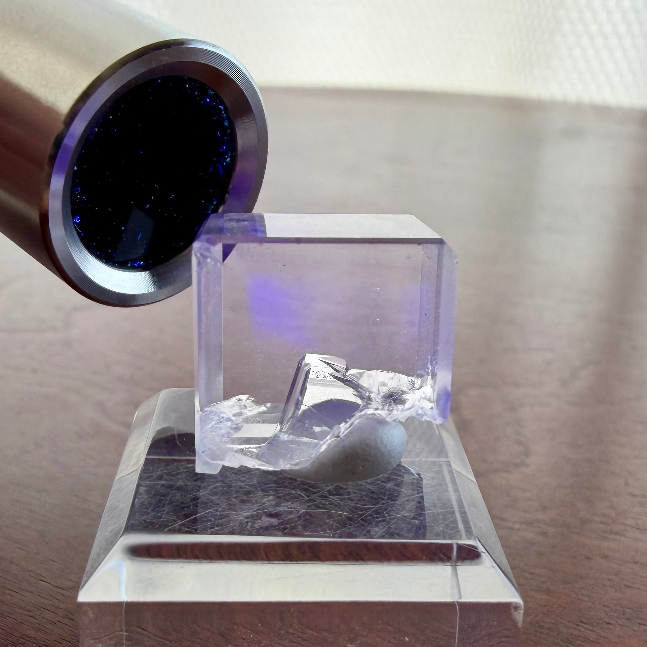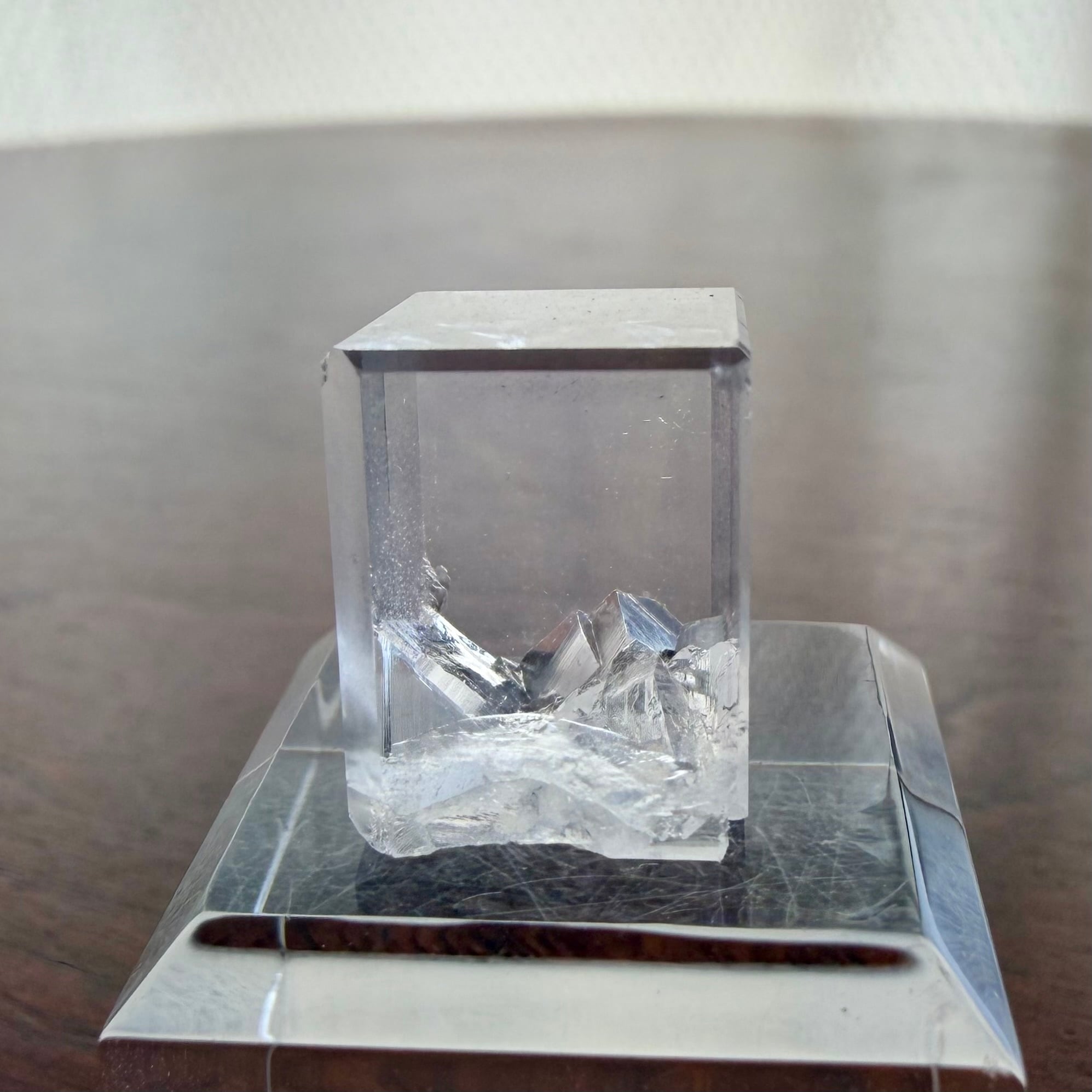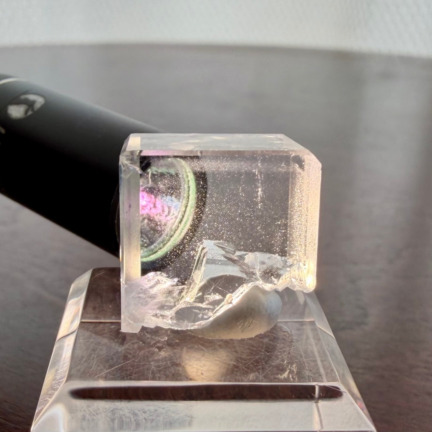 ほんのりとモヤがかったパープルのファントムが目を凝らすと見えますが、それ以外はカラーレス で非常にクリアな結晶です。
