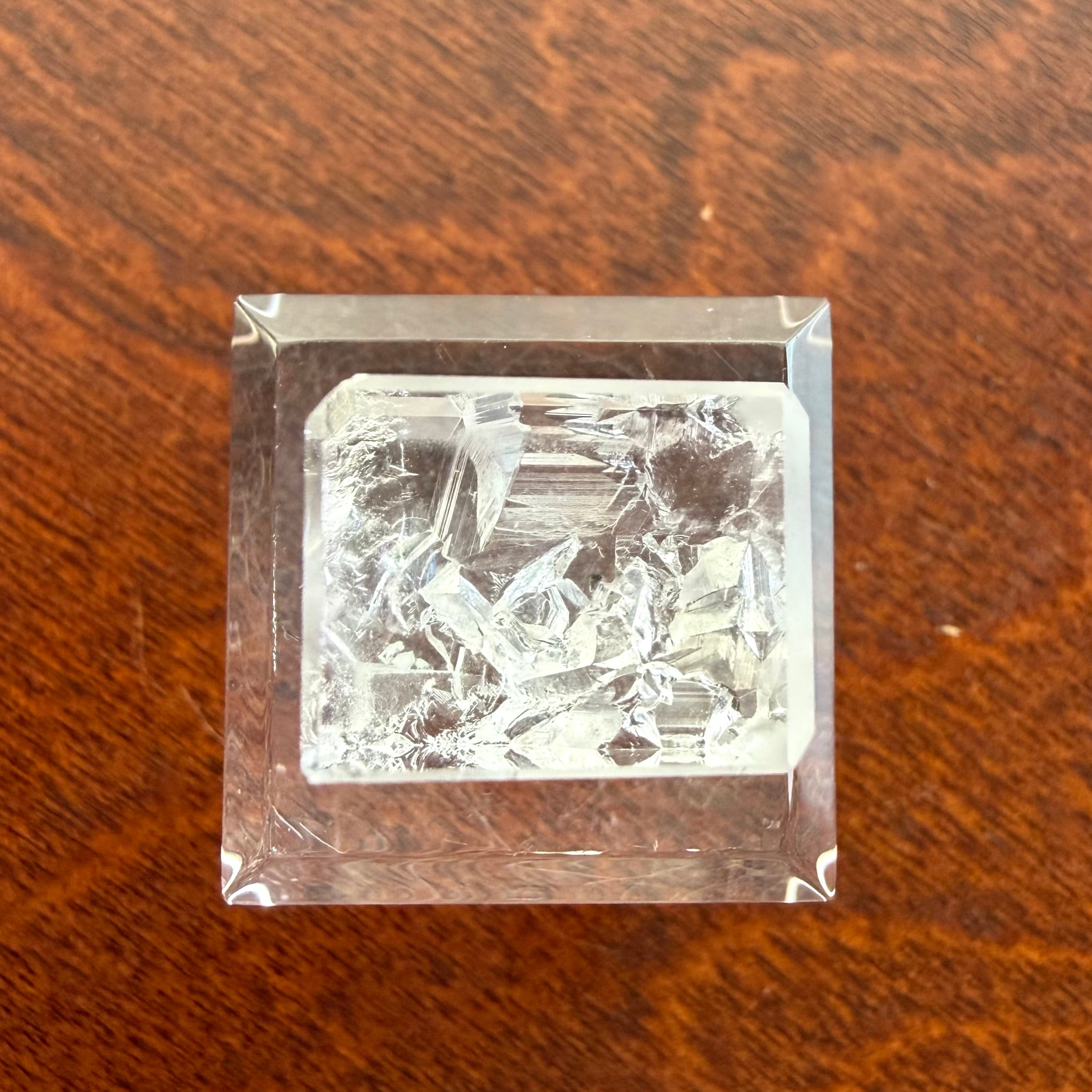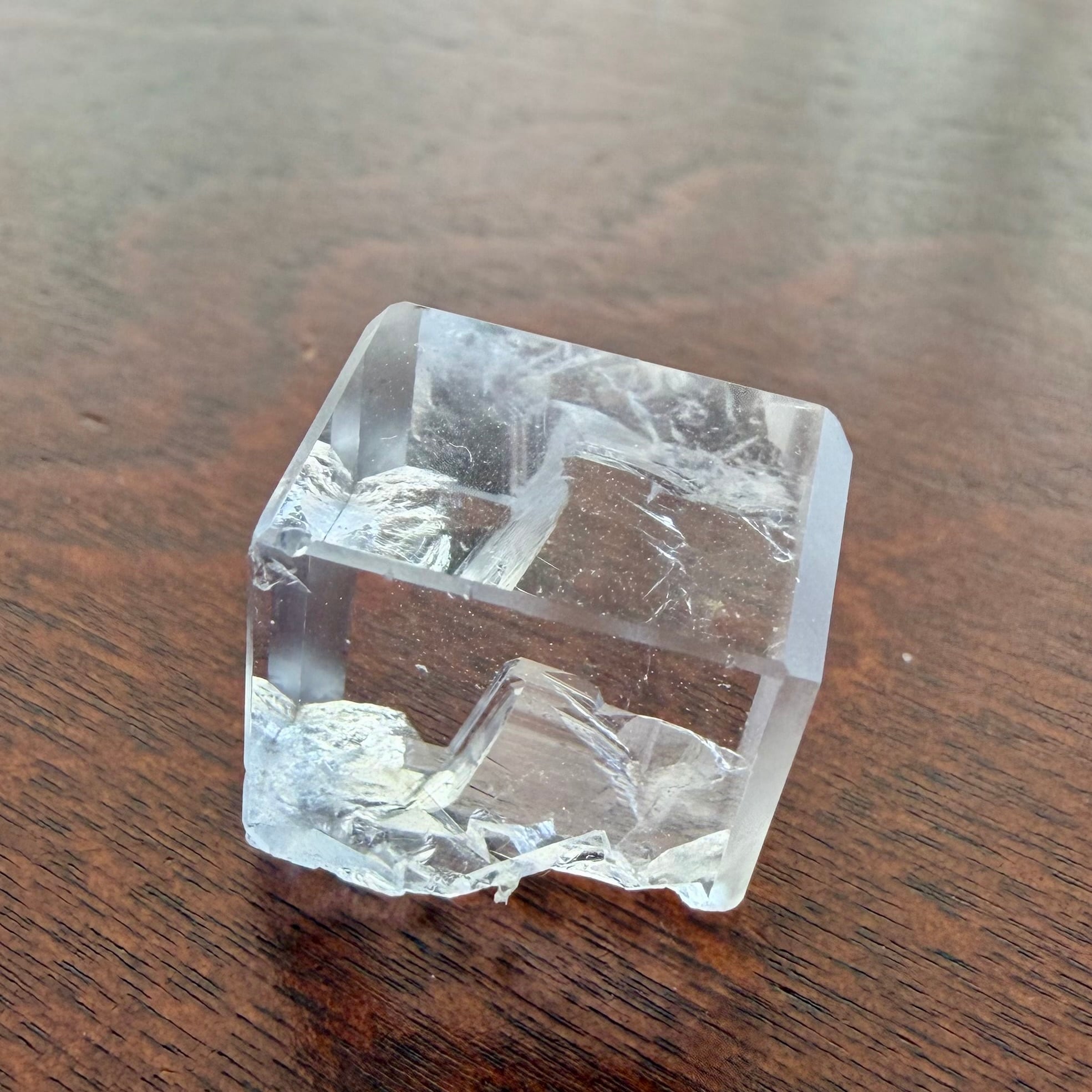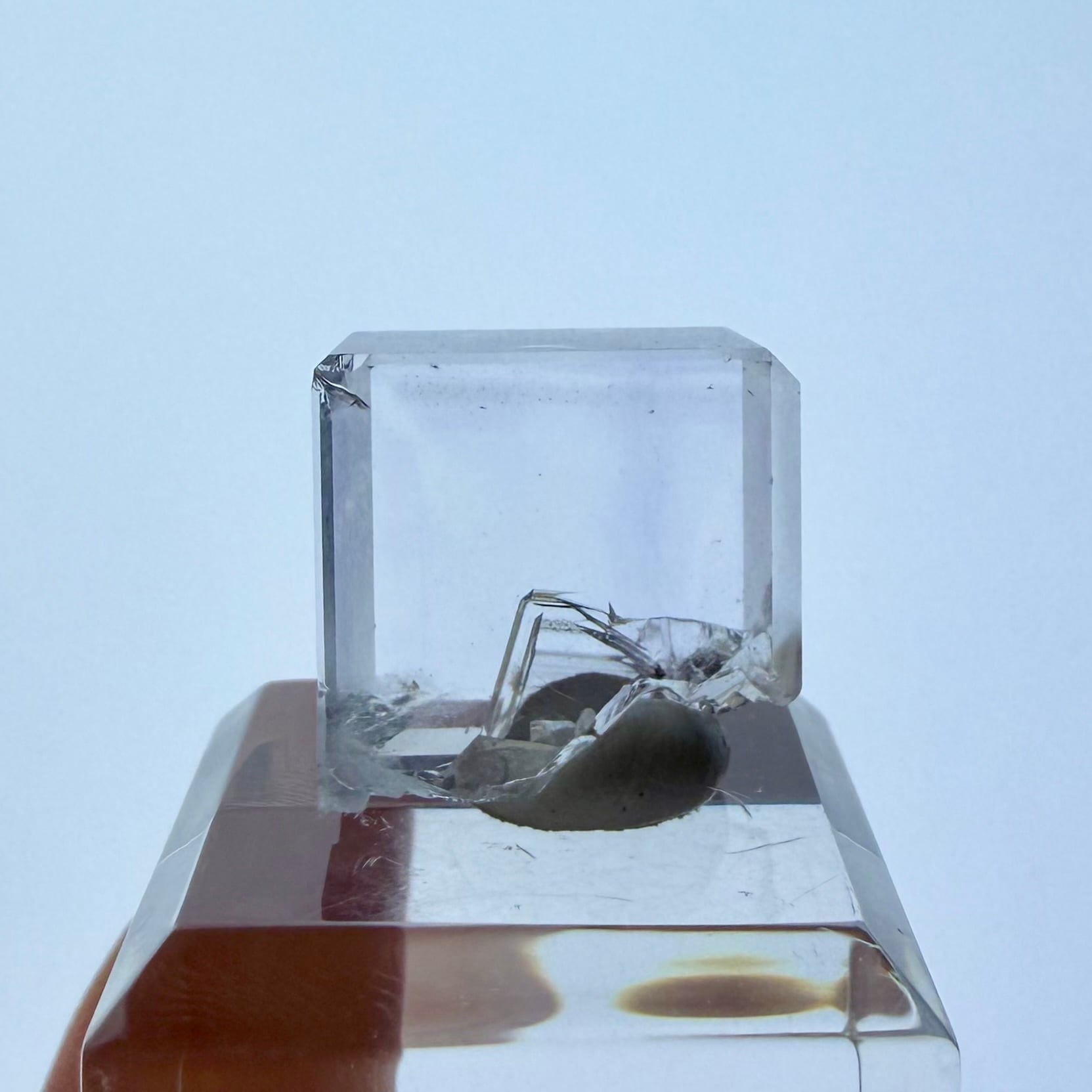 ほんのりとモヤがかったパープルのファントムが目を凝らすと見えますが、それ以外はカラーレス で非常にクリアな結晶です。