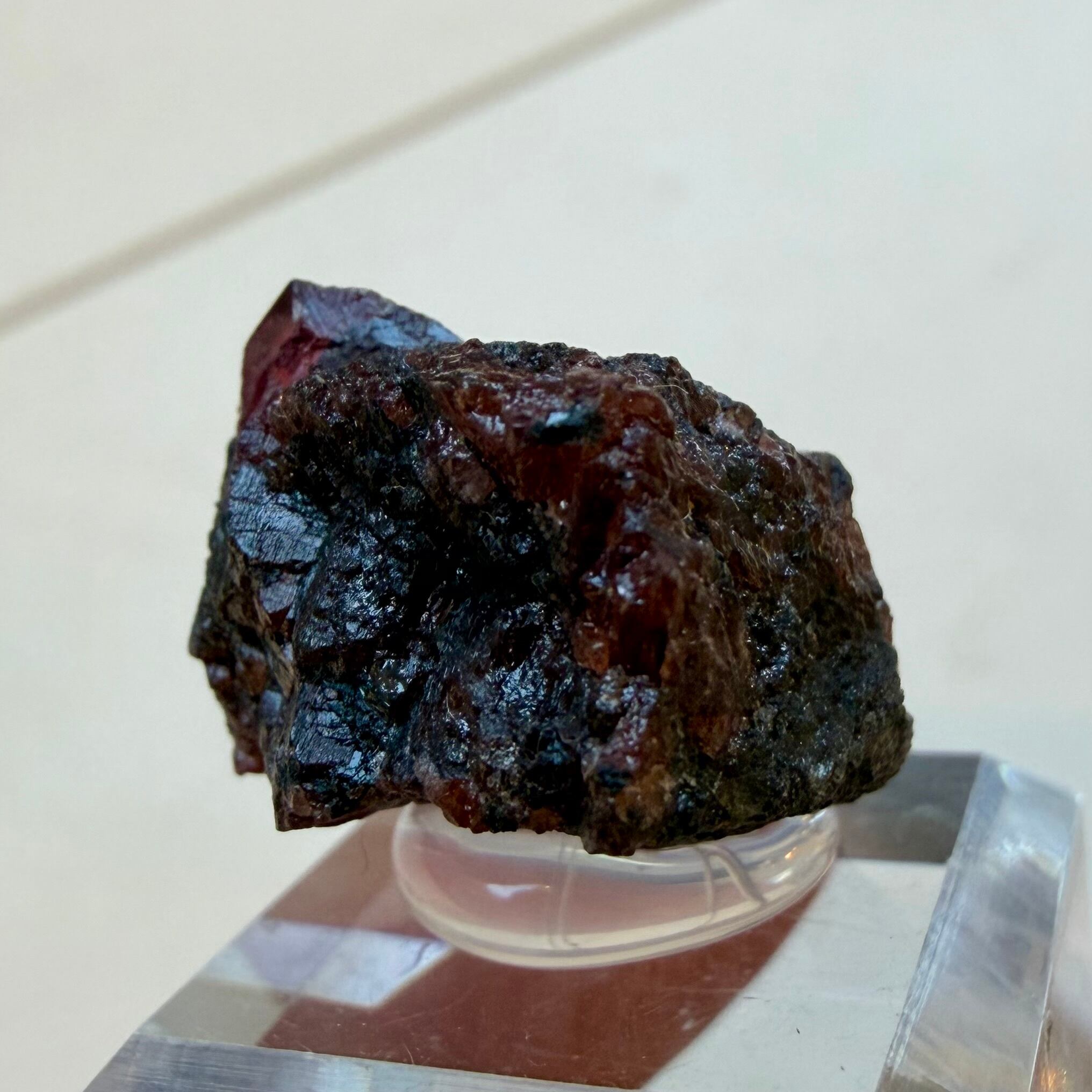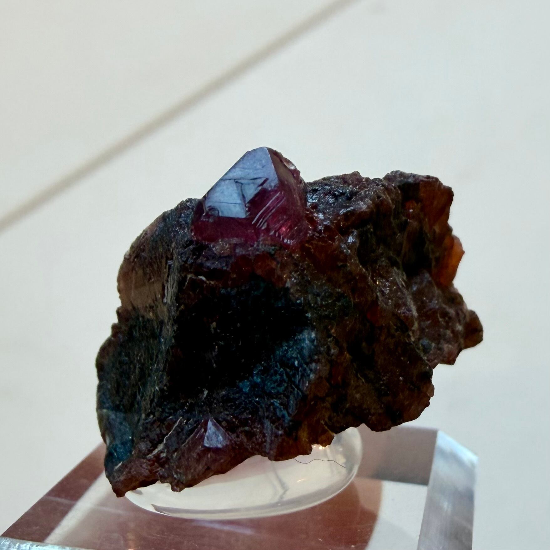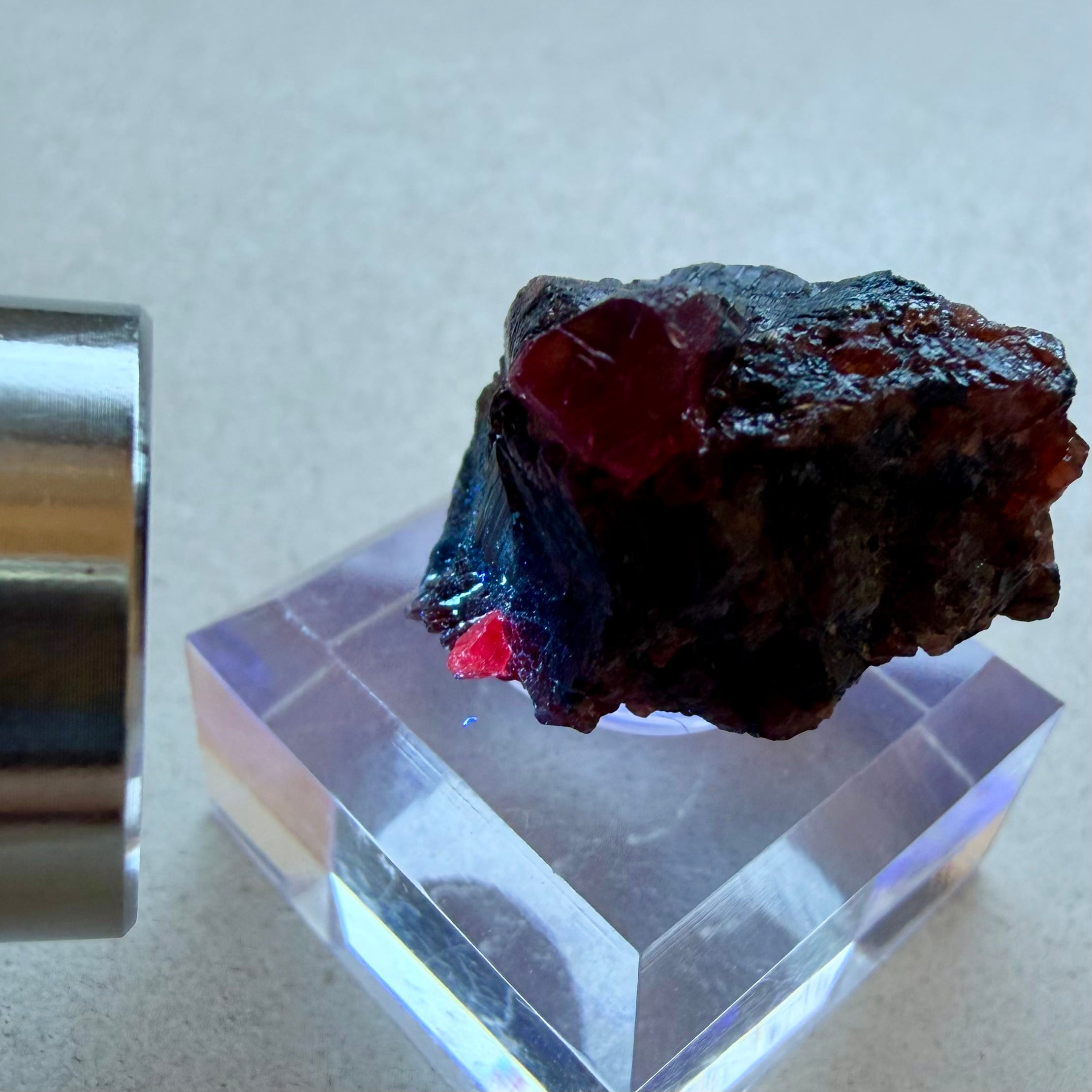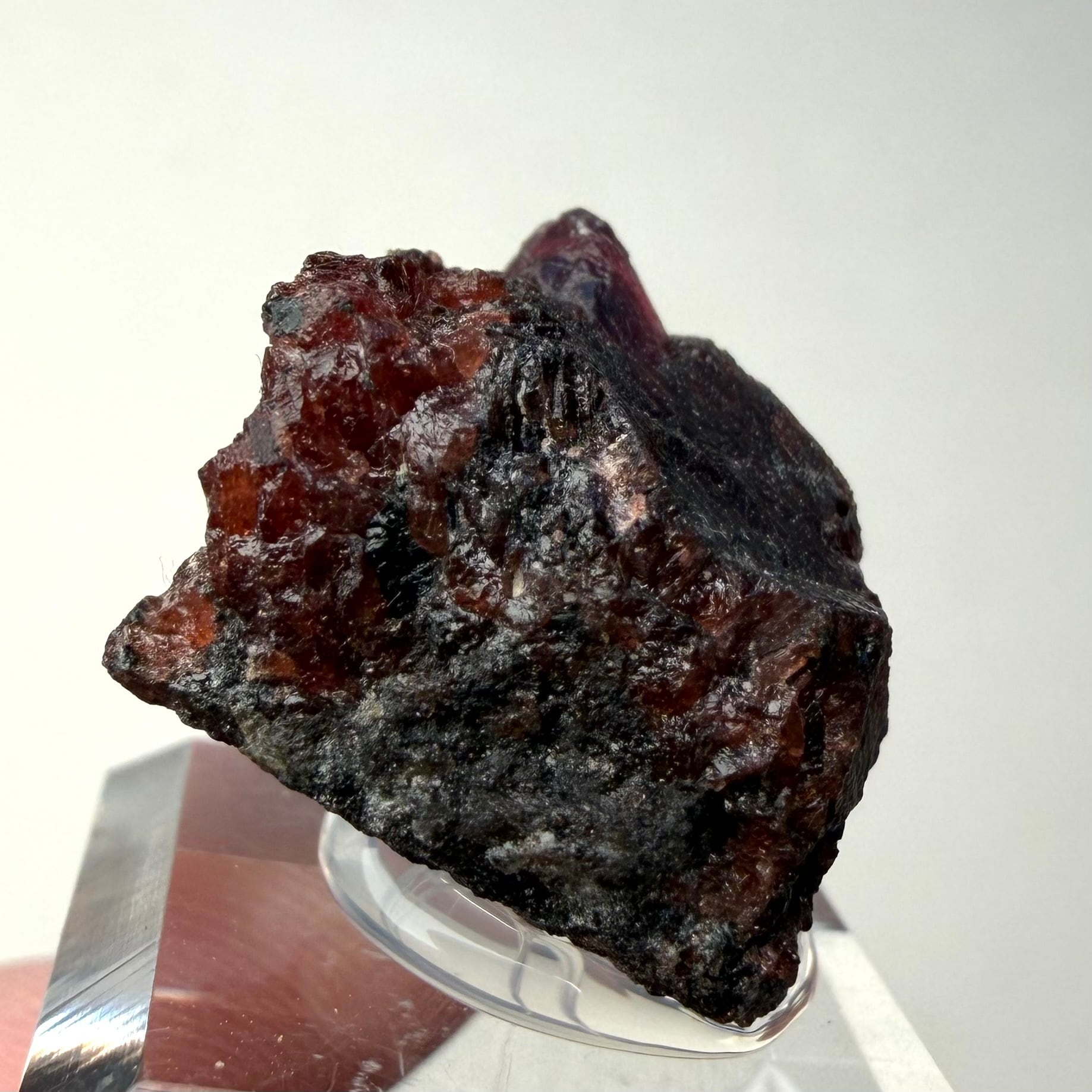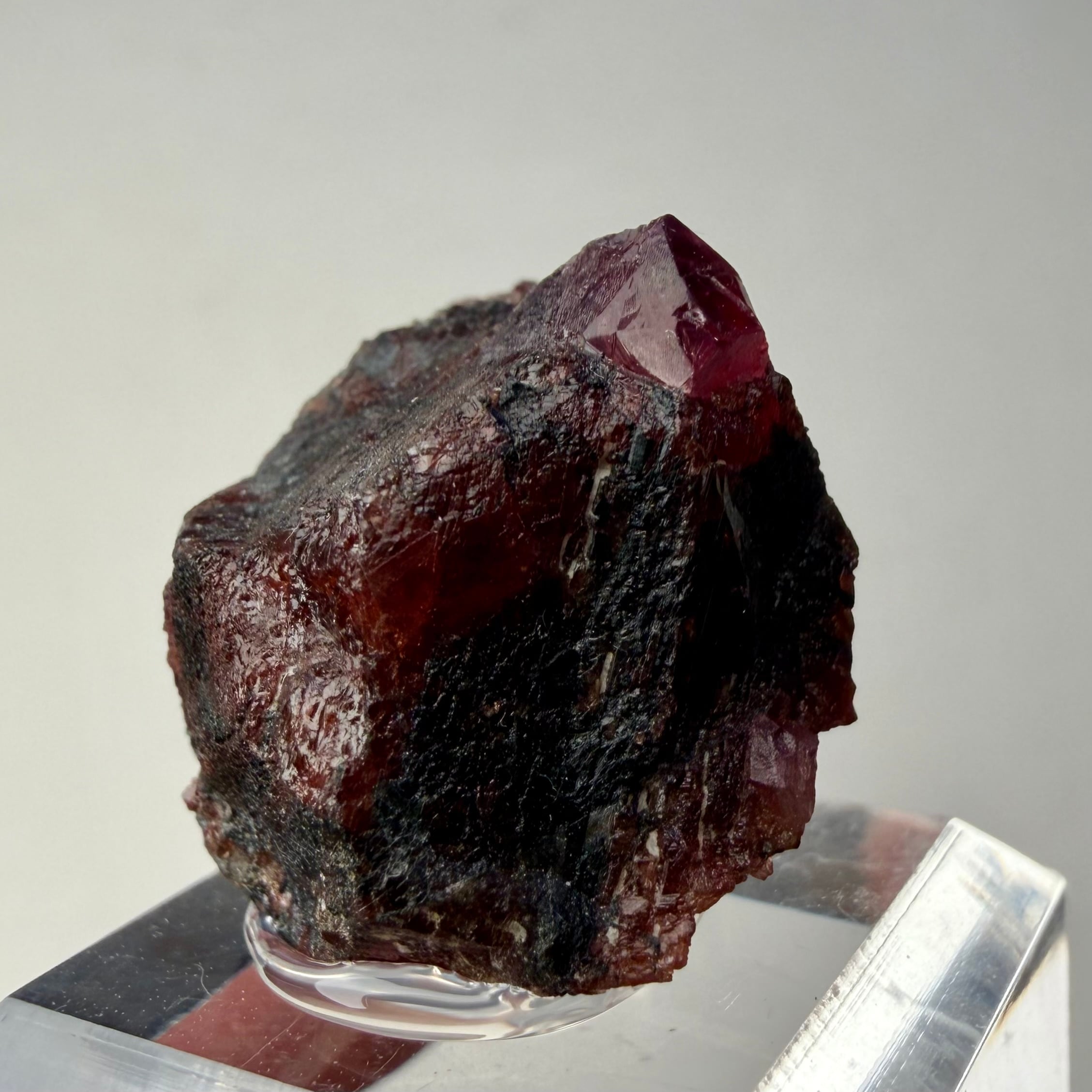 ルビーとは言い切れない、ある意味ウィンザ産らしいパープル混じりの発色が見られるサファイアと、ガーネットとのコンビネーション、特にメイン結晶はしっかりと宝石質な部分が見て取れます。