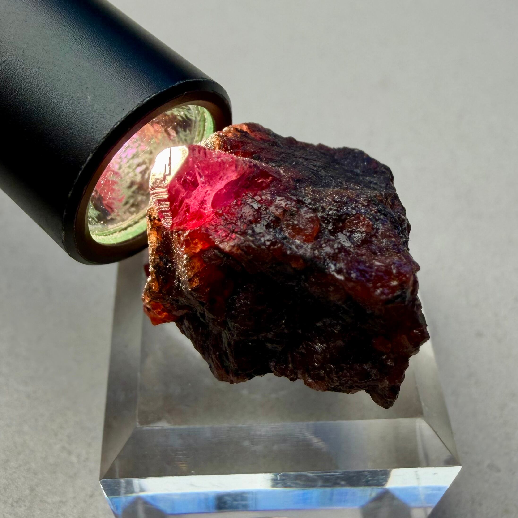 また、蛍光の写真がある意味分かりやすいのですが、真っ赤な蛍光を見せるサファイア以外の部分がガーネットで、ユニークなコンビネーションが楽しめます。