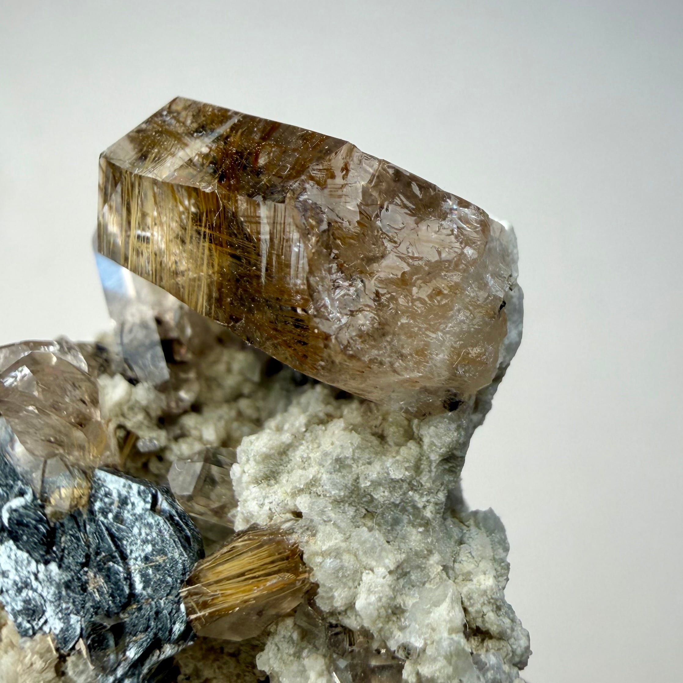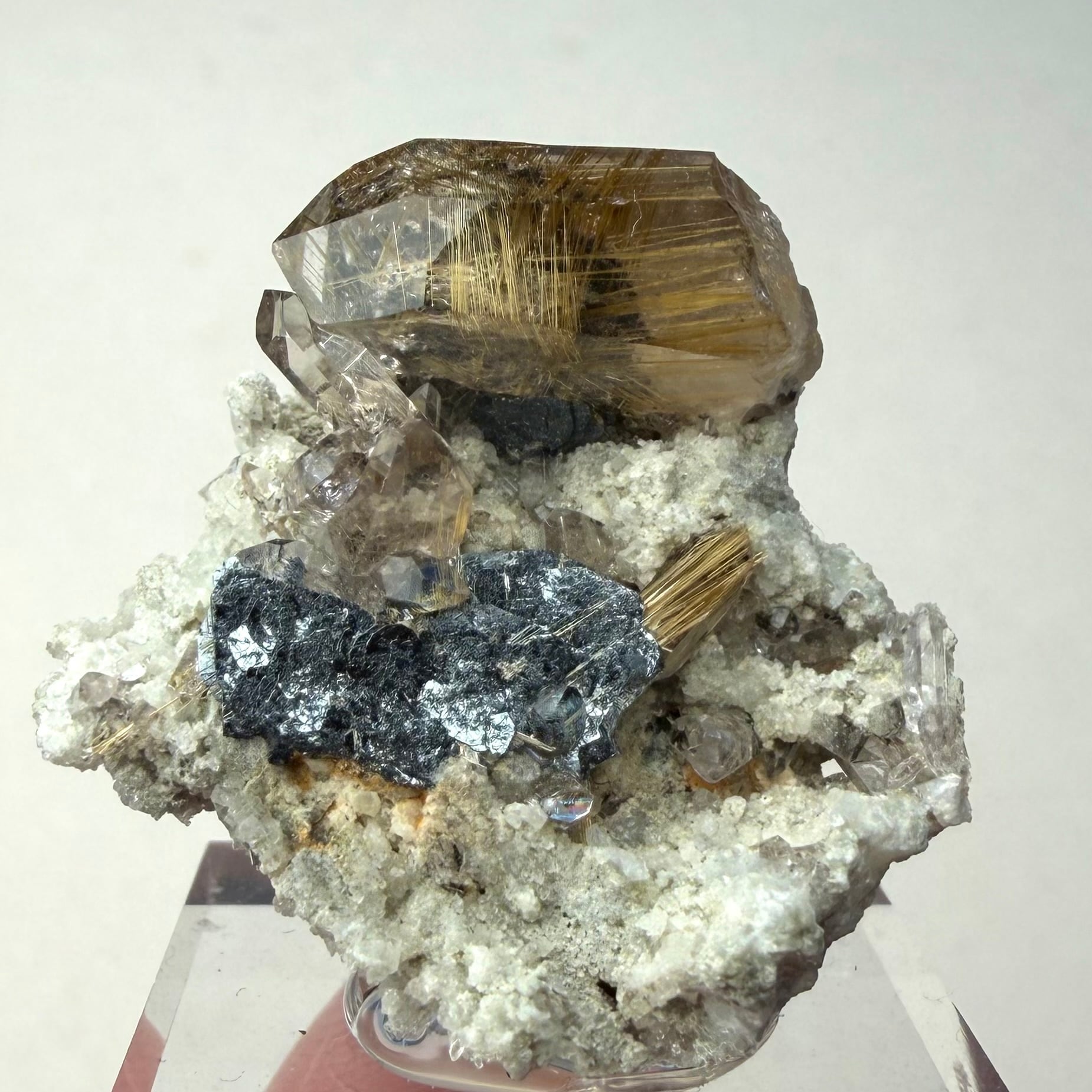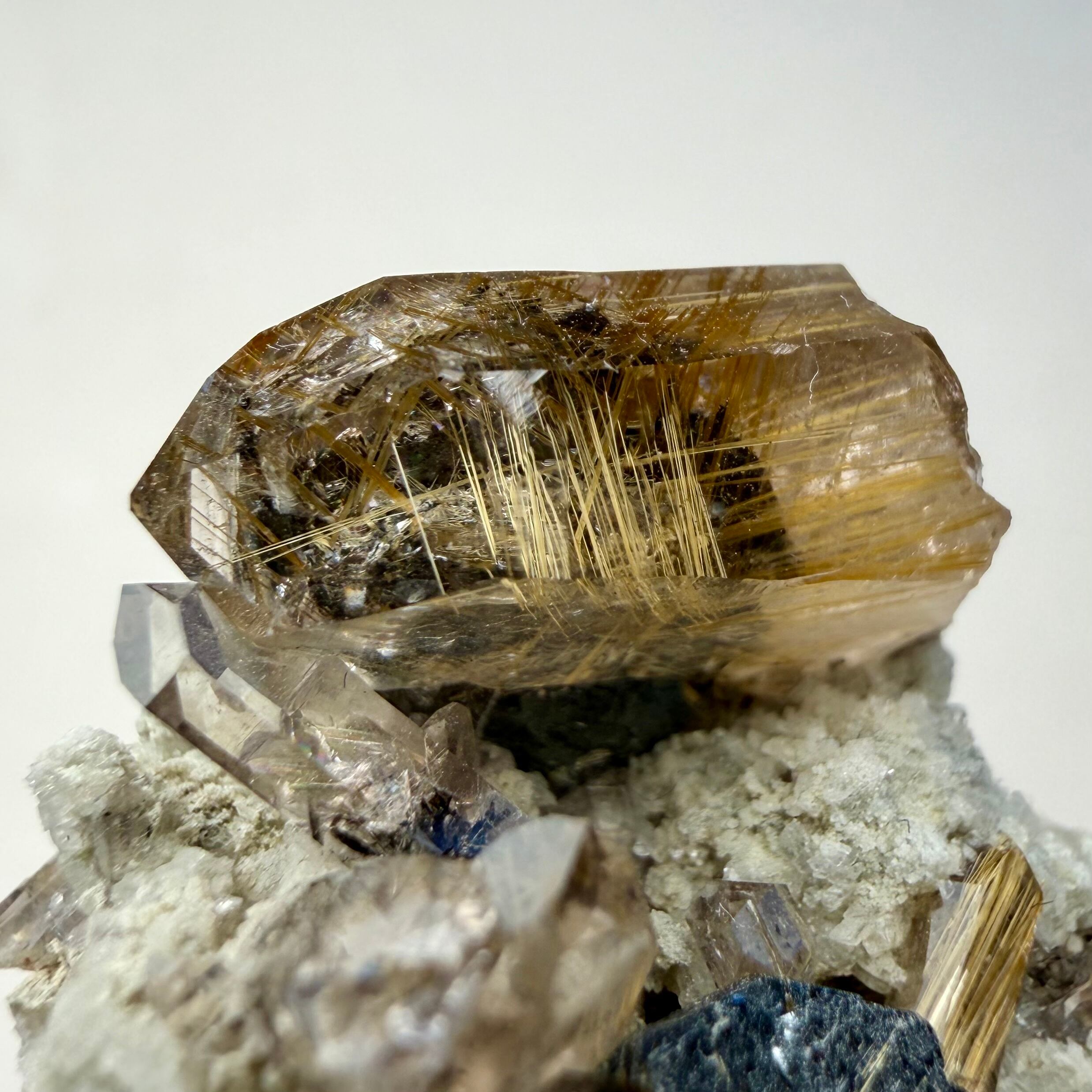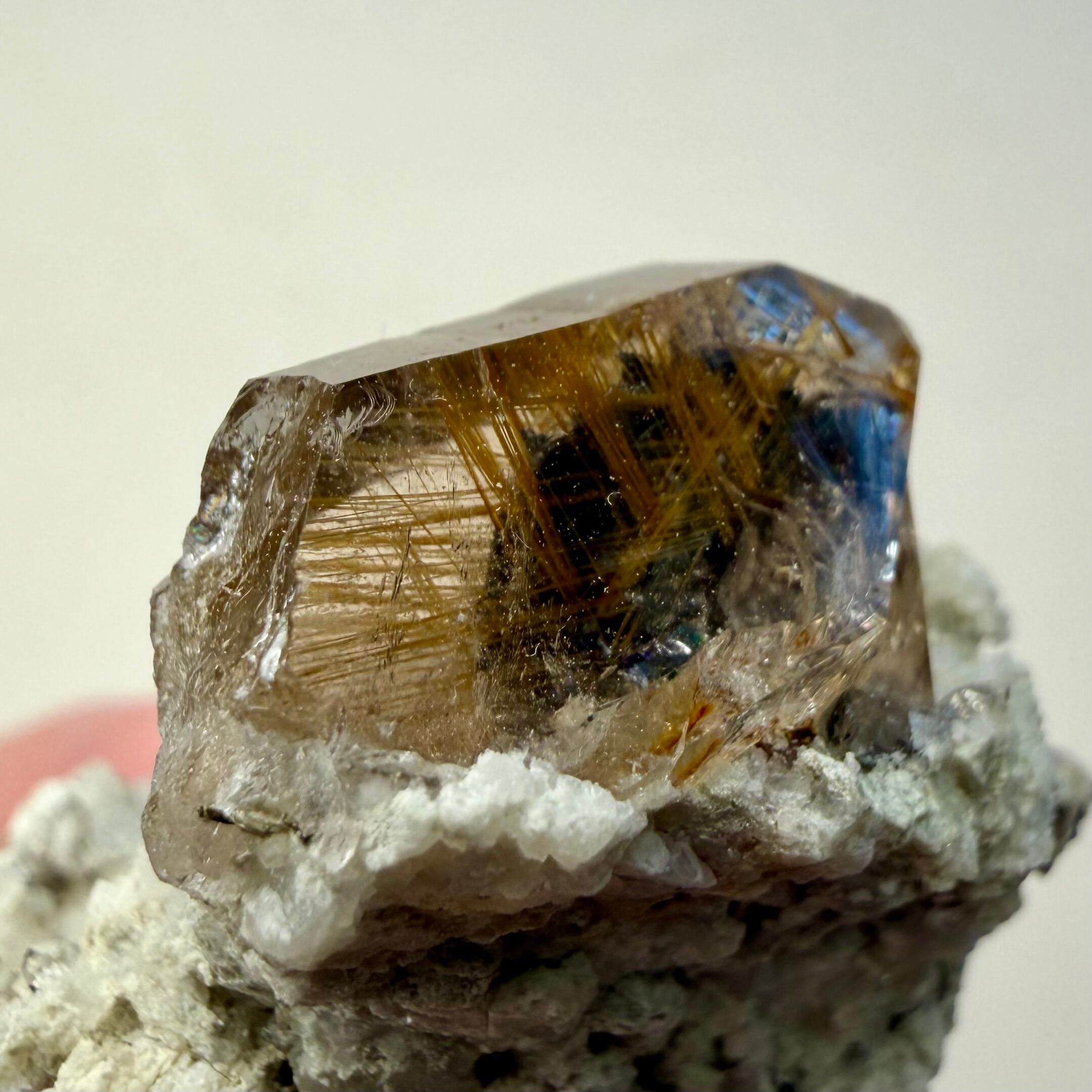 メイン結晶のクォーツは小さめながらしっかりとルチルを内包しています。