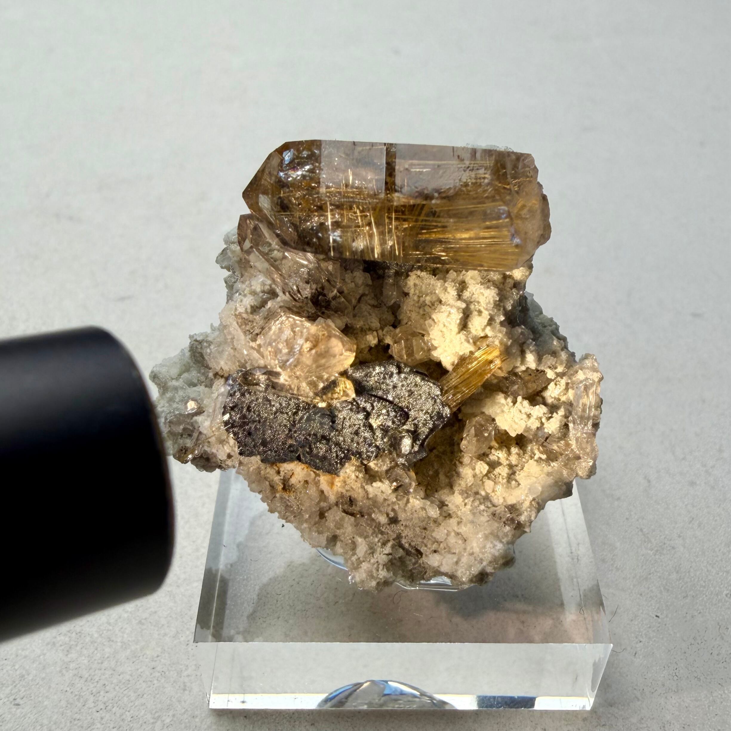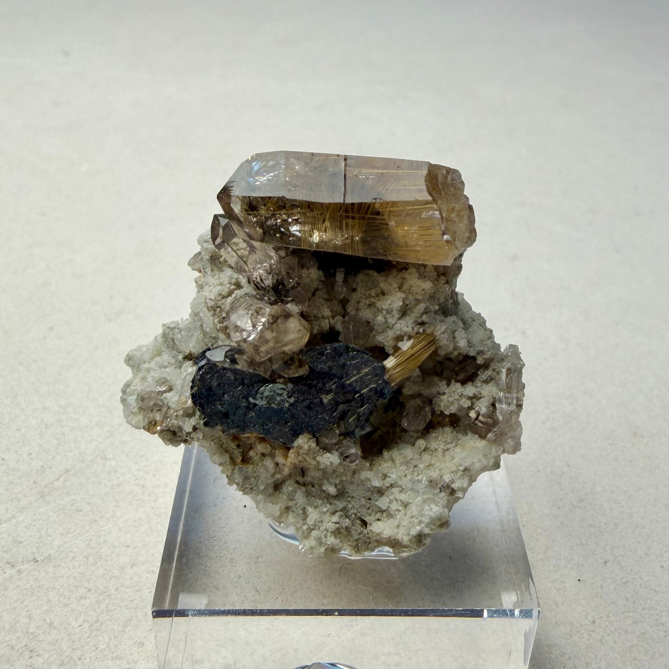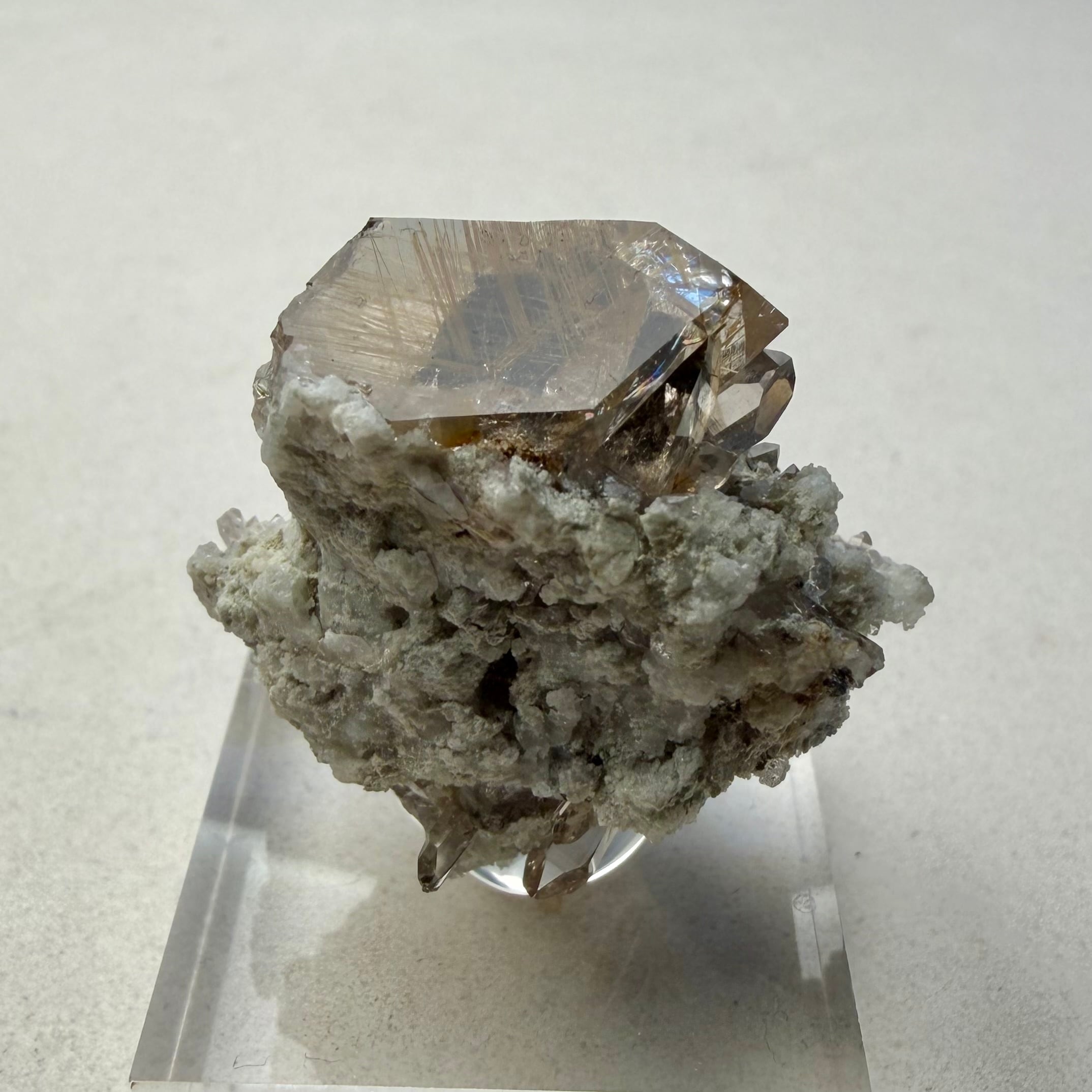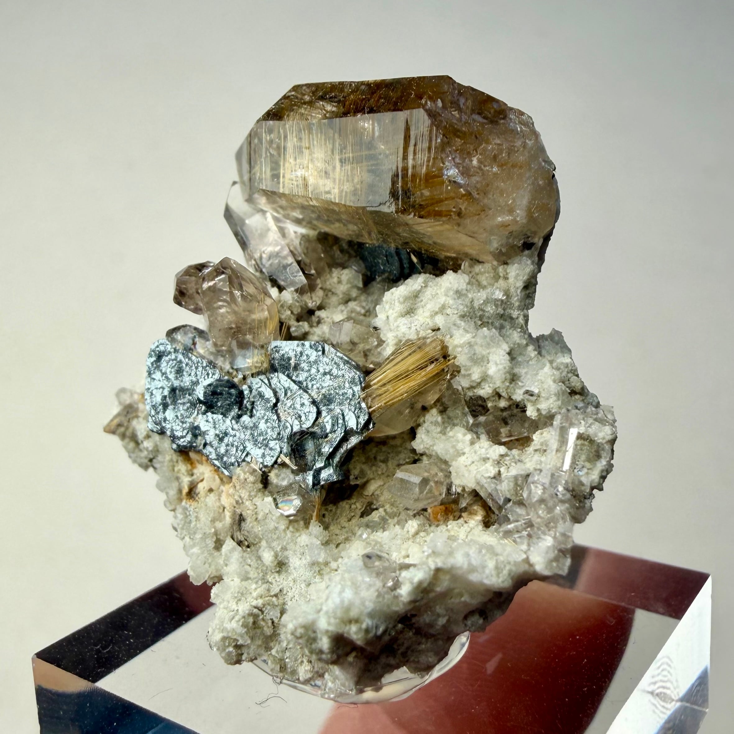 メイン結晶のクォーツは小さめながらしっかりとルチルを内包しています。
