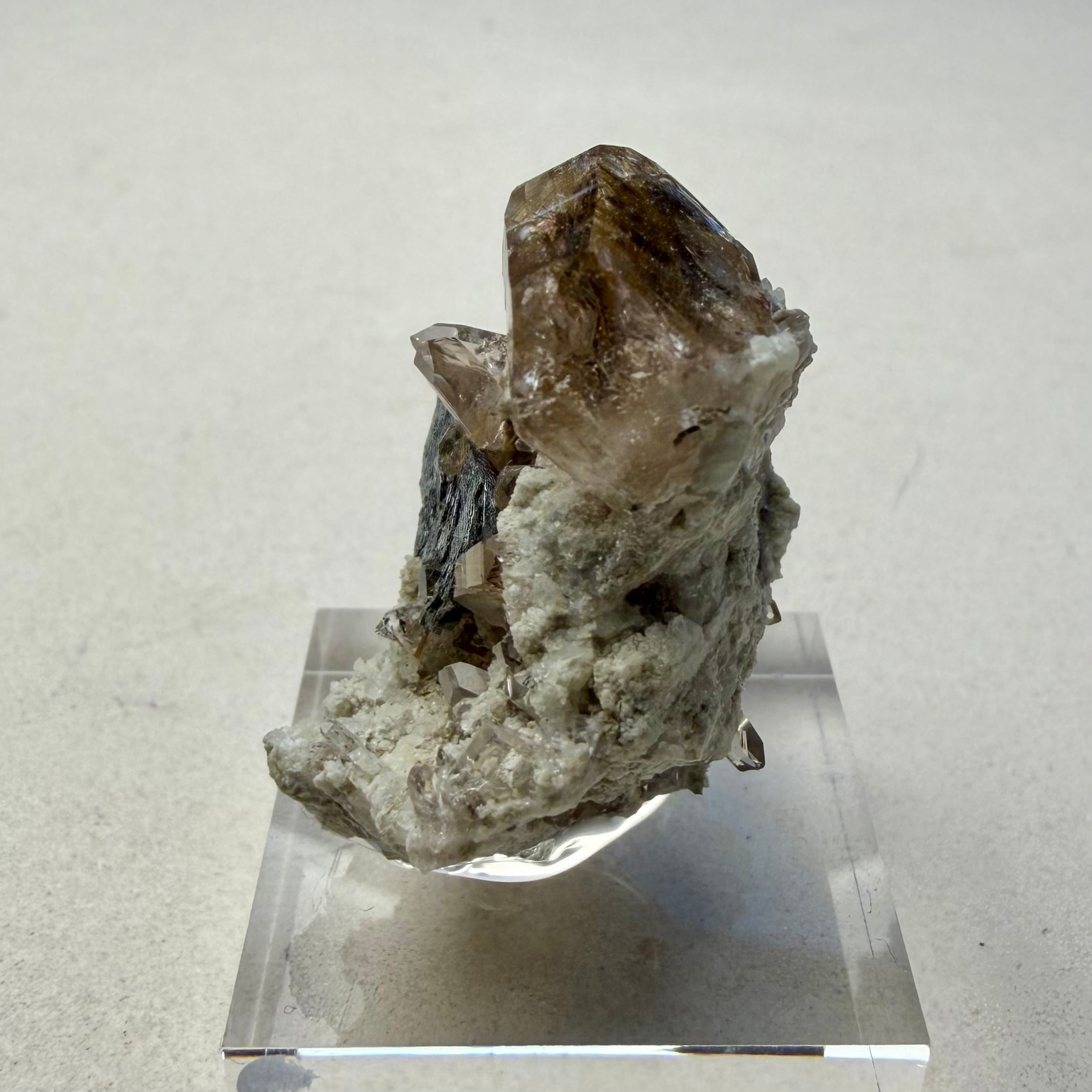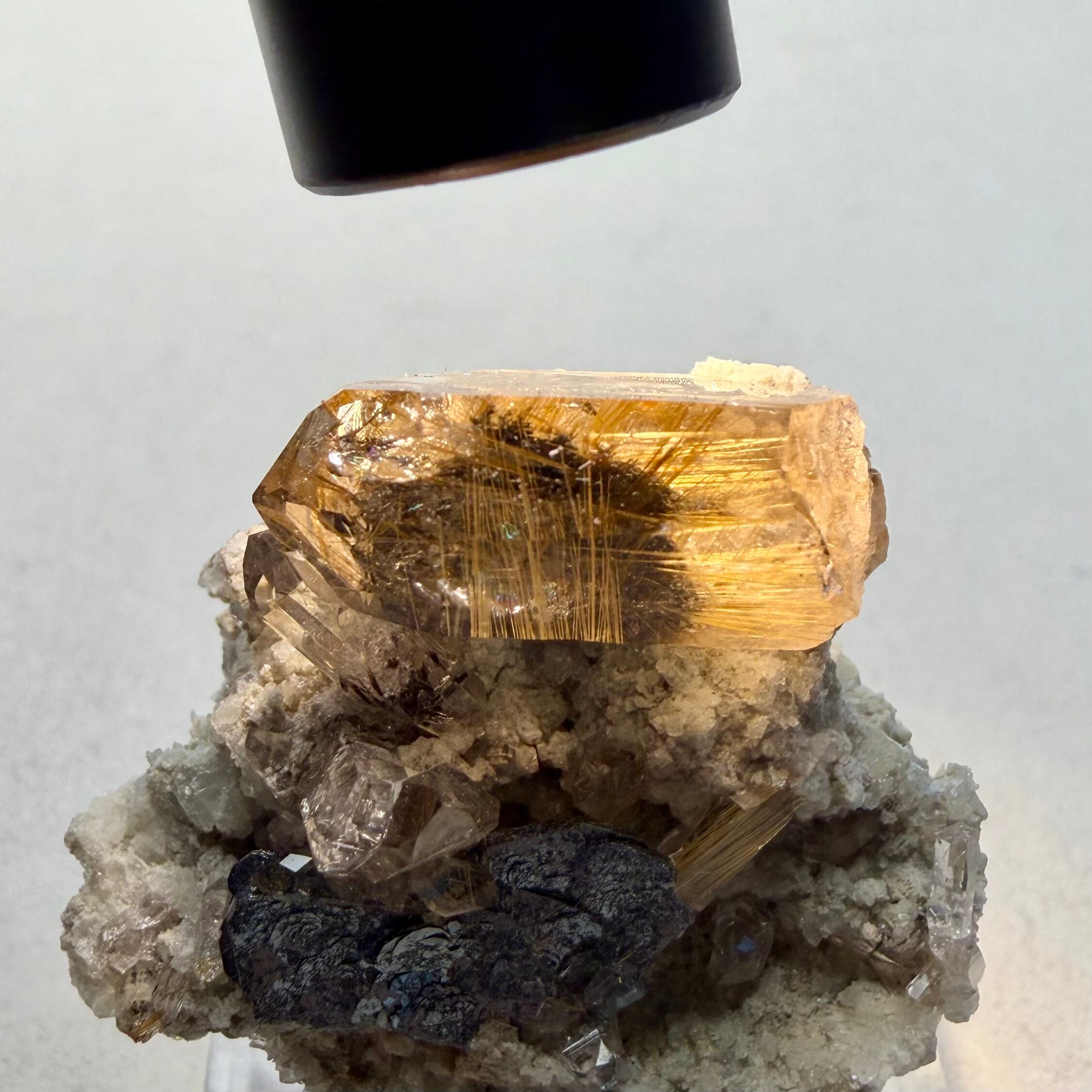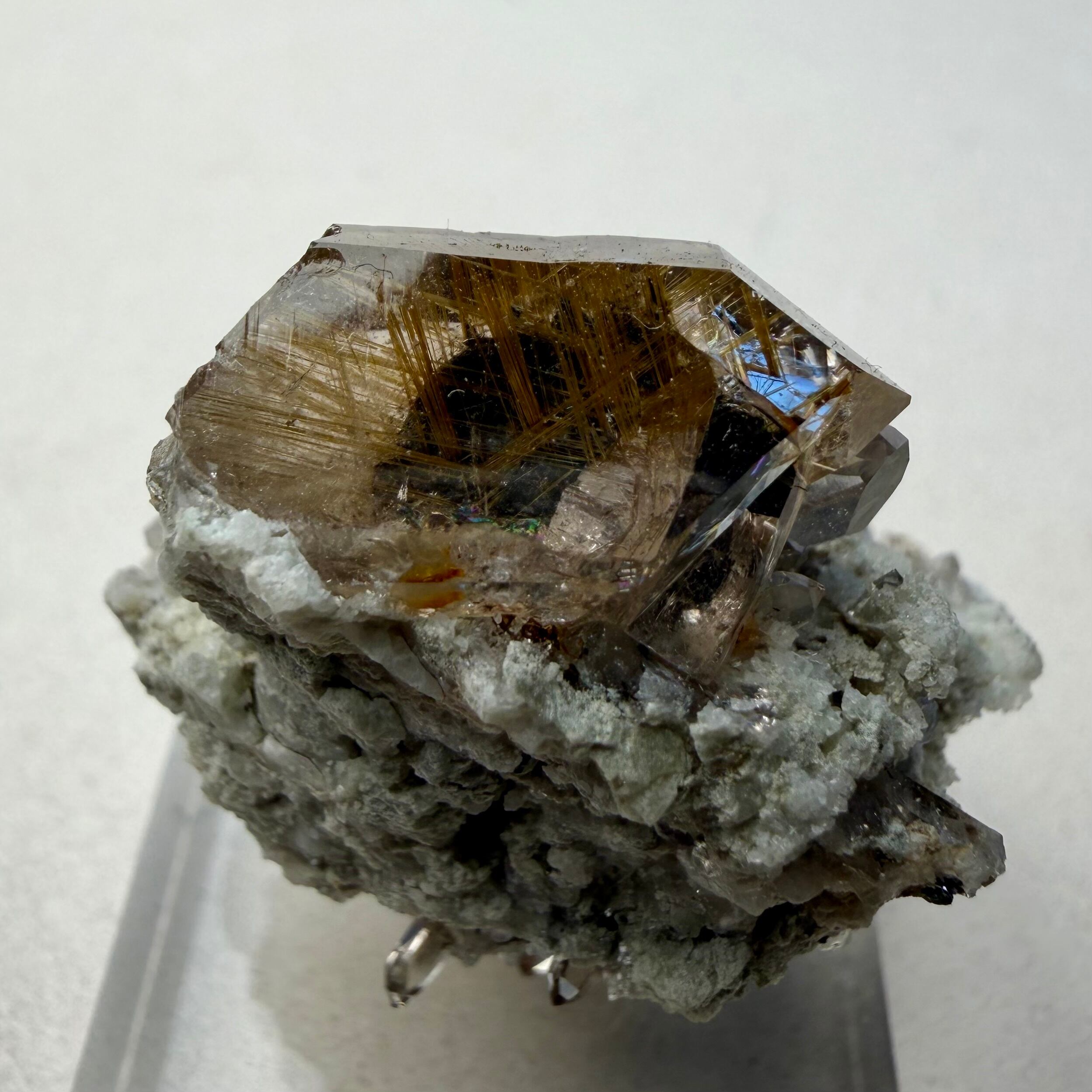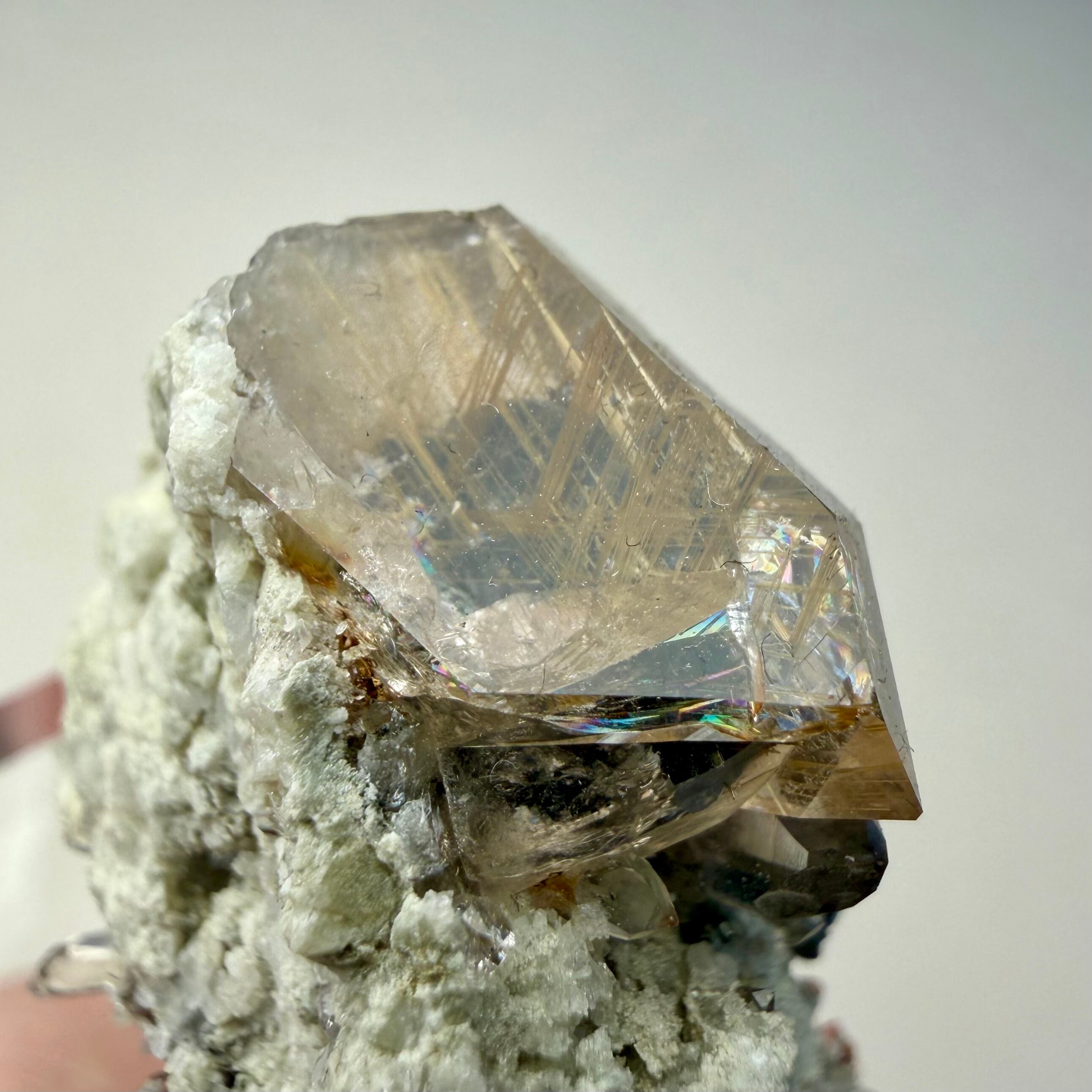 メイン結晶のクォーツは小さめながらしっかりとルチルを内包しています。