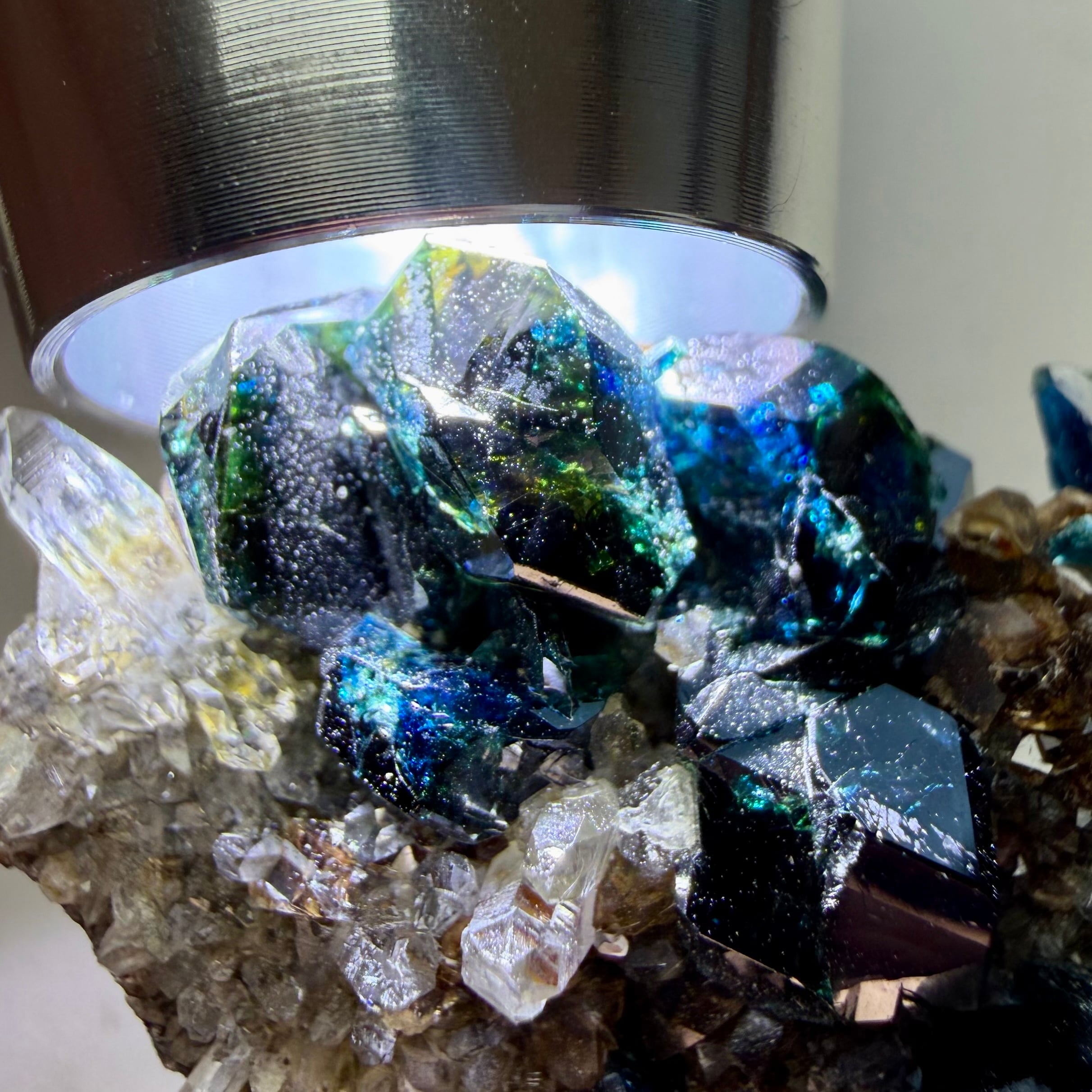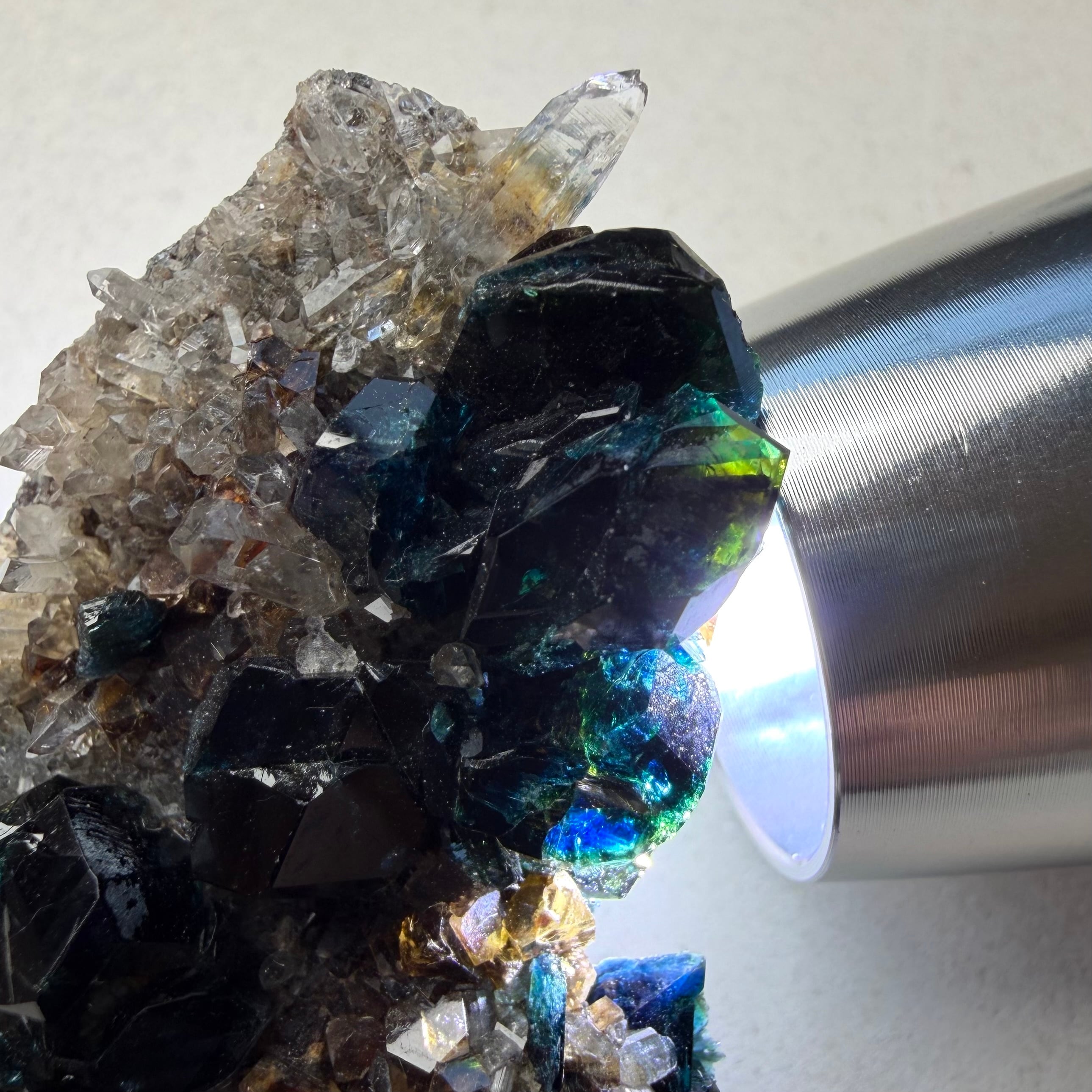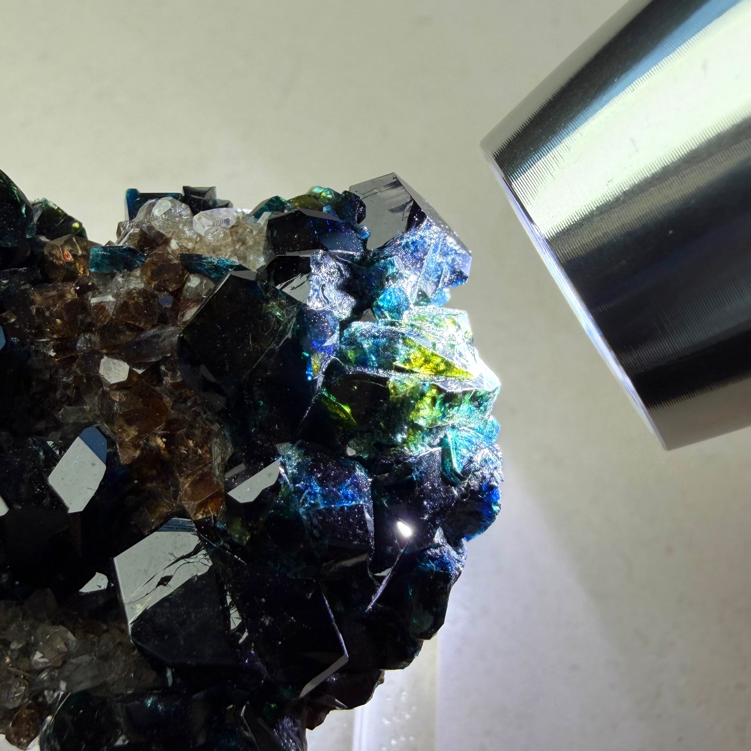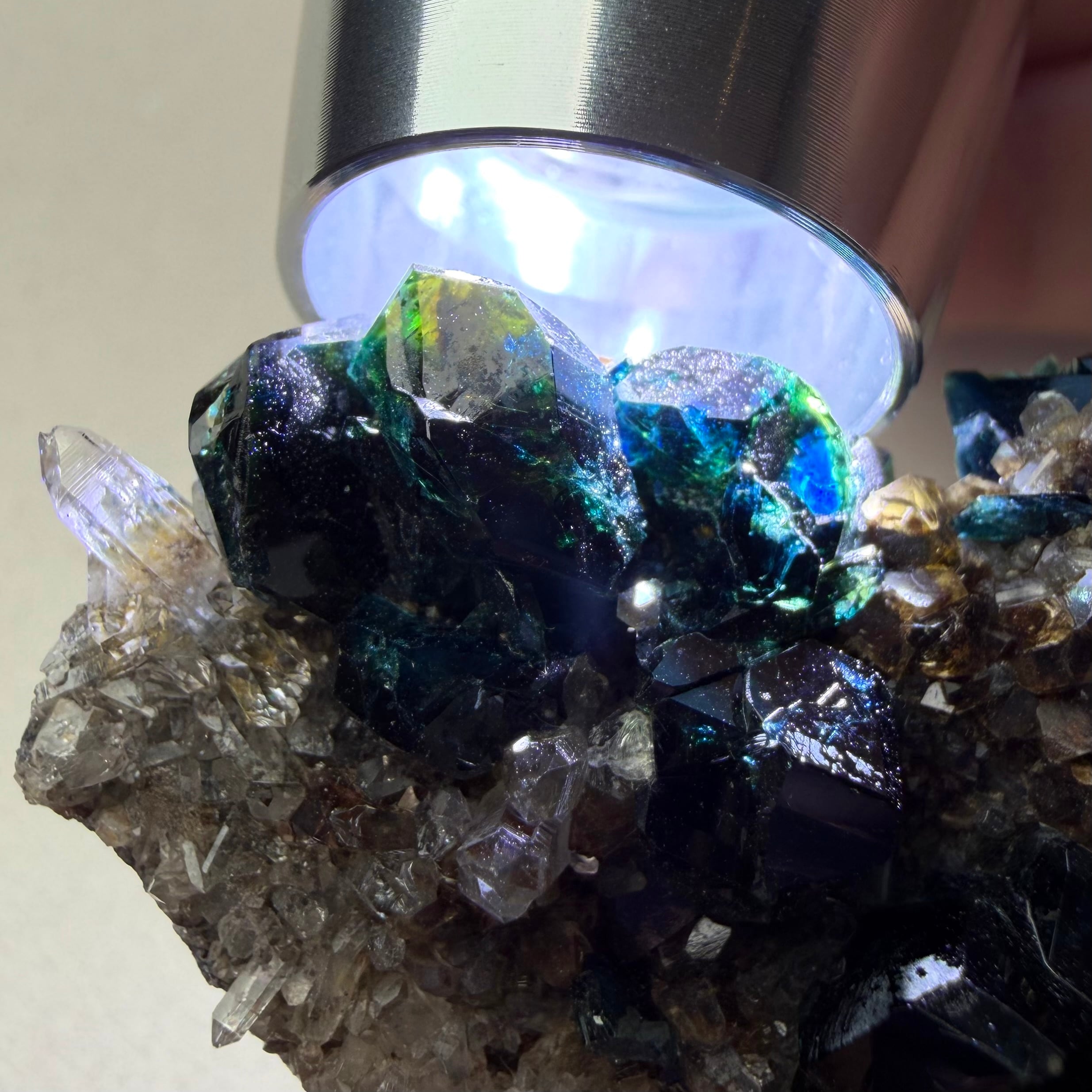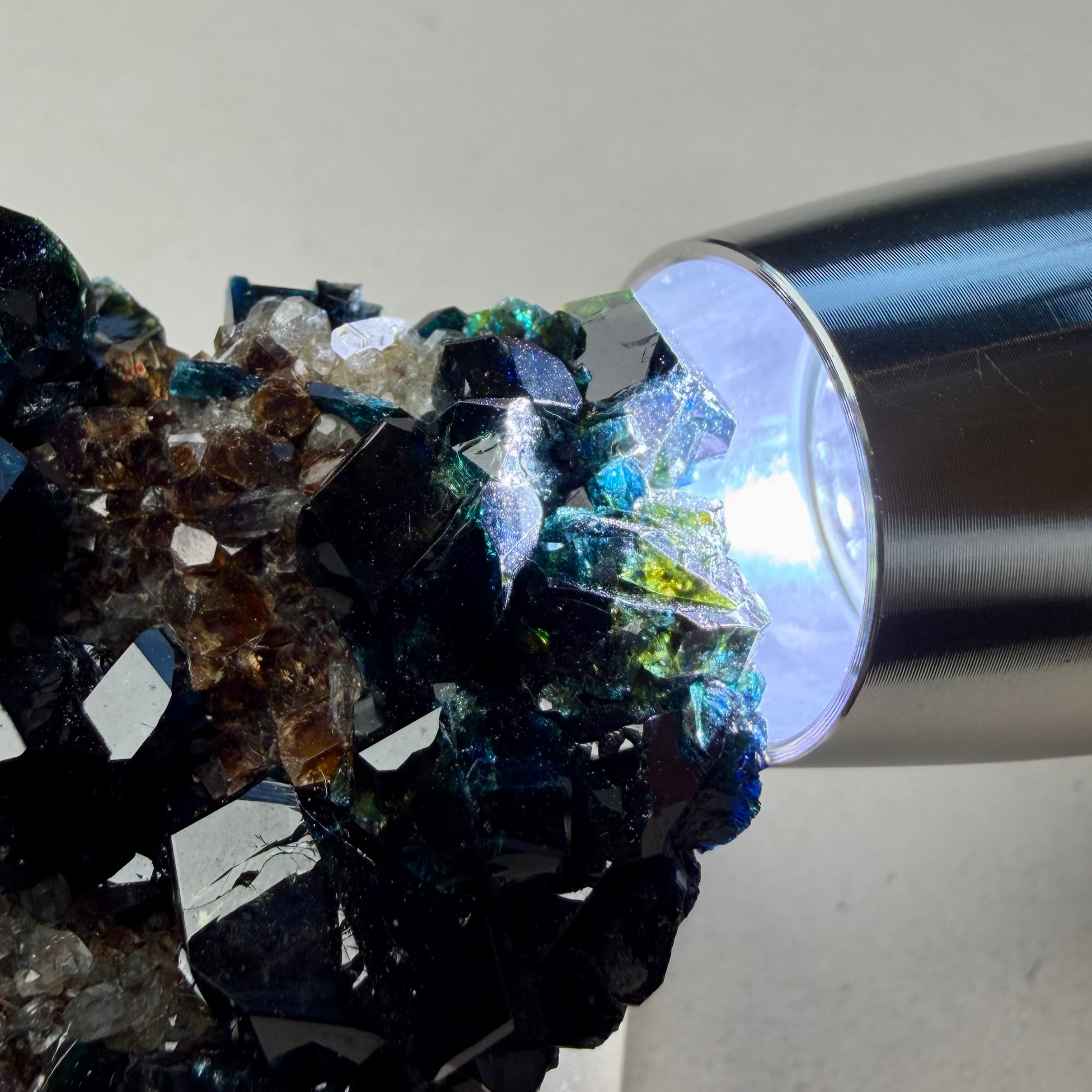また、サイズ感に優れている点と合わせて透明感とテリの強さも良好、分厚いためにしっかりとした光源を必要としますが、画像の通り透かすことでブルーグリーンの美しい発色を楽しむことができます。