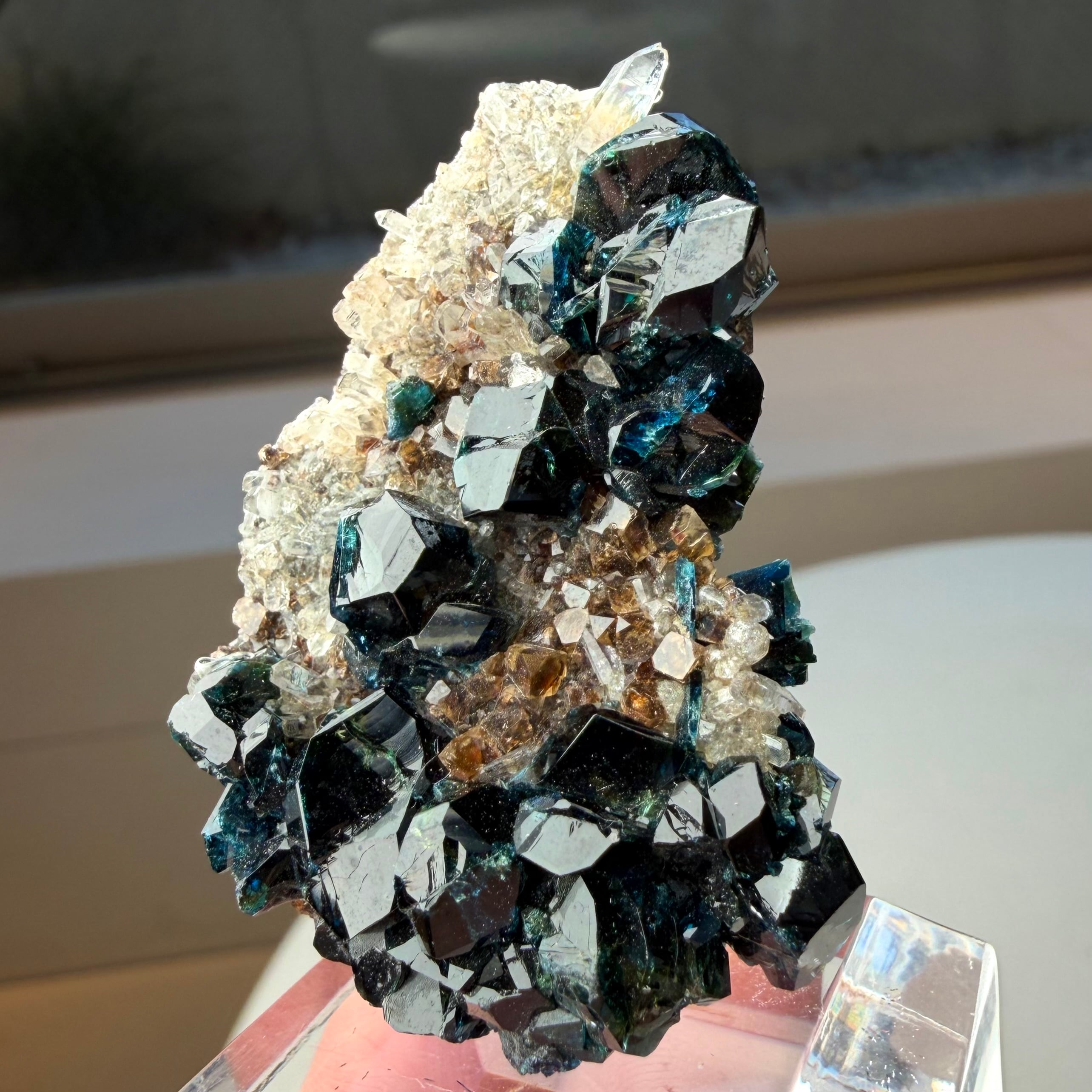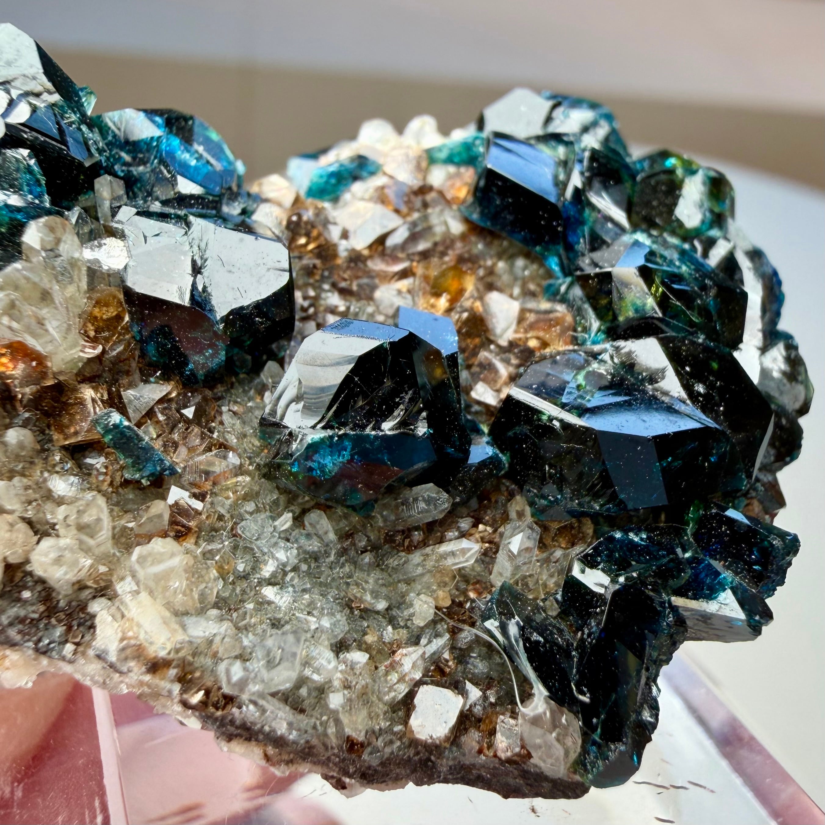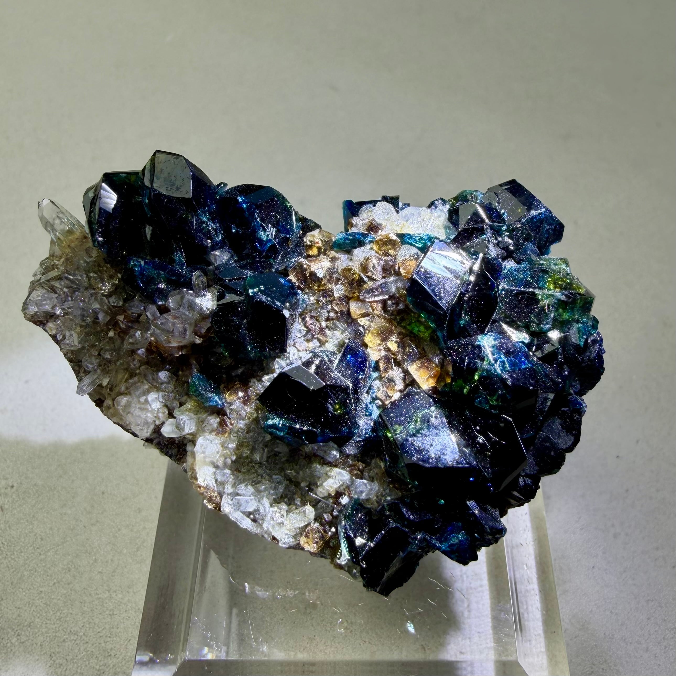 30年以上前に産した少し古い標本で最大の特徴が、ラズライトとしては相当大きい部類に入る結晶が数多く見られるクラスター標本だということに尽きます。