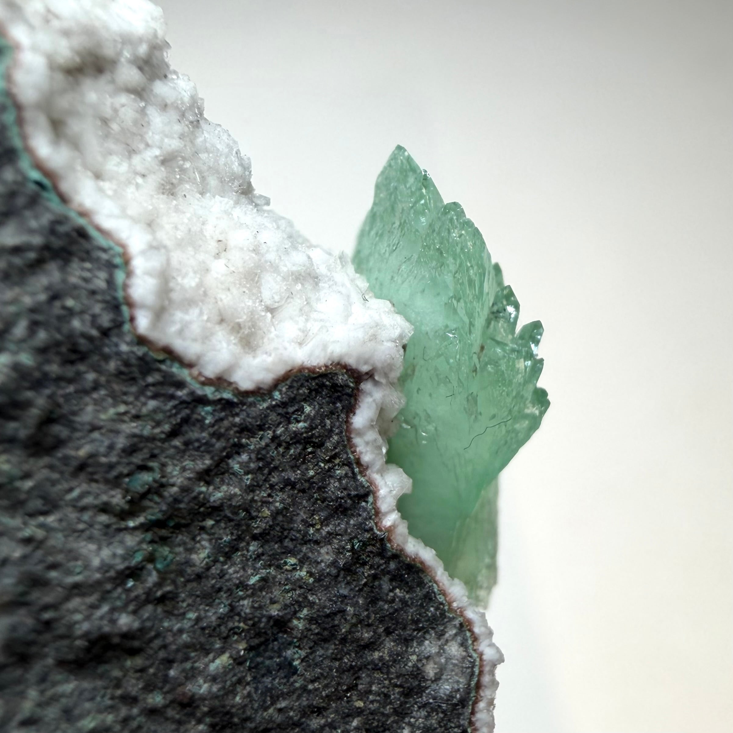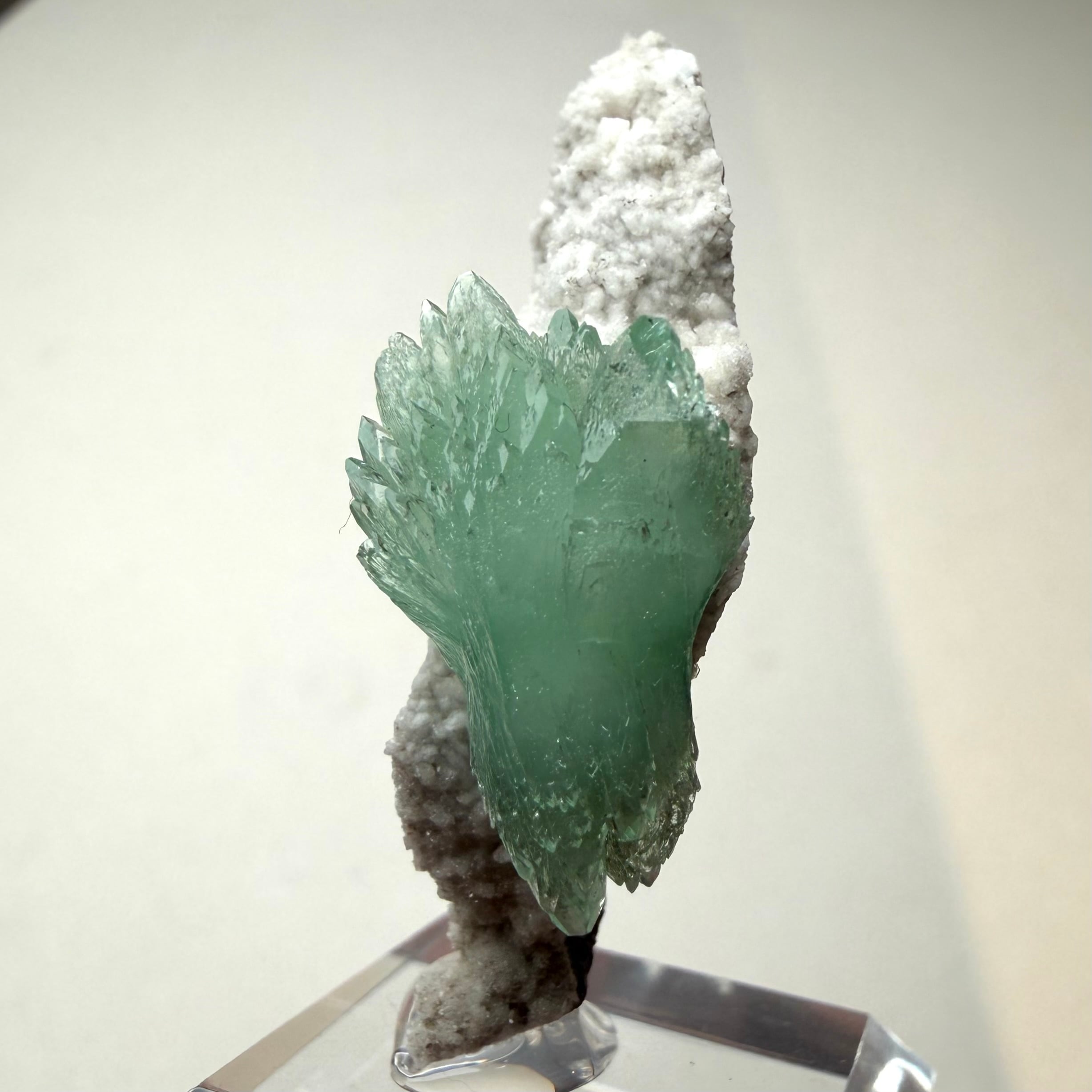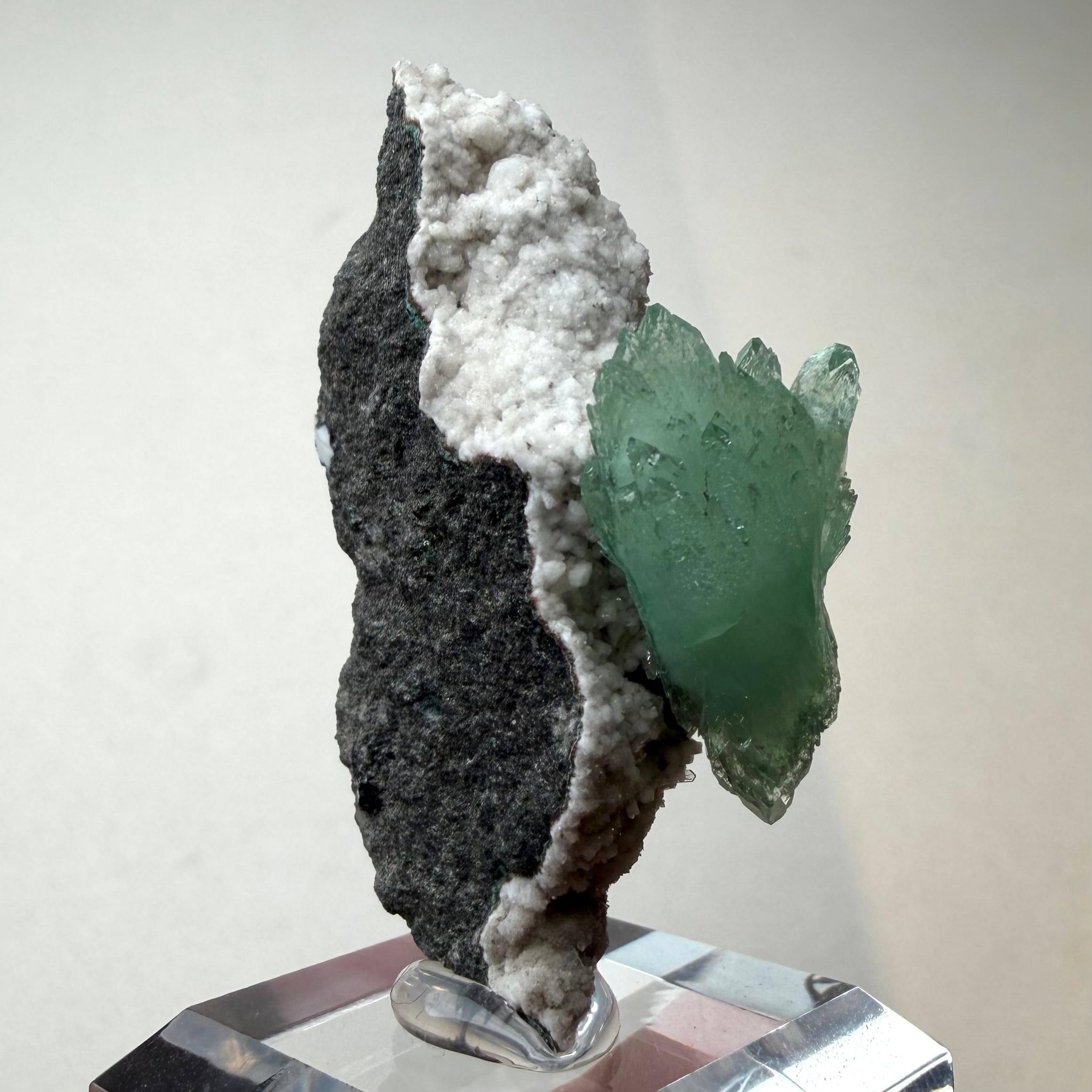 アポフィライトが飛び出るような位置でバランス良く結晶しています。