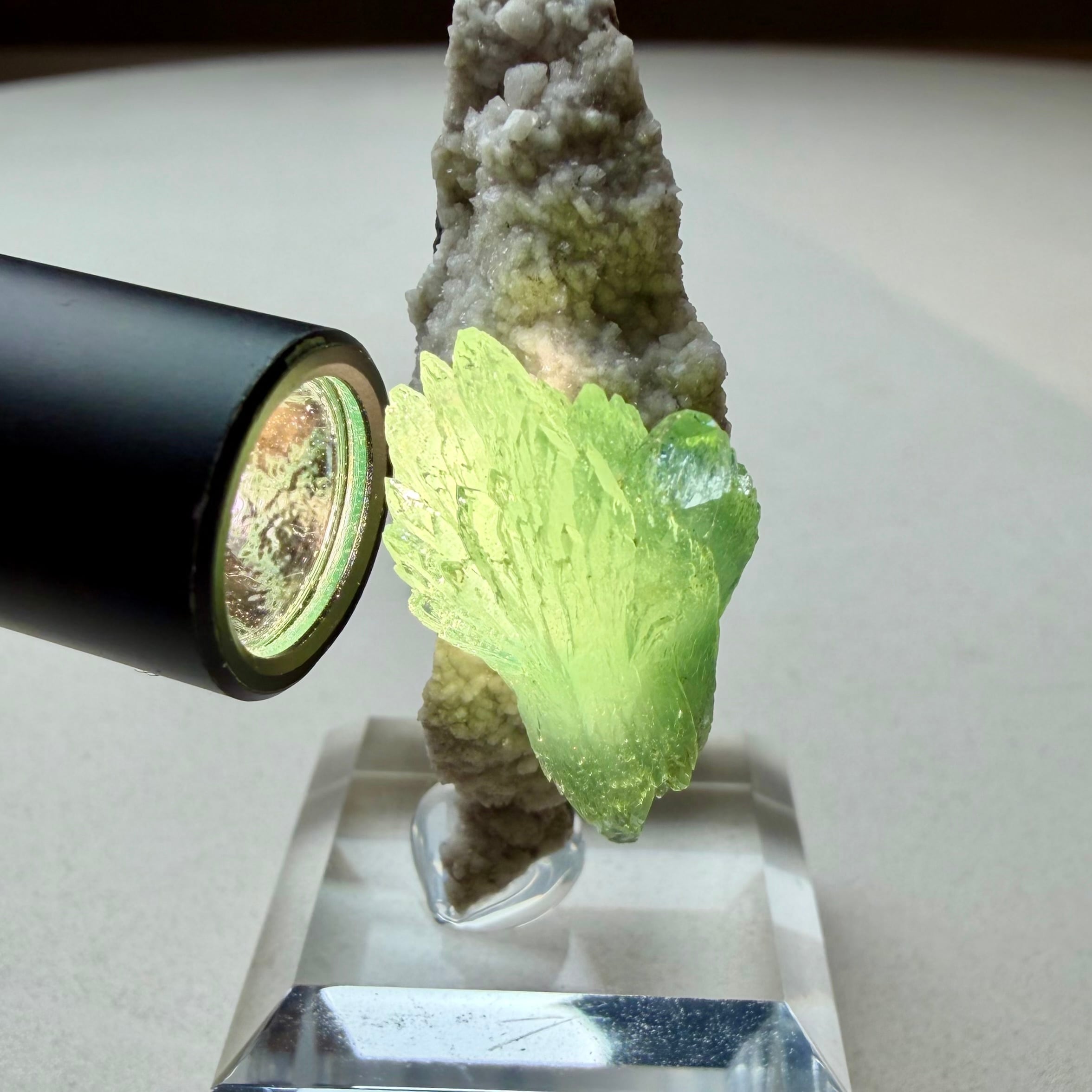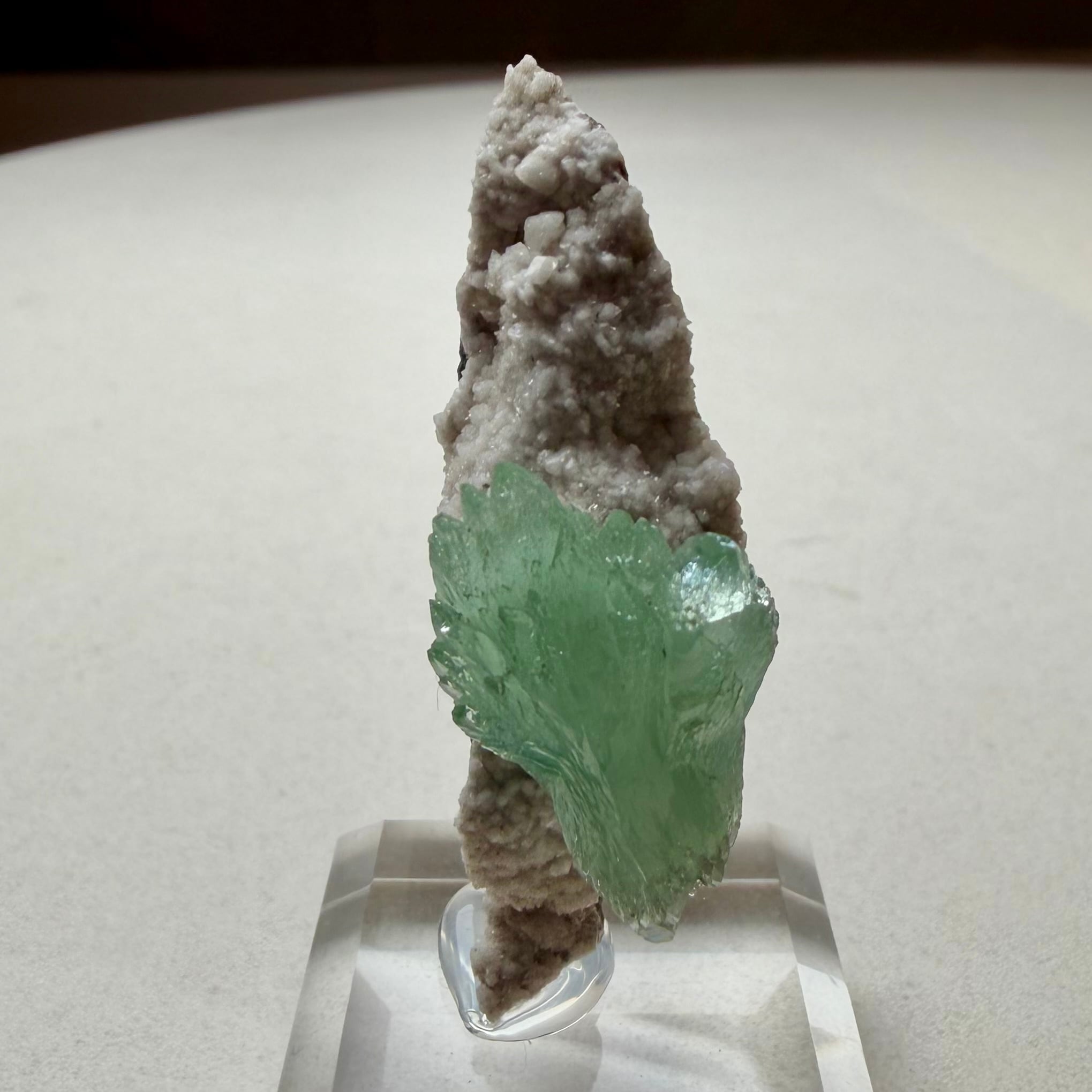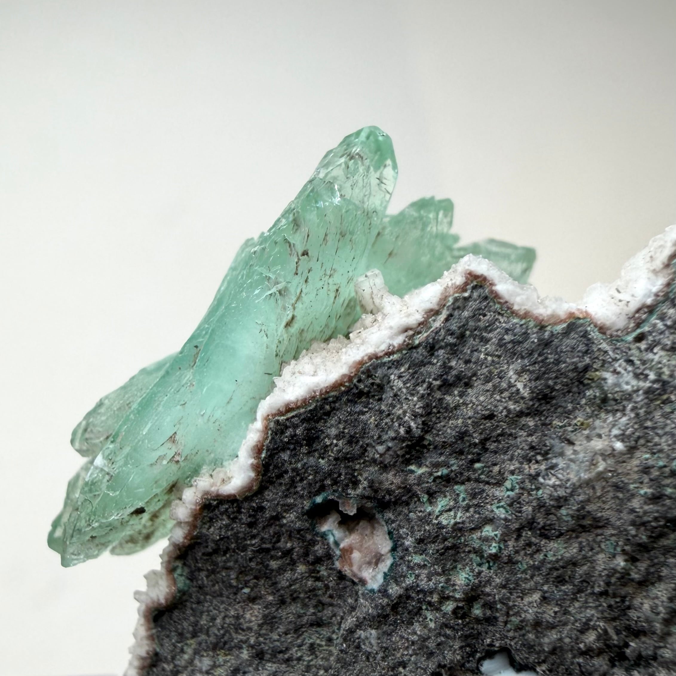 アポフィライトが飛び出るような位置でバランス良く結晶しています。
