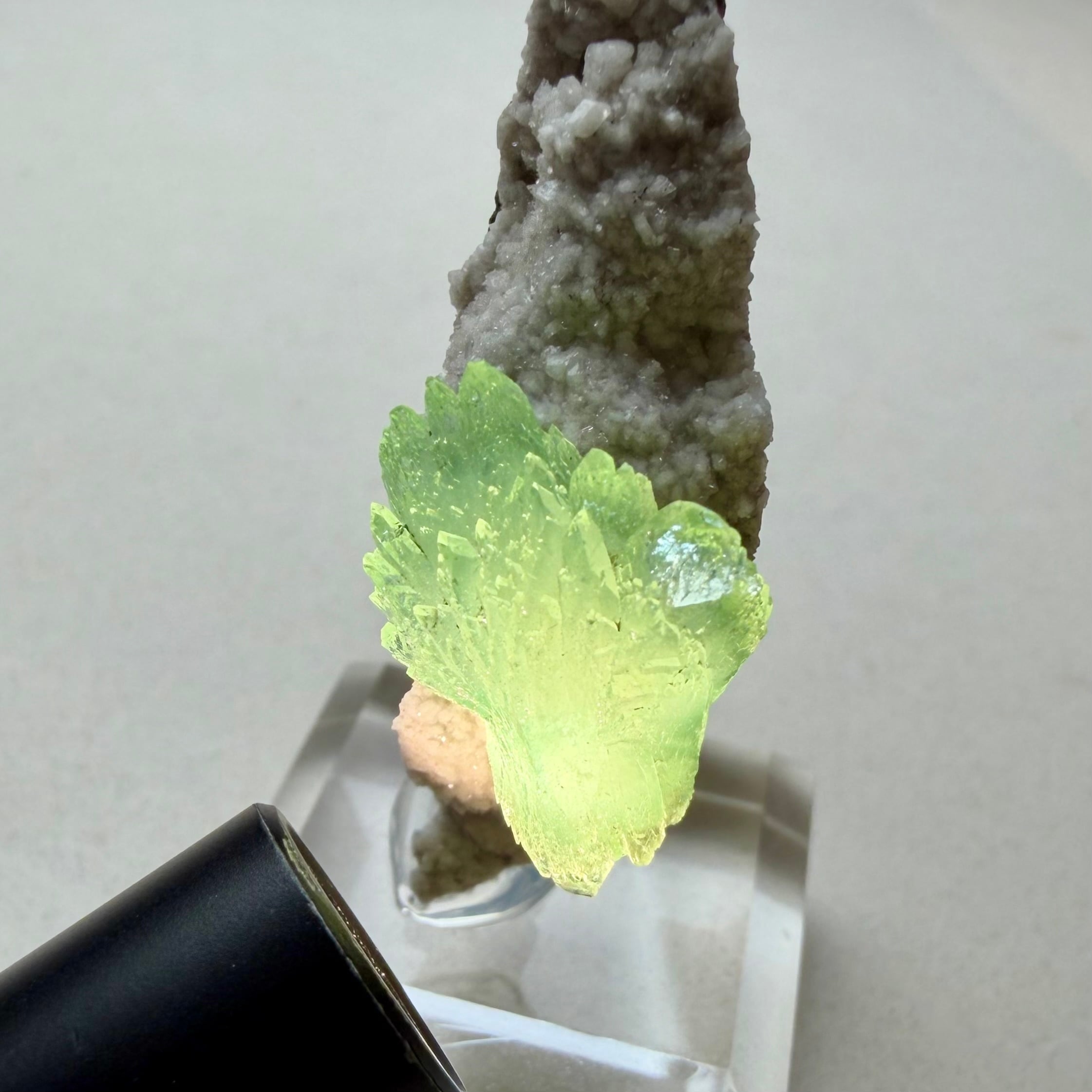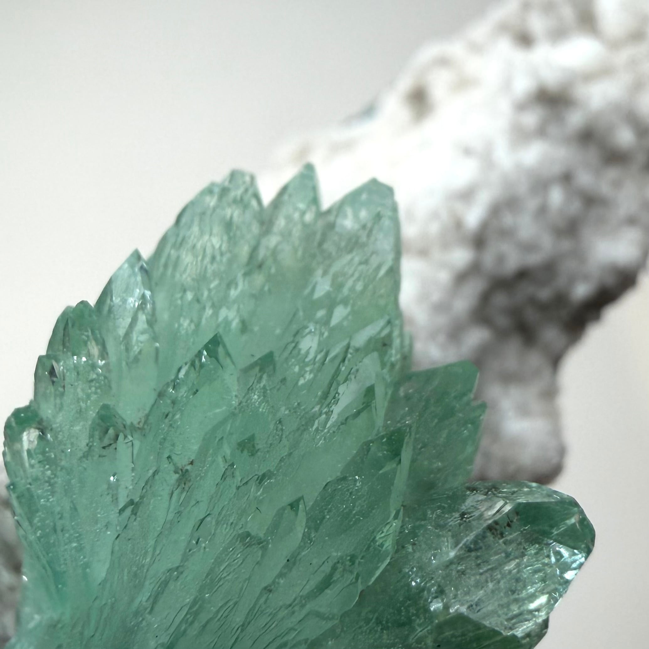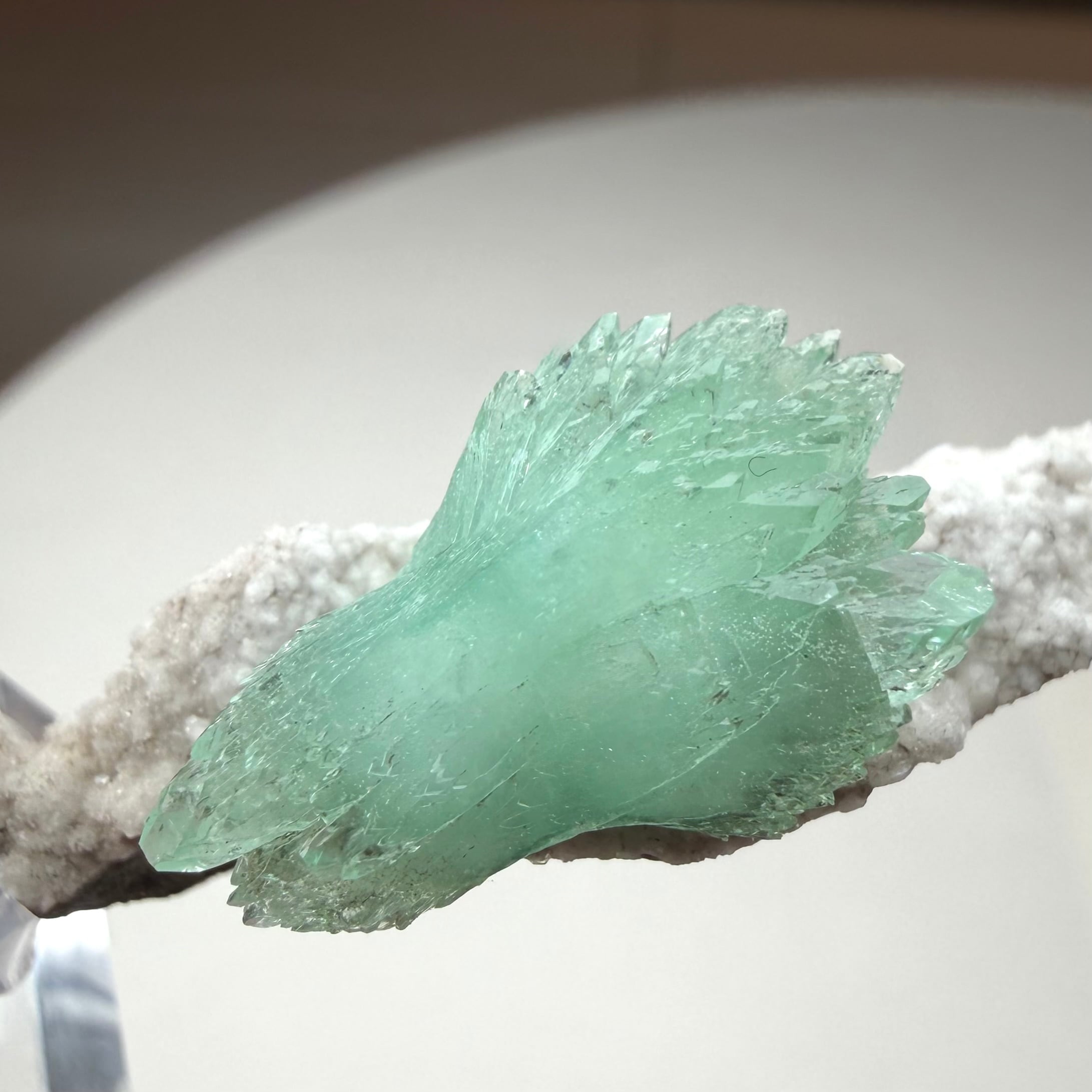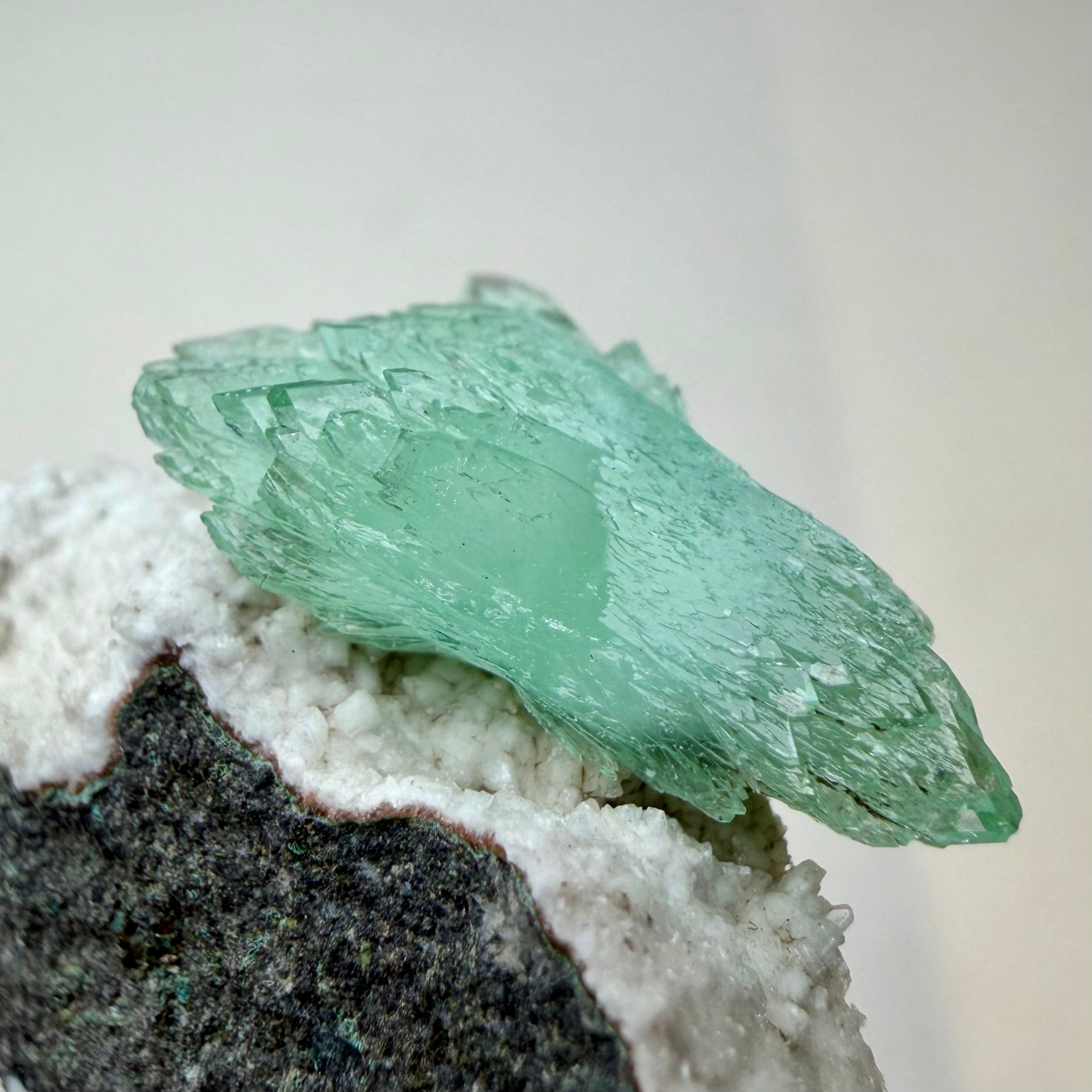 アポフィライトは放射状に広がり、サイズ感は違いますが両サイドに整ったbow tieタイプの結晶で、透明感や発色の良さが魅力的です。