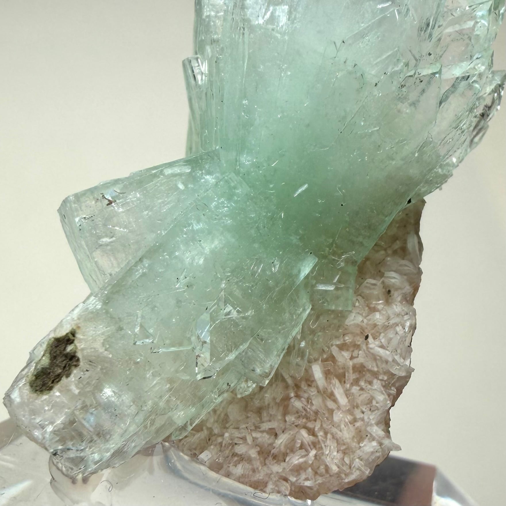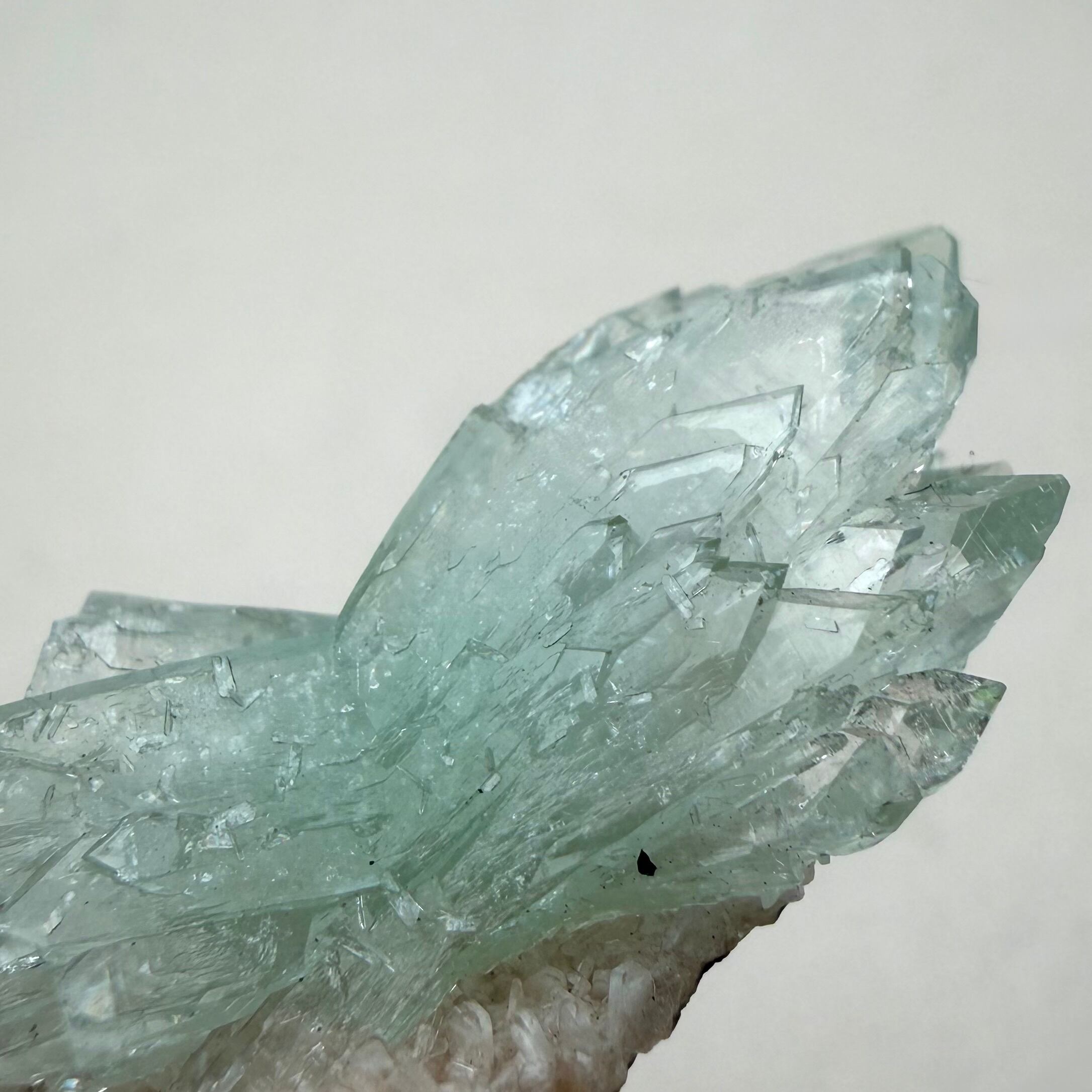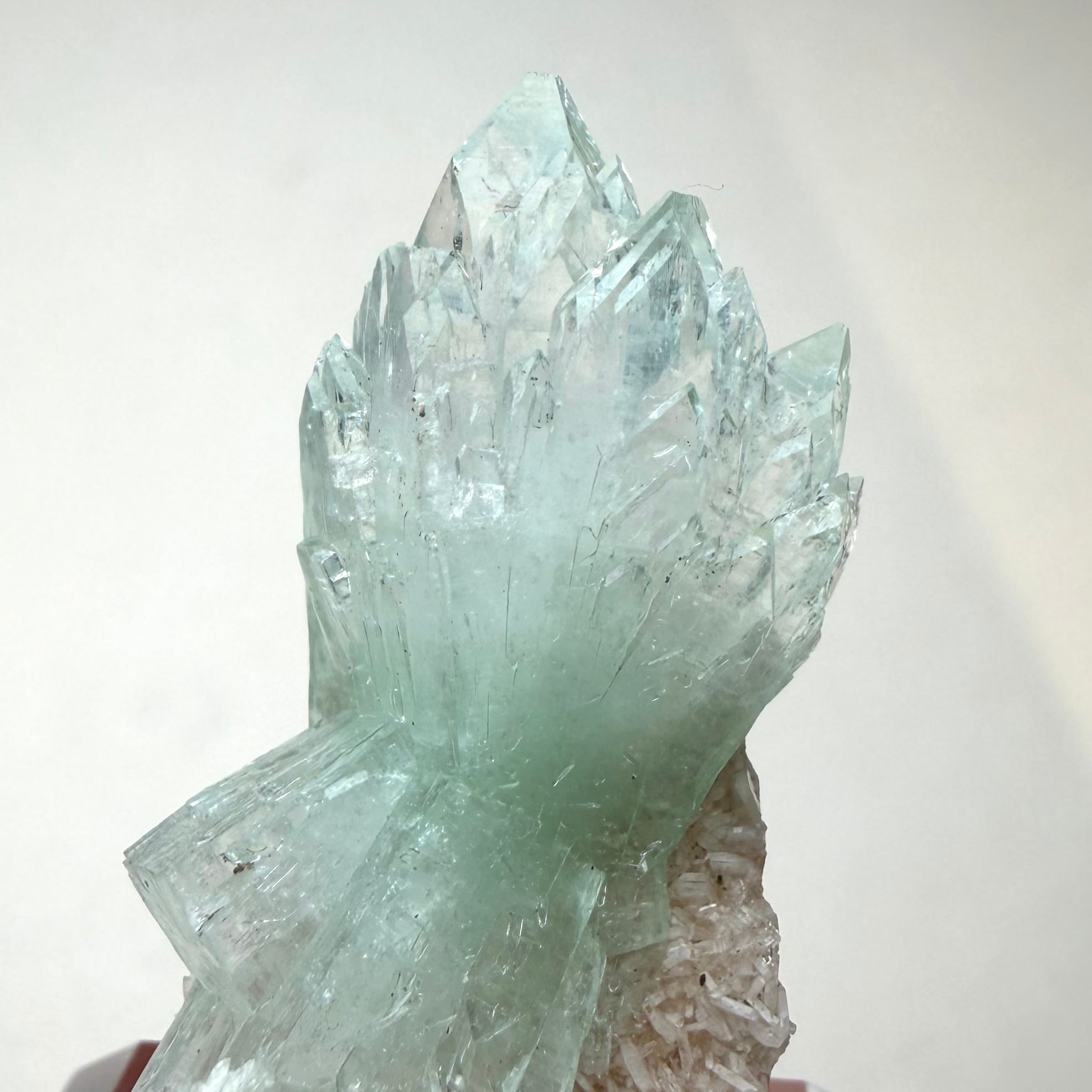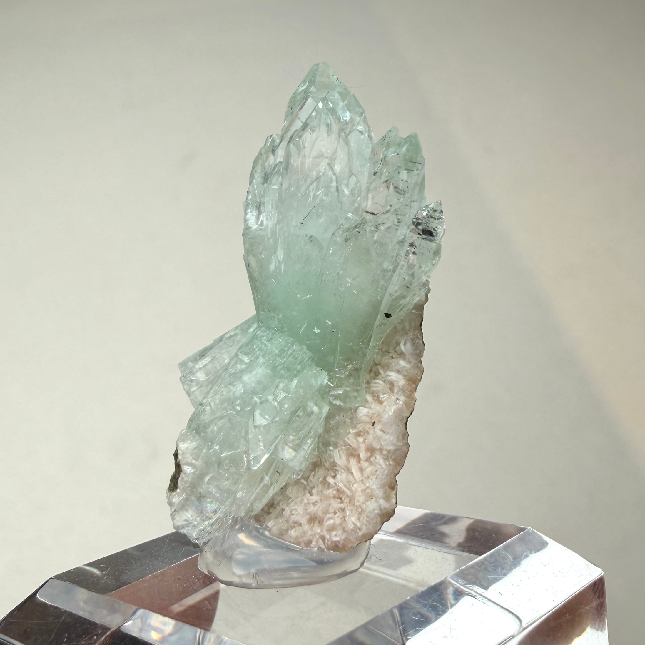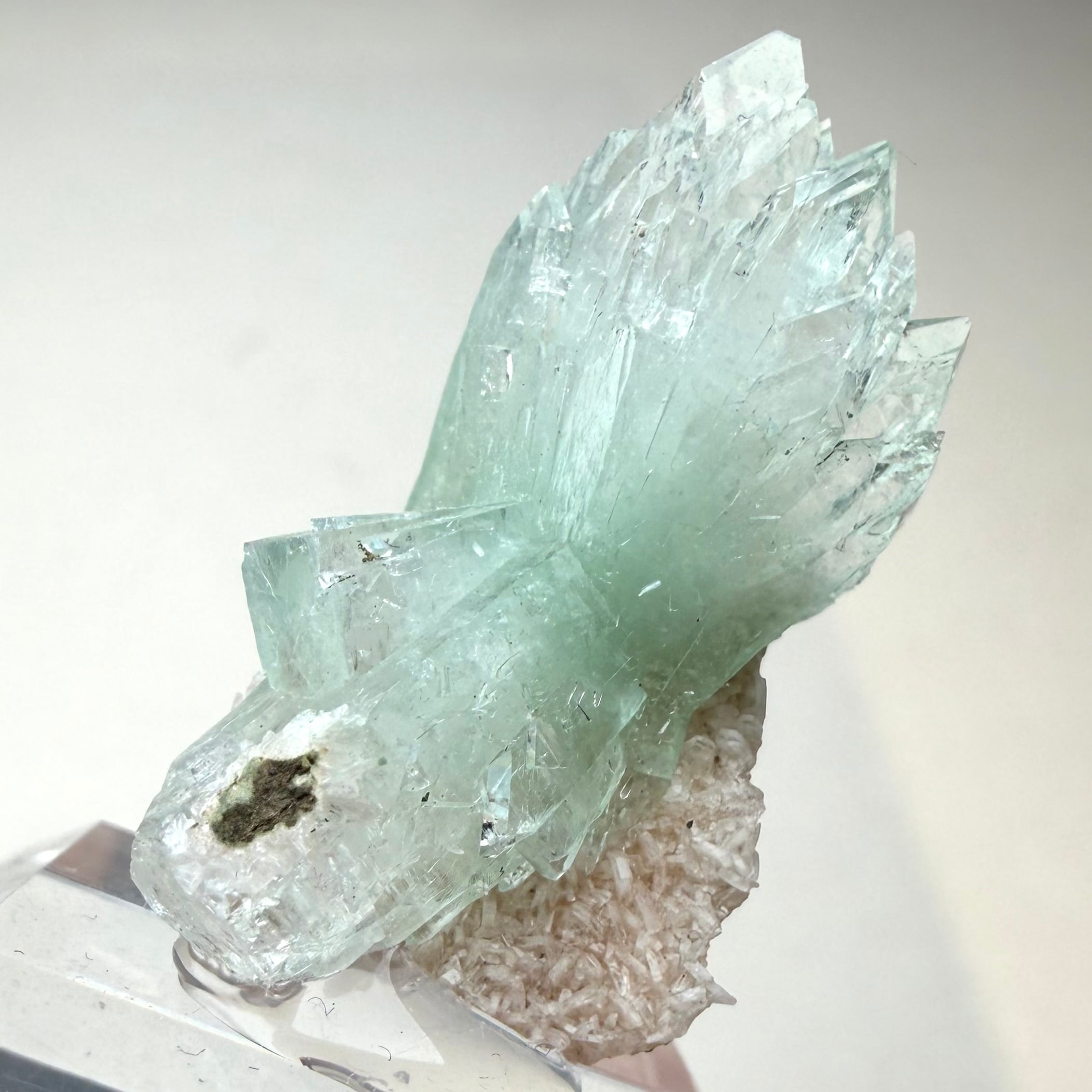 片側は途切れていますが両サイド放射状に広がった、所謂bow tieタイプの結晶が魅力的なアポフィライトです。