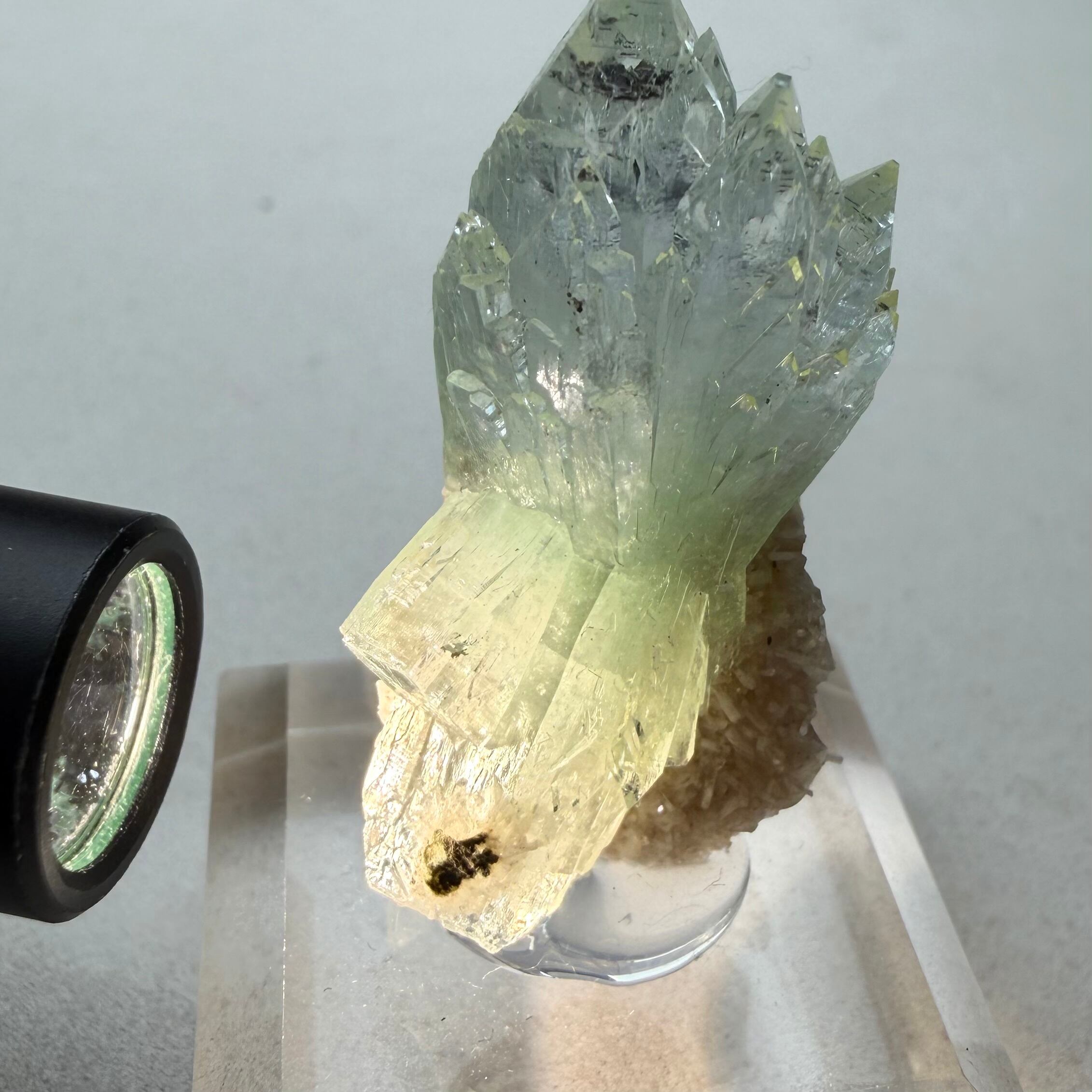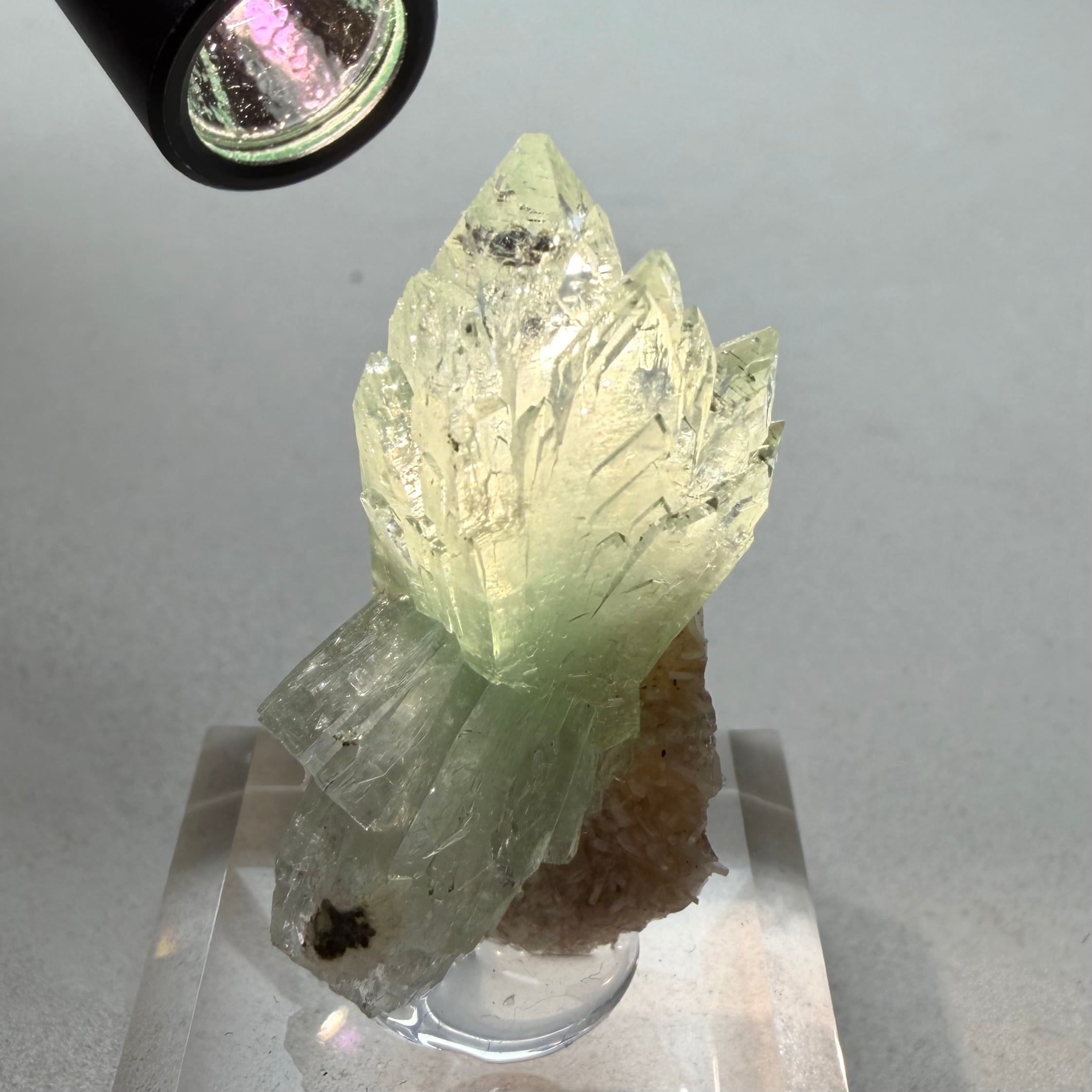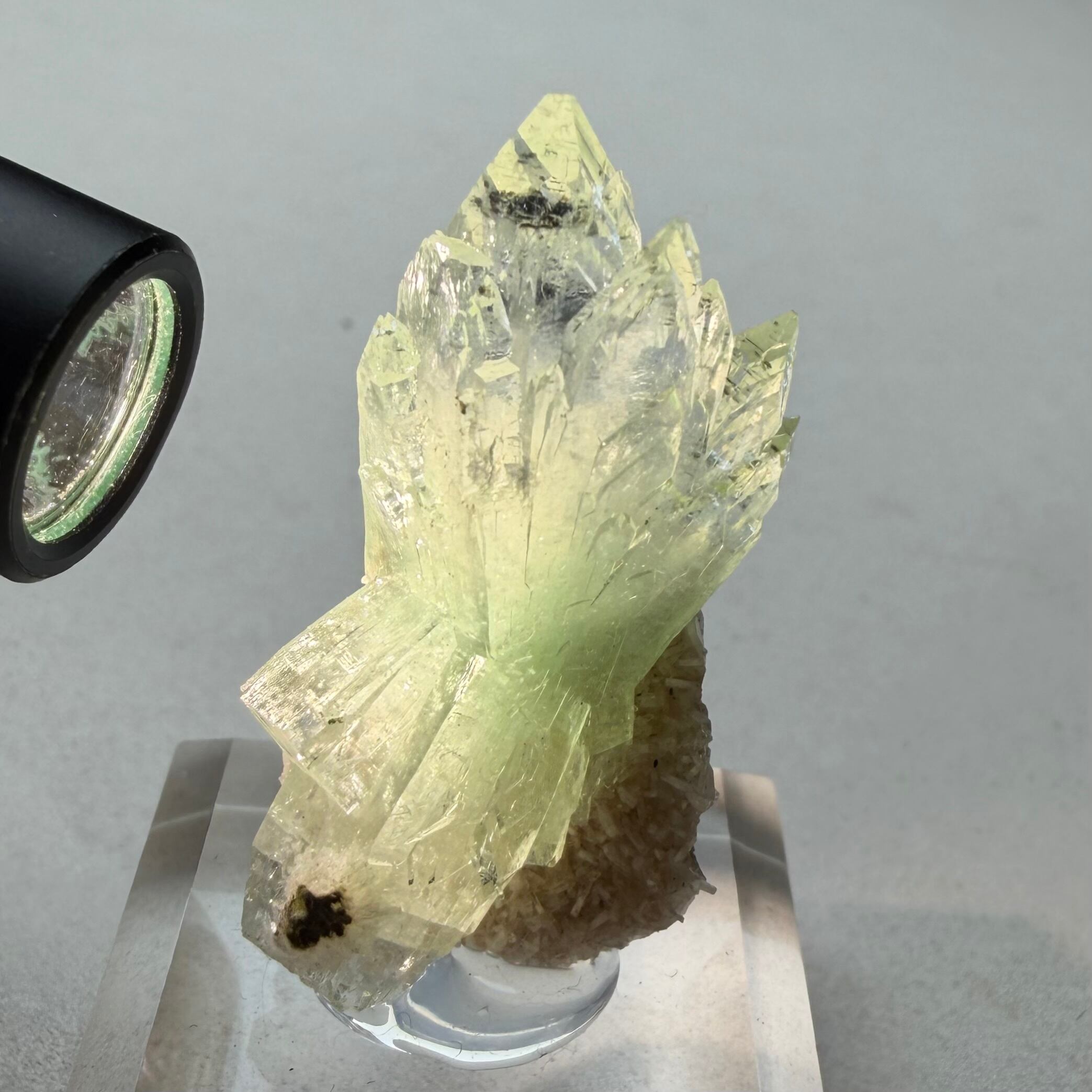 発色は淡いものの、透明感とテリが良好な結晶です。