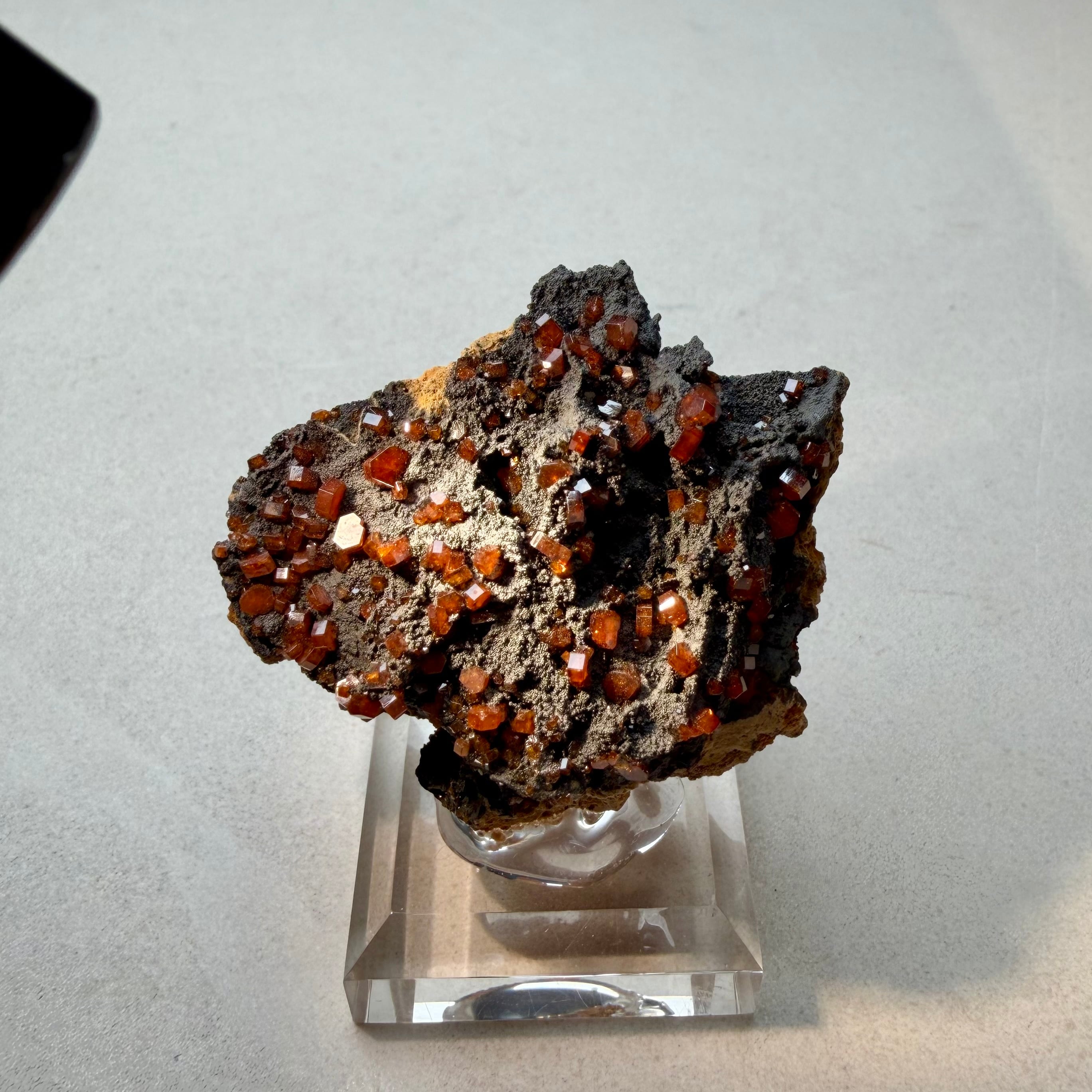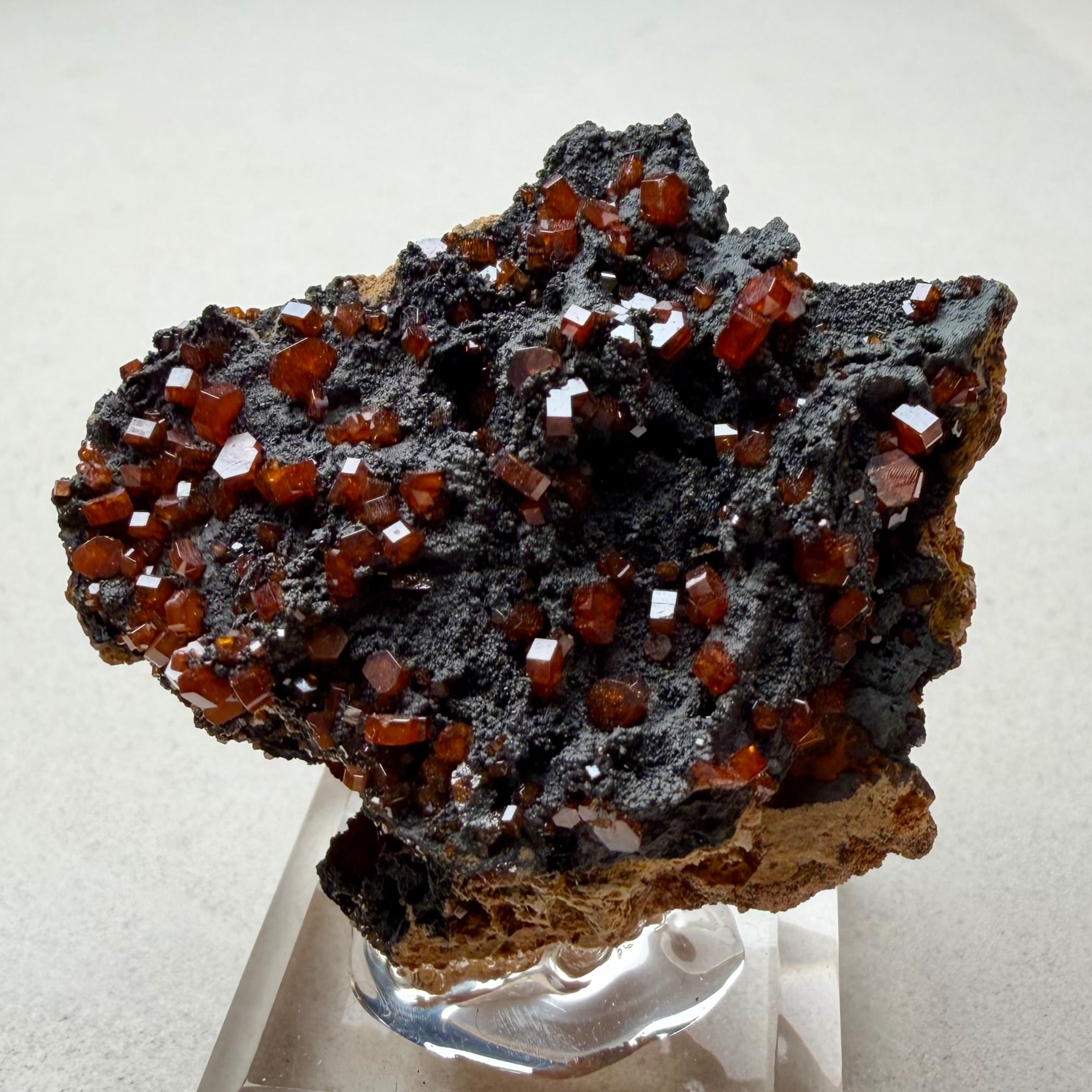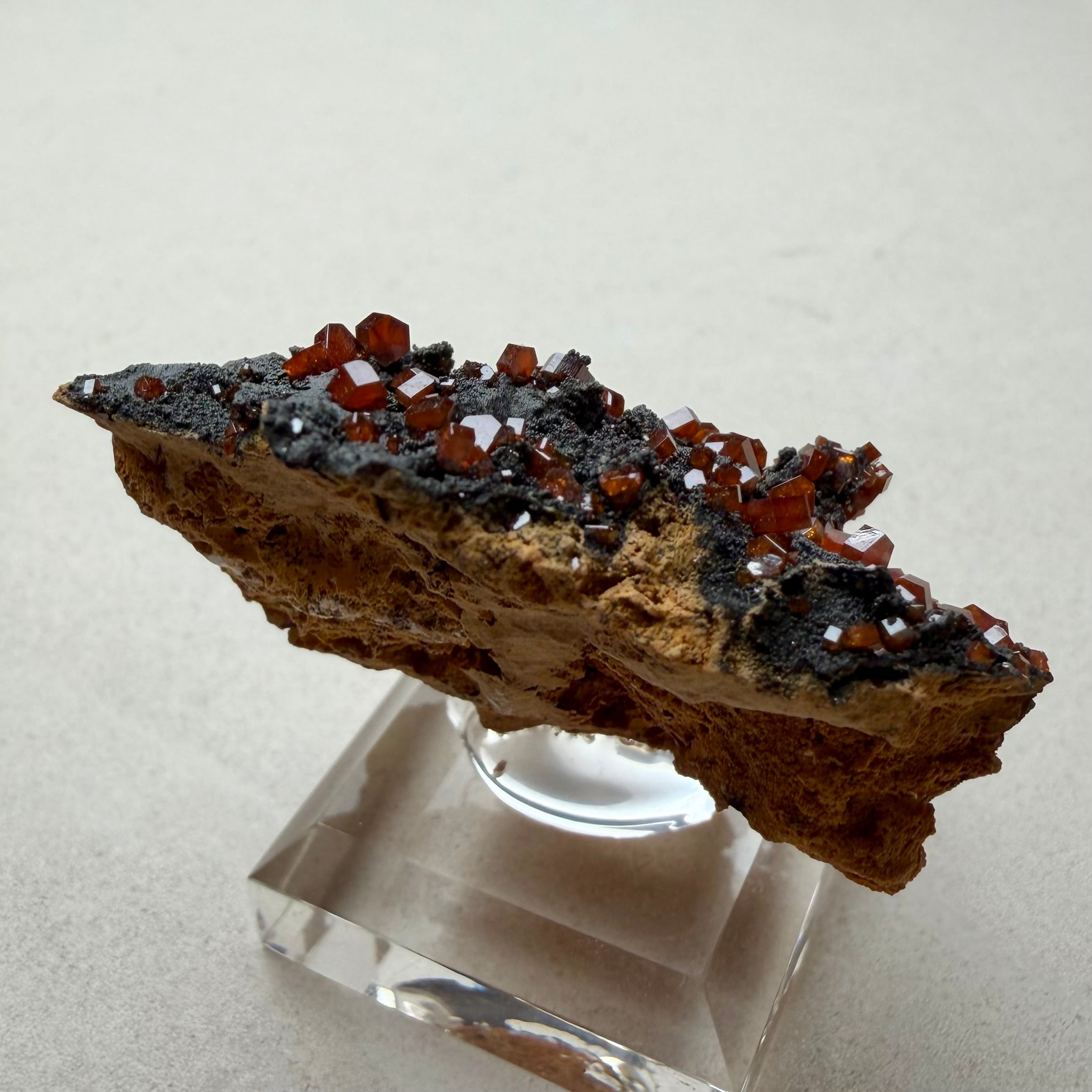 また、通常あまり透け感のない鉱物ですが、結晶の小ささと状態の良さからしっかりと透明感があり、艶のある結晶が楽しめます。