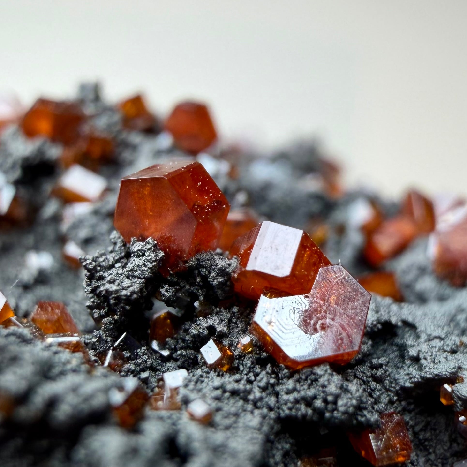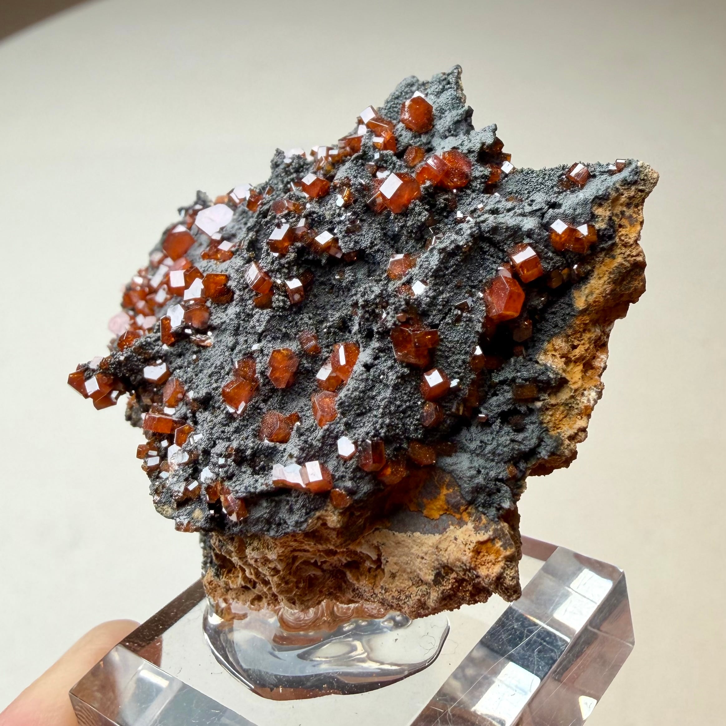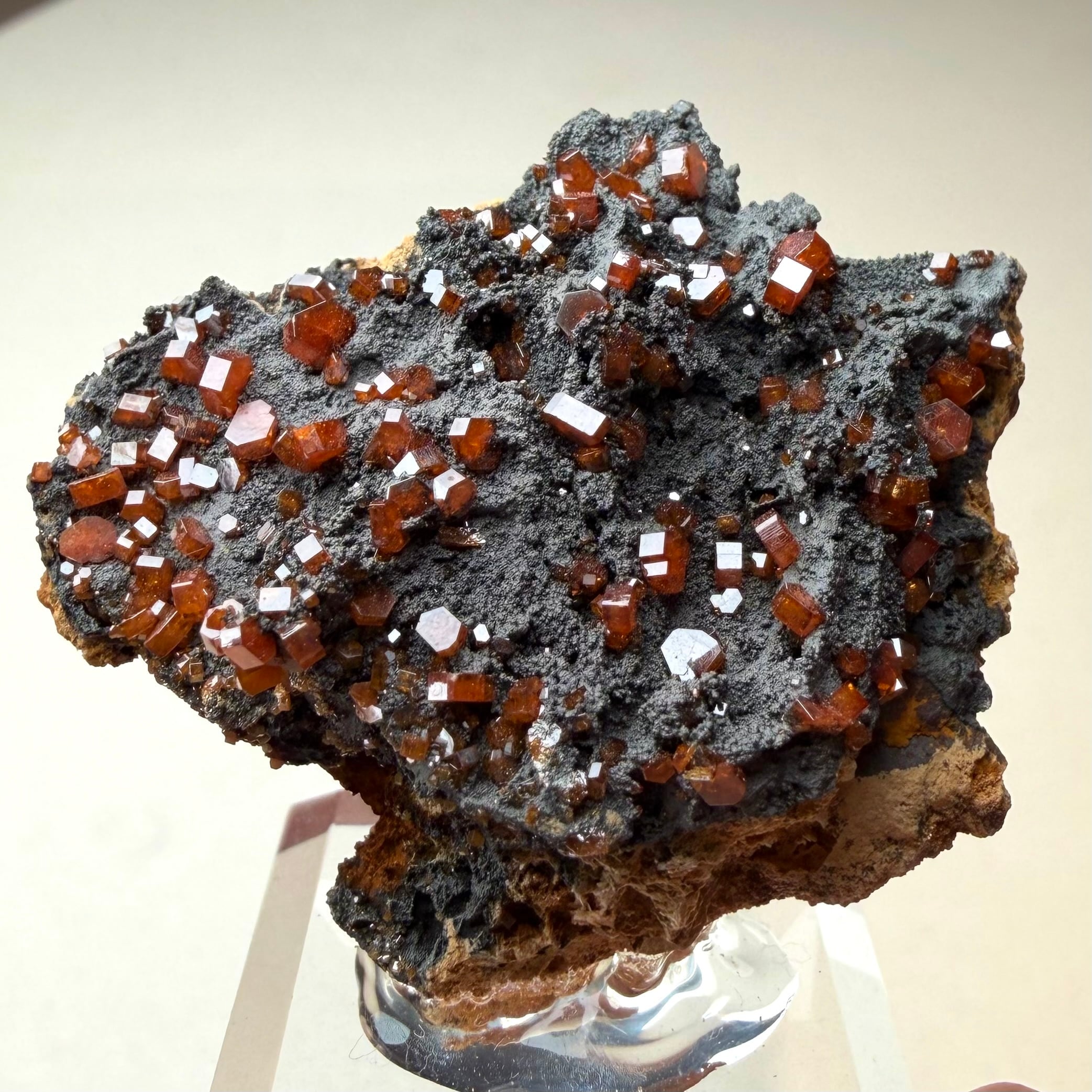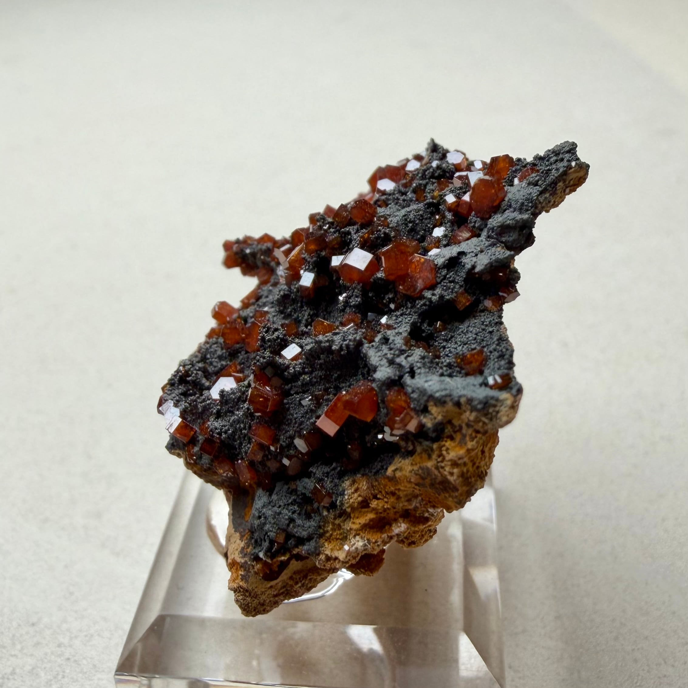 また、通常あまり透け感のない鉱物ですが、結晶の小ささと状態の良さからしっかりと透明感があり、艶のある結晶が楽しめます。