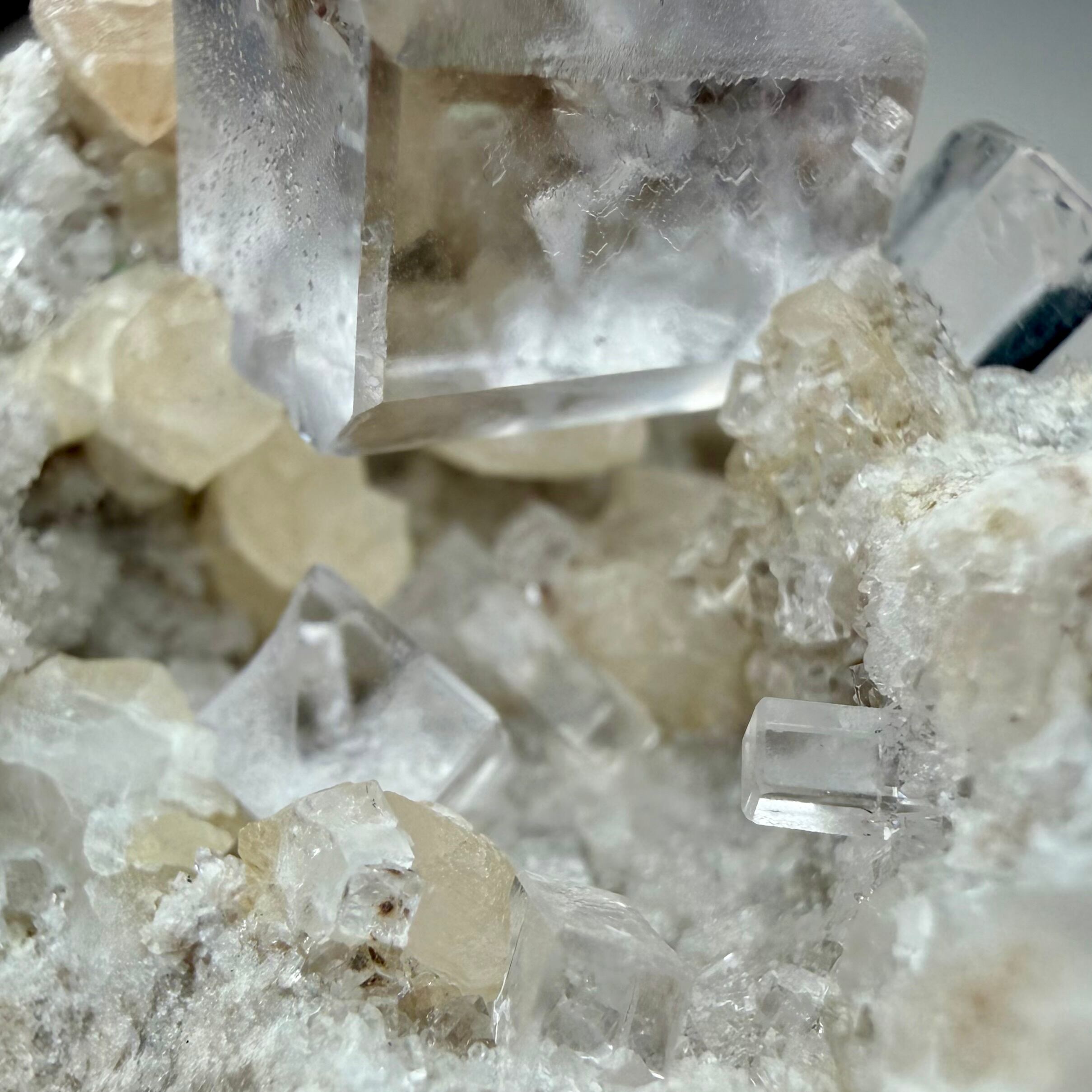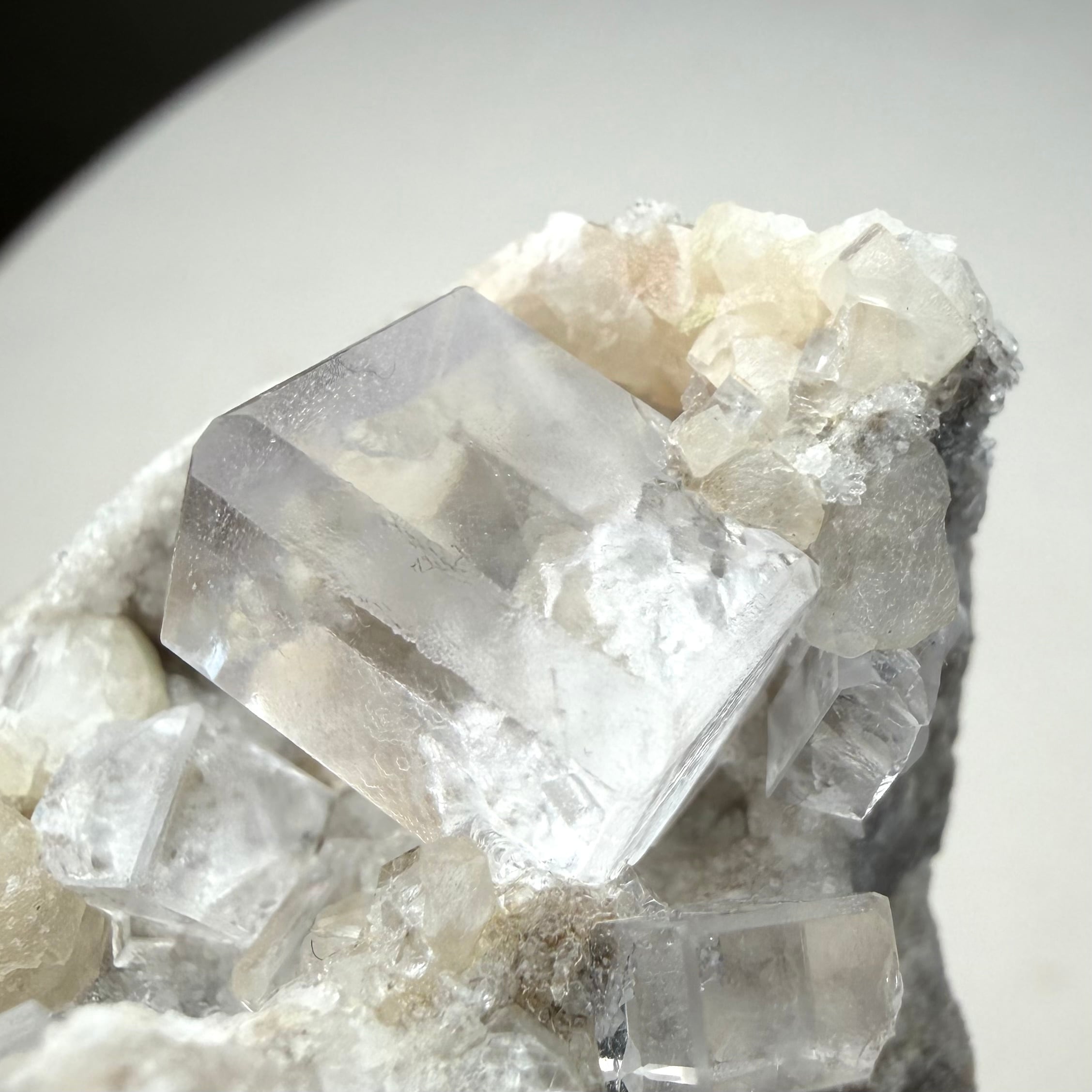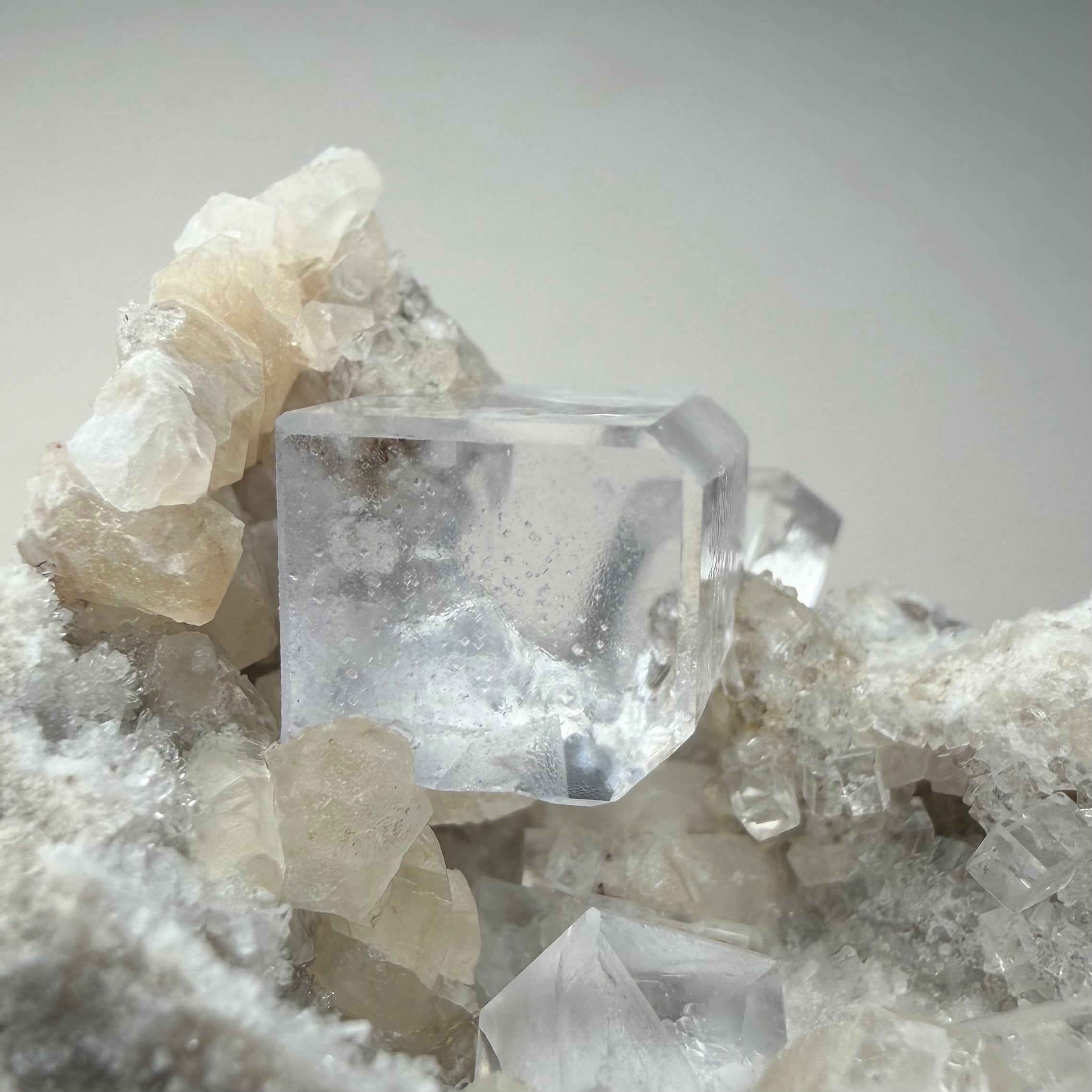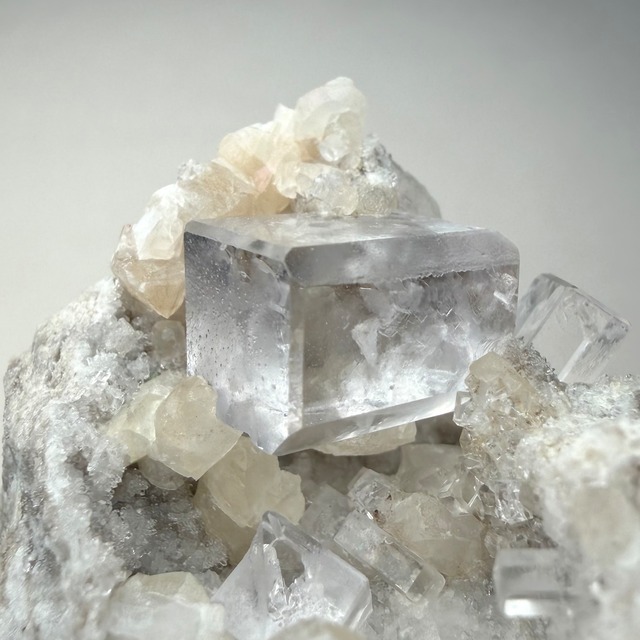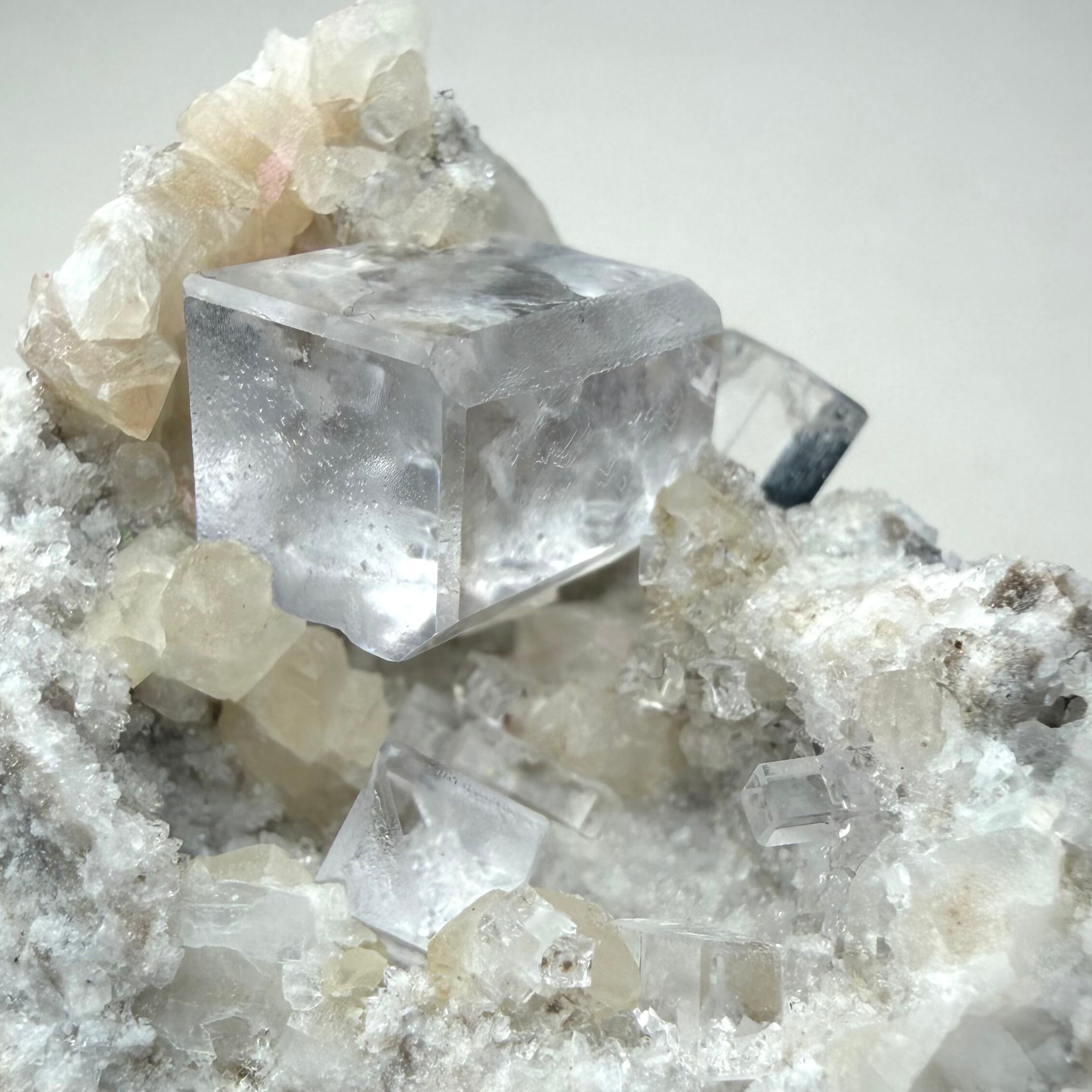 スペイン、Liamas Quarryのカラーレスフローライトとカルサイトのコンビネーションです。