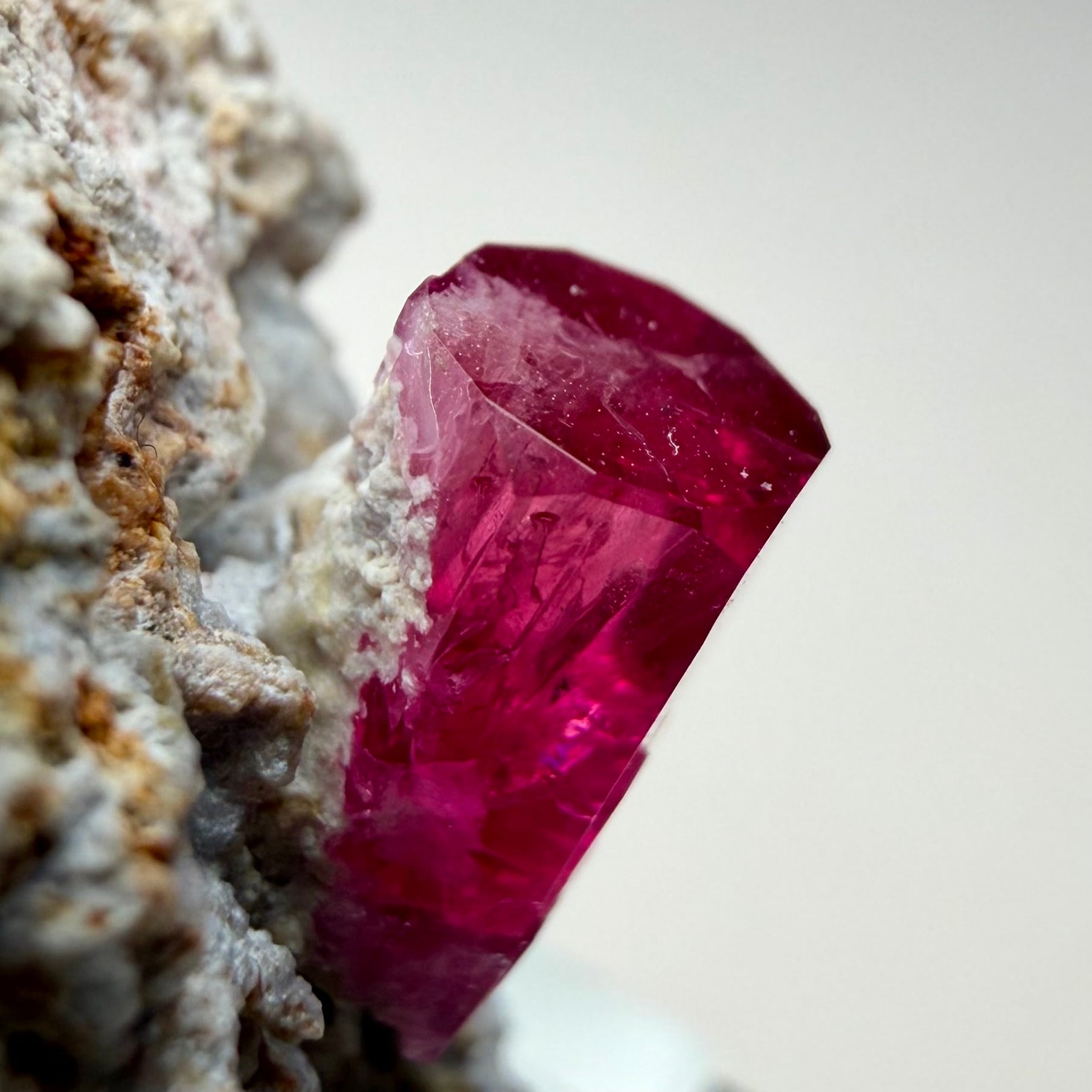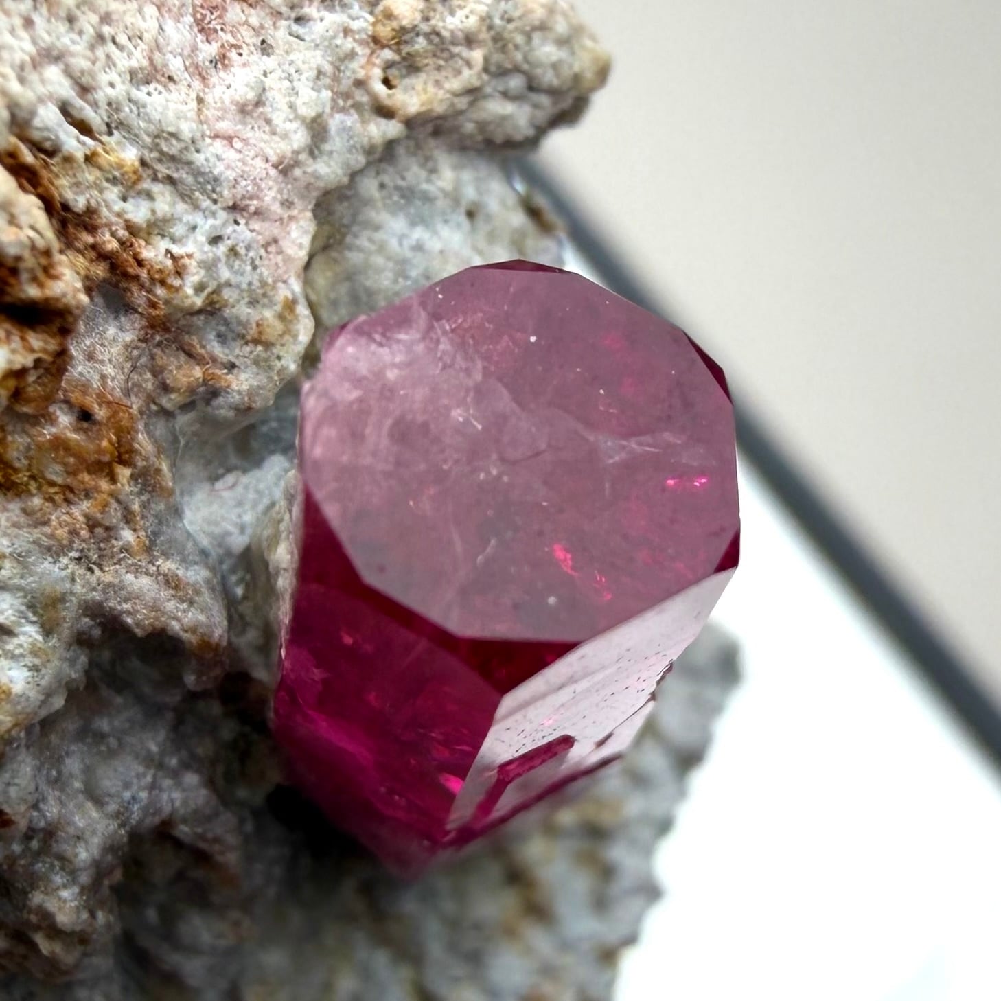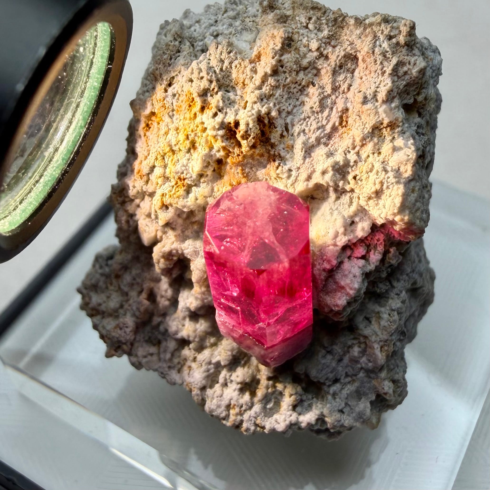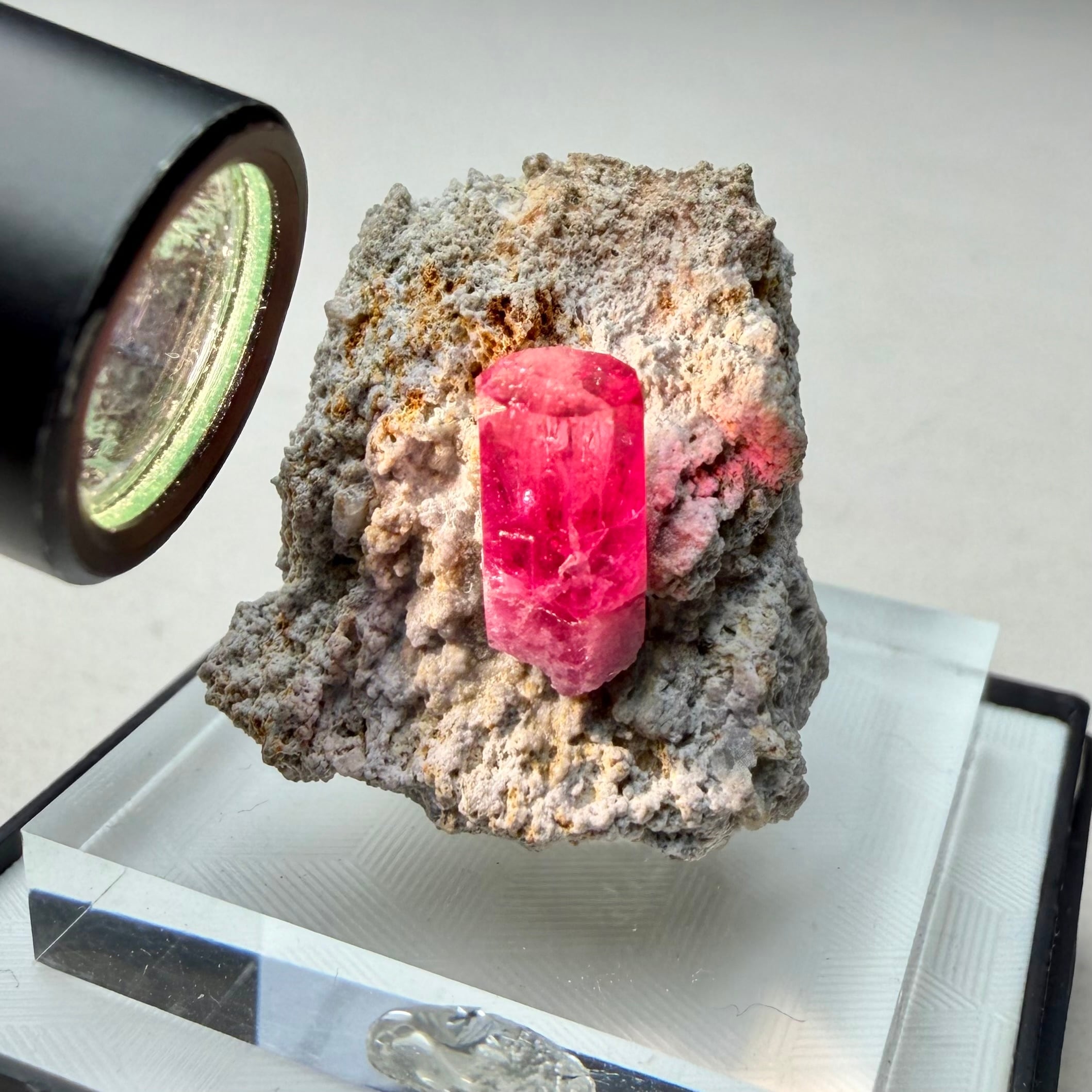 美結晶の流通がほぼ無い中で、この結晶は非常にクリアで強いテリがあり、レッドベリルならではの真っ赤な発色も良好です。