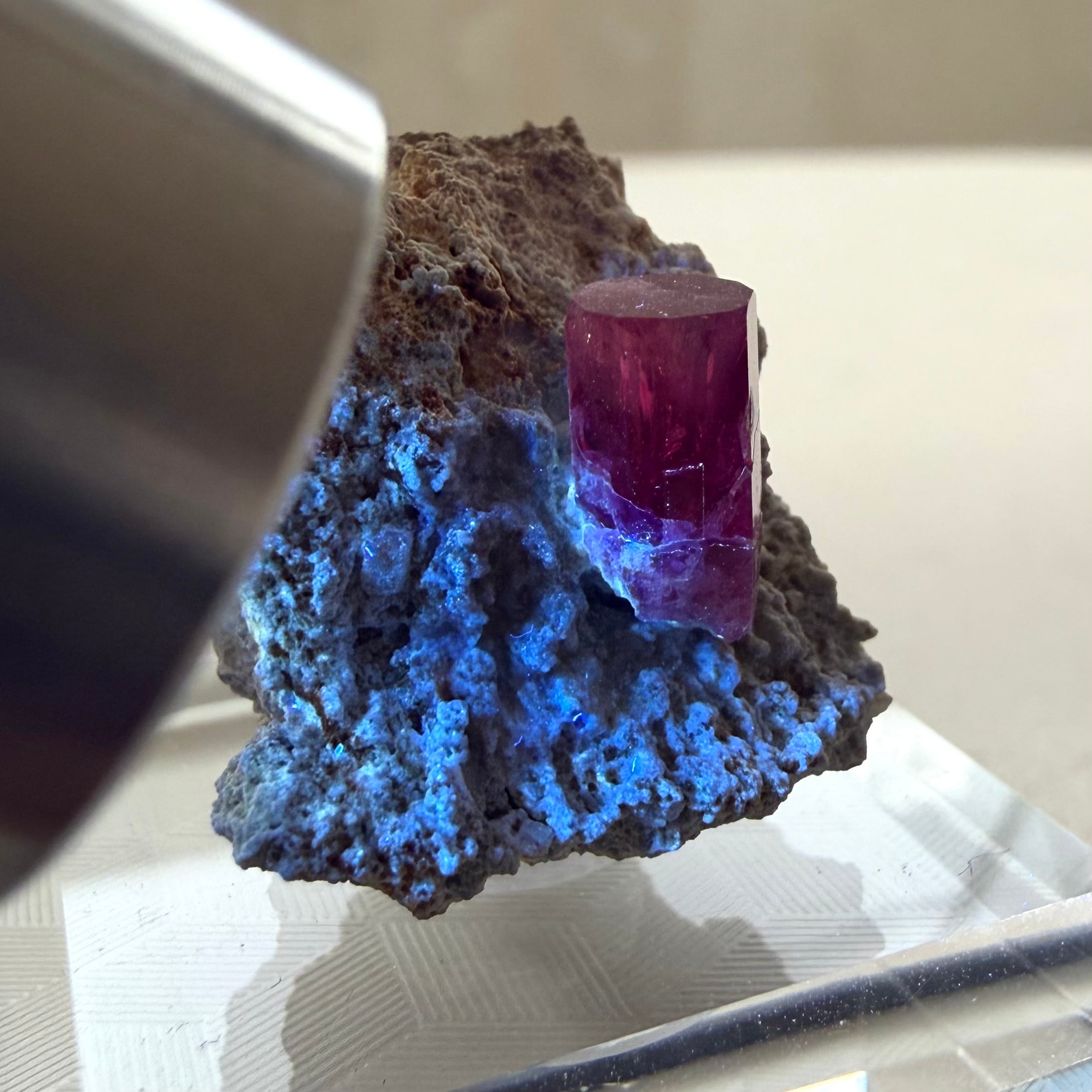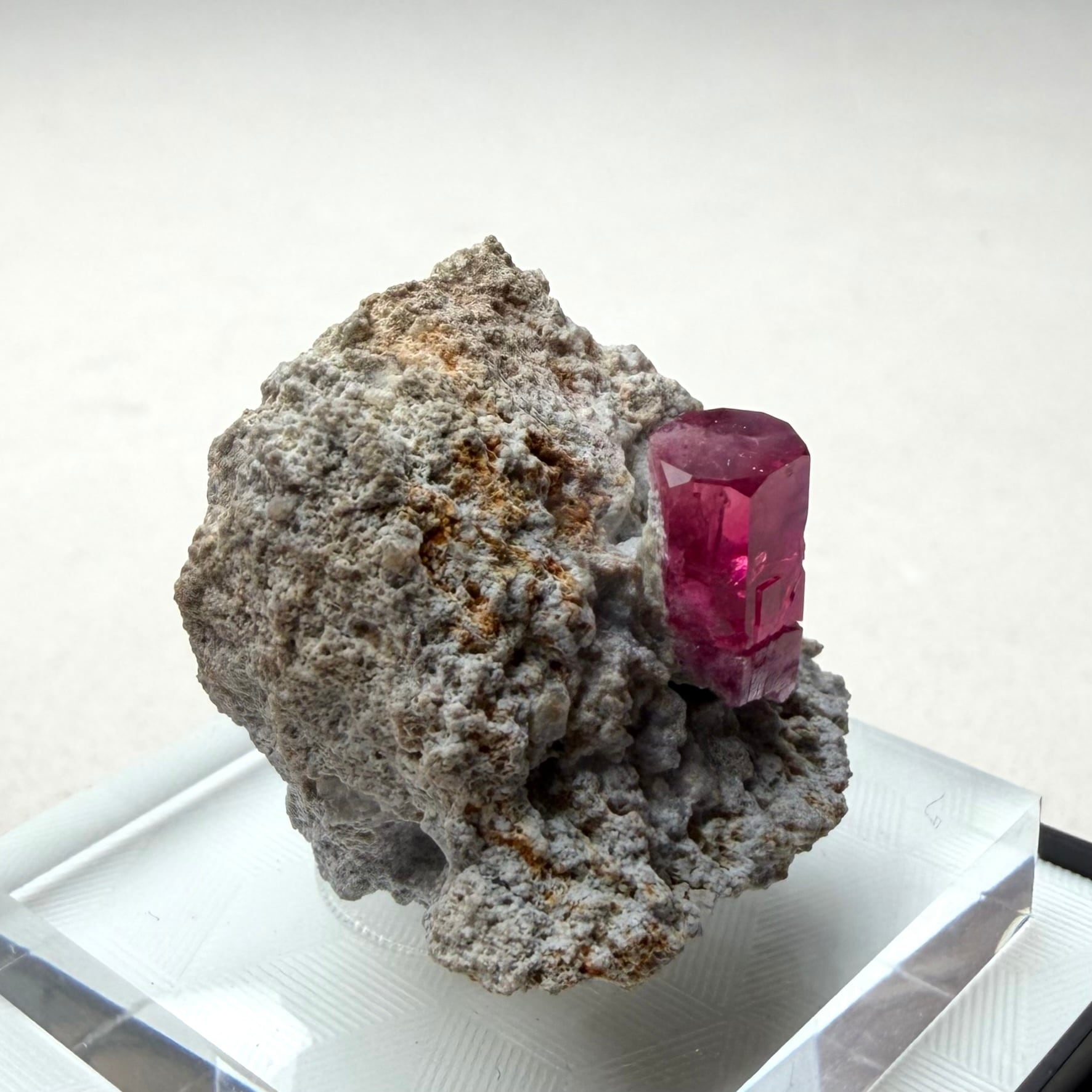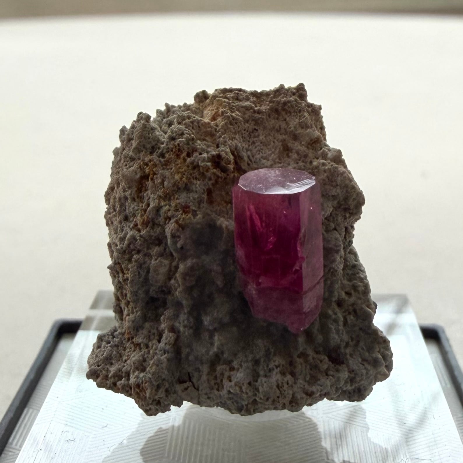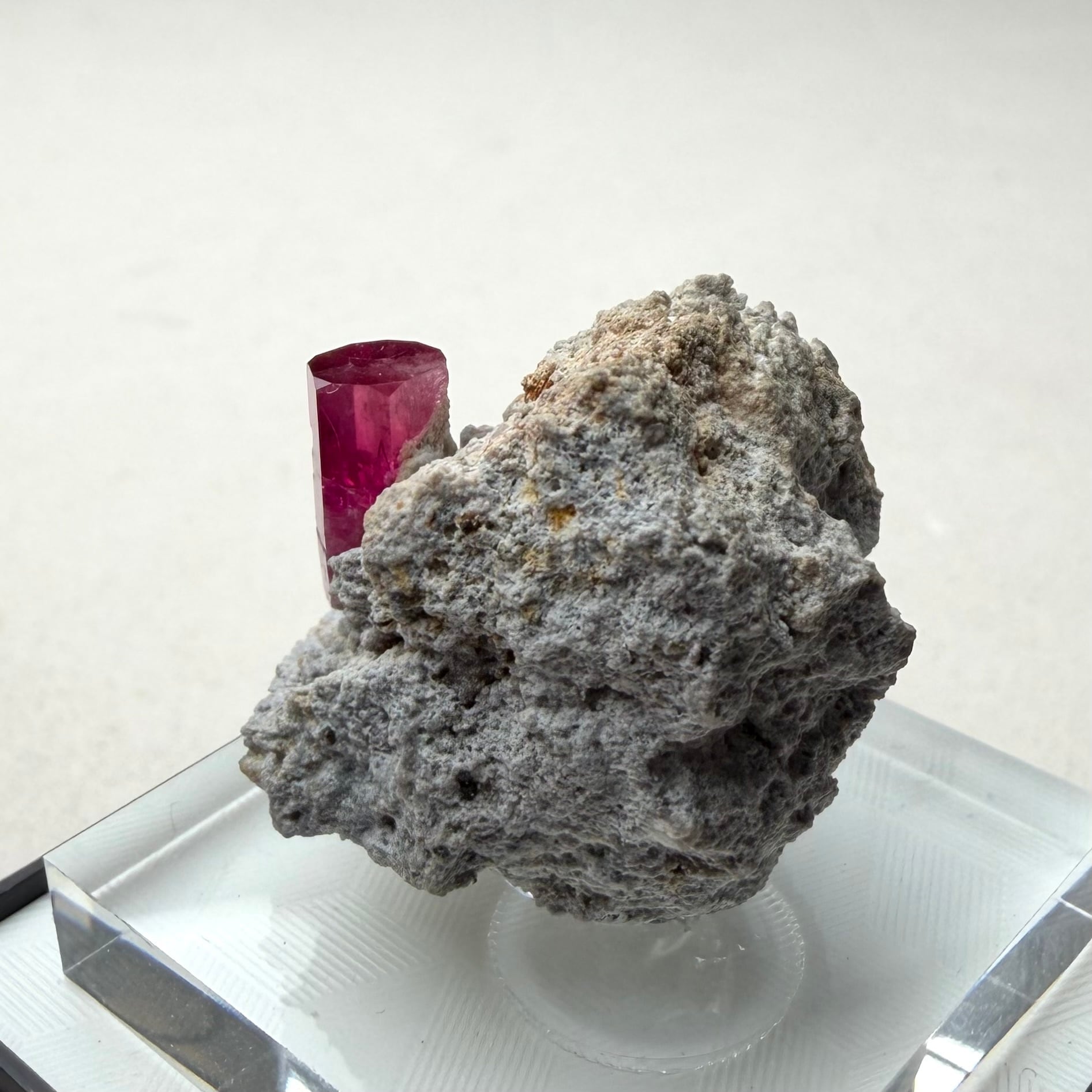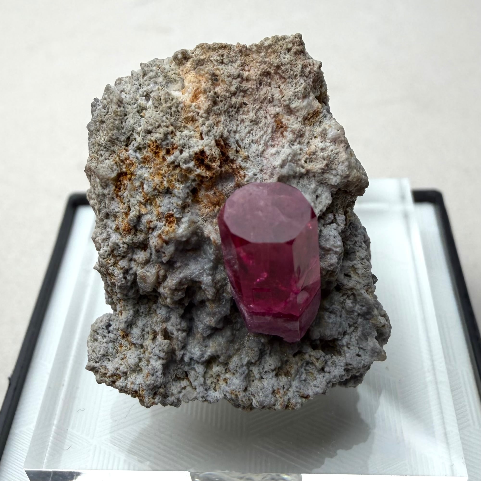 美結晶の流通がほぼ無い中で、この結晶は非常にクリアで強いテリがあり、レッドベリルならではの真っ赤な発色も良好です。