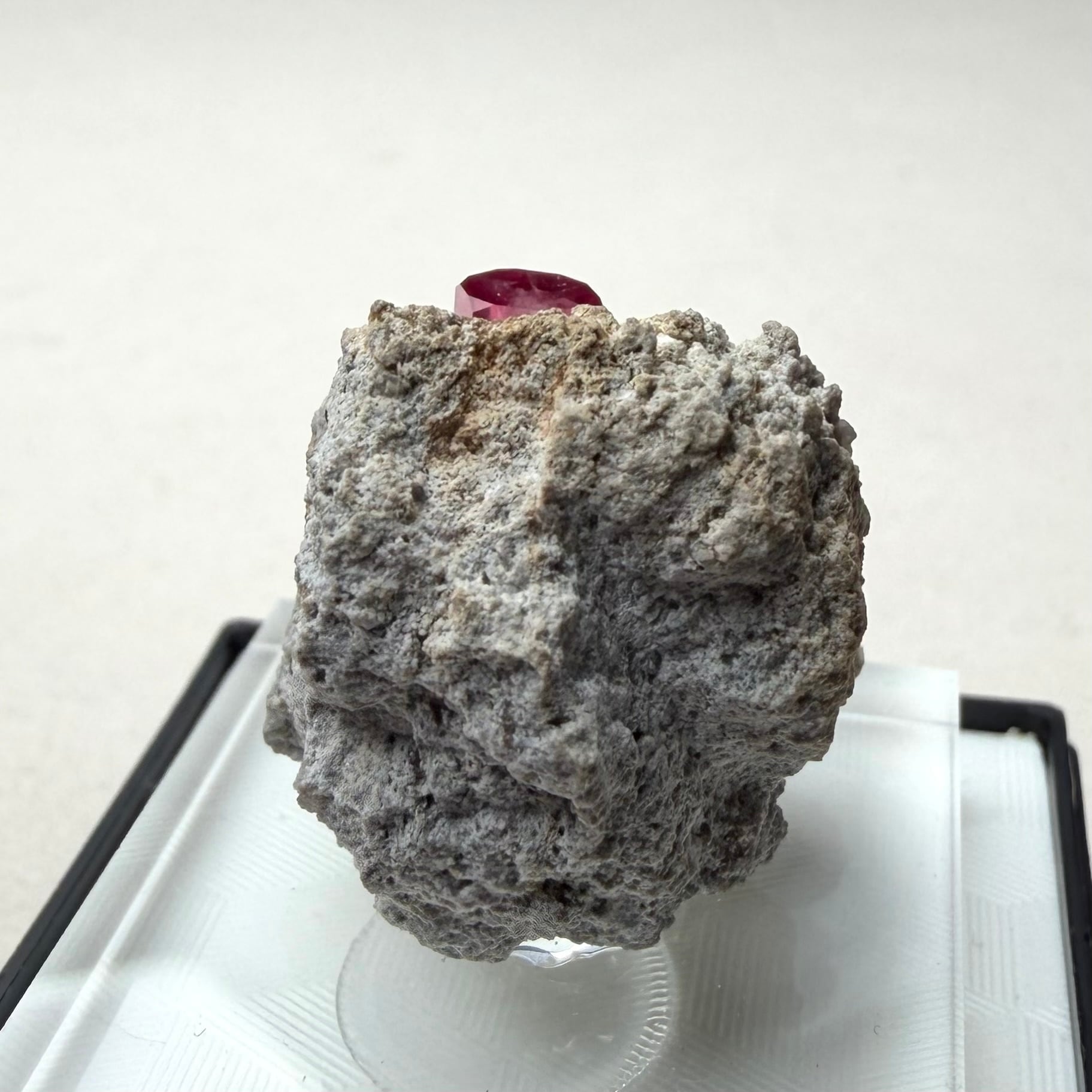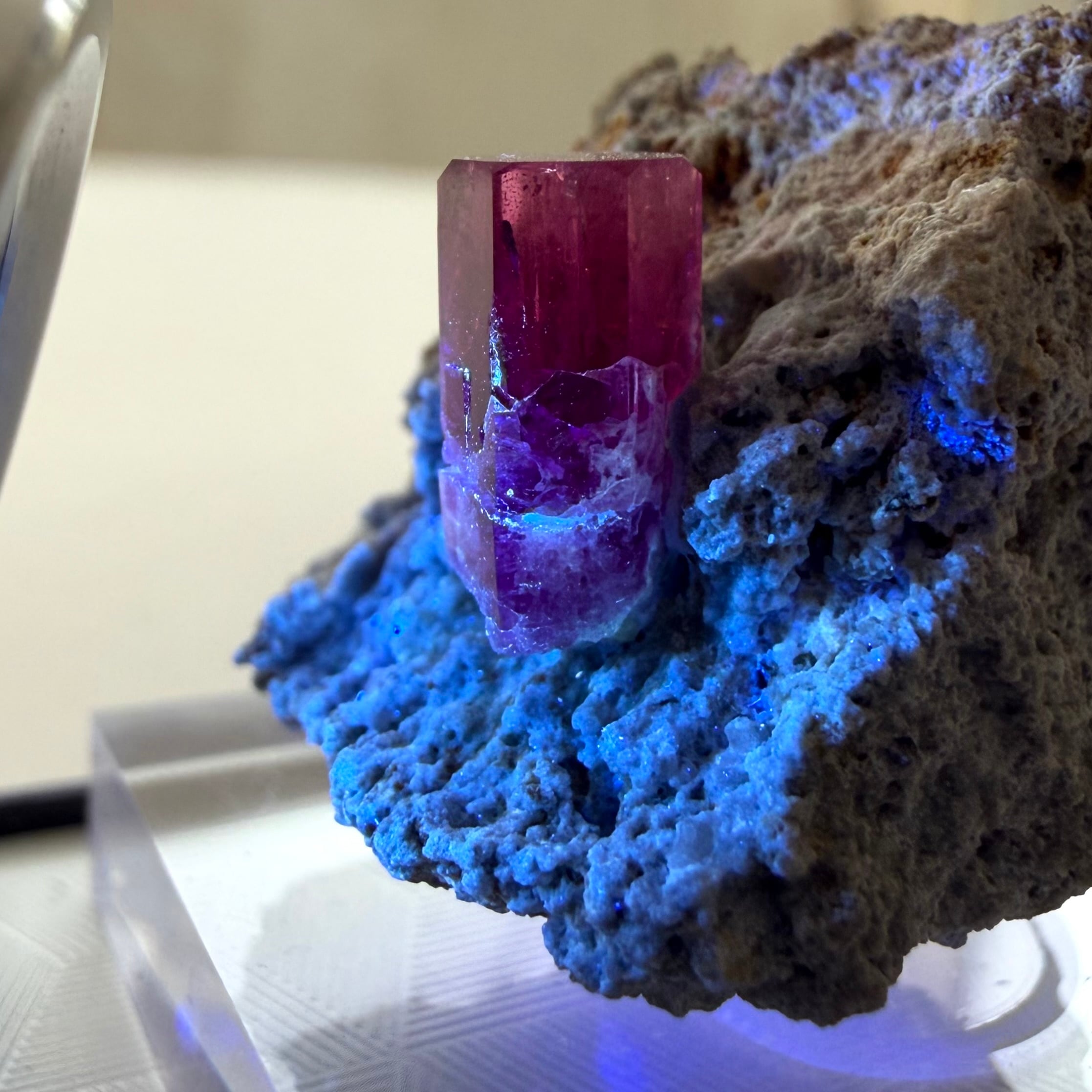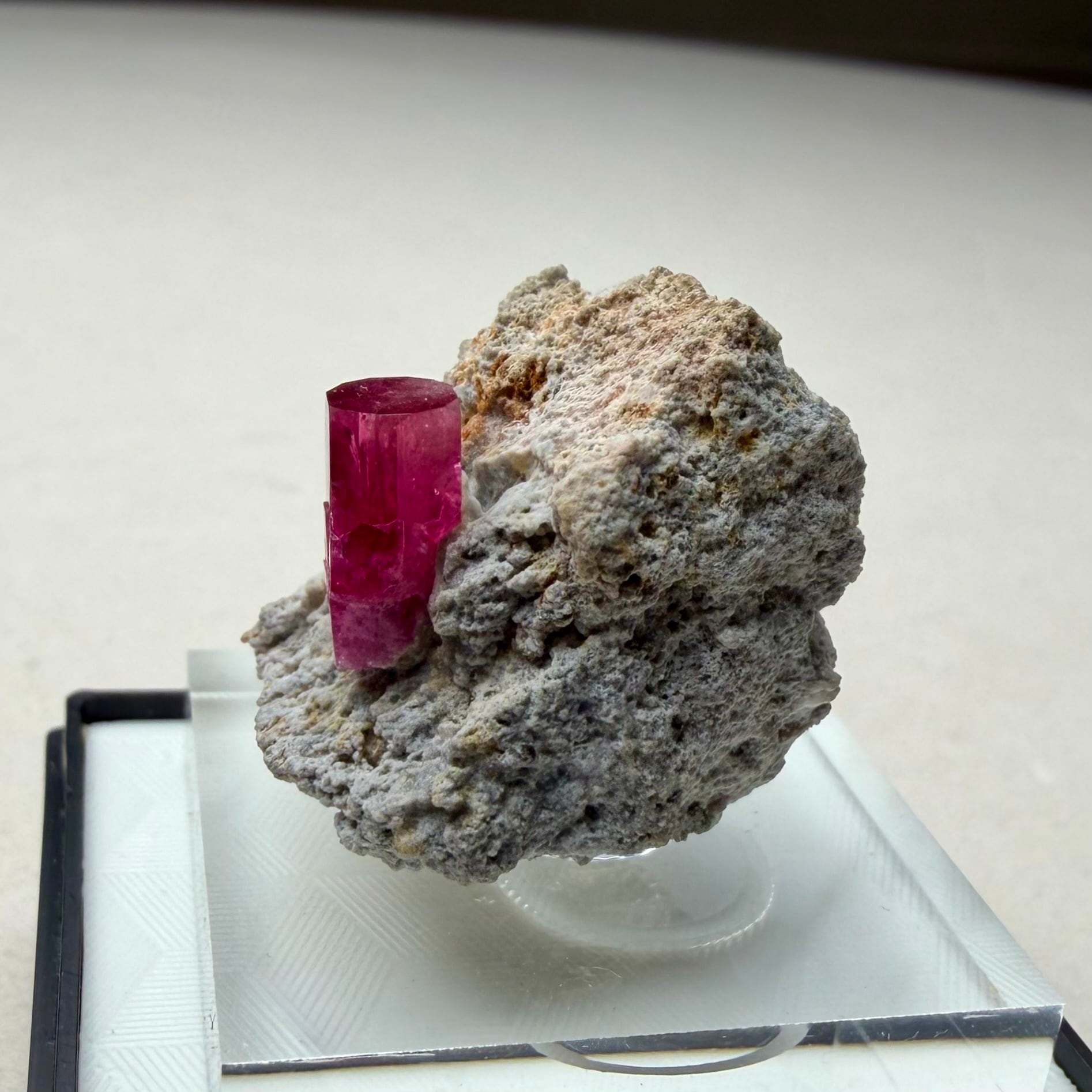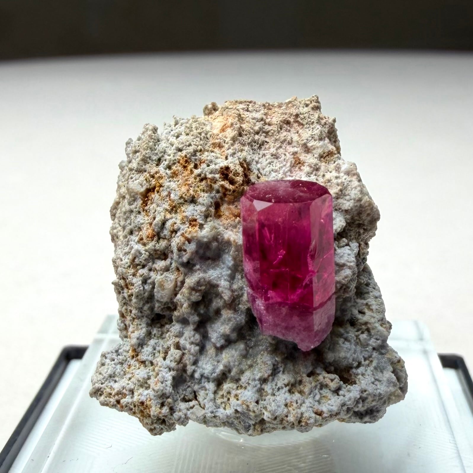 美結晶の流通がほぼ無い中で、この結晶は非常にクリアで強いテリがあり、レッドベリルならではの真っ赤な発色も良好です。