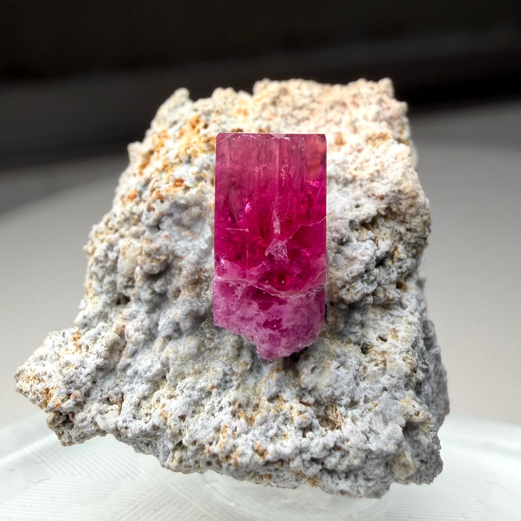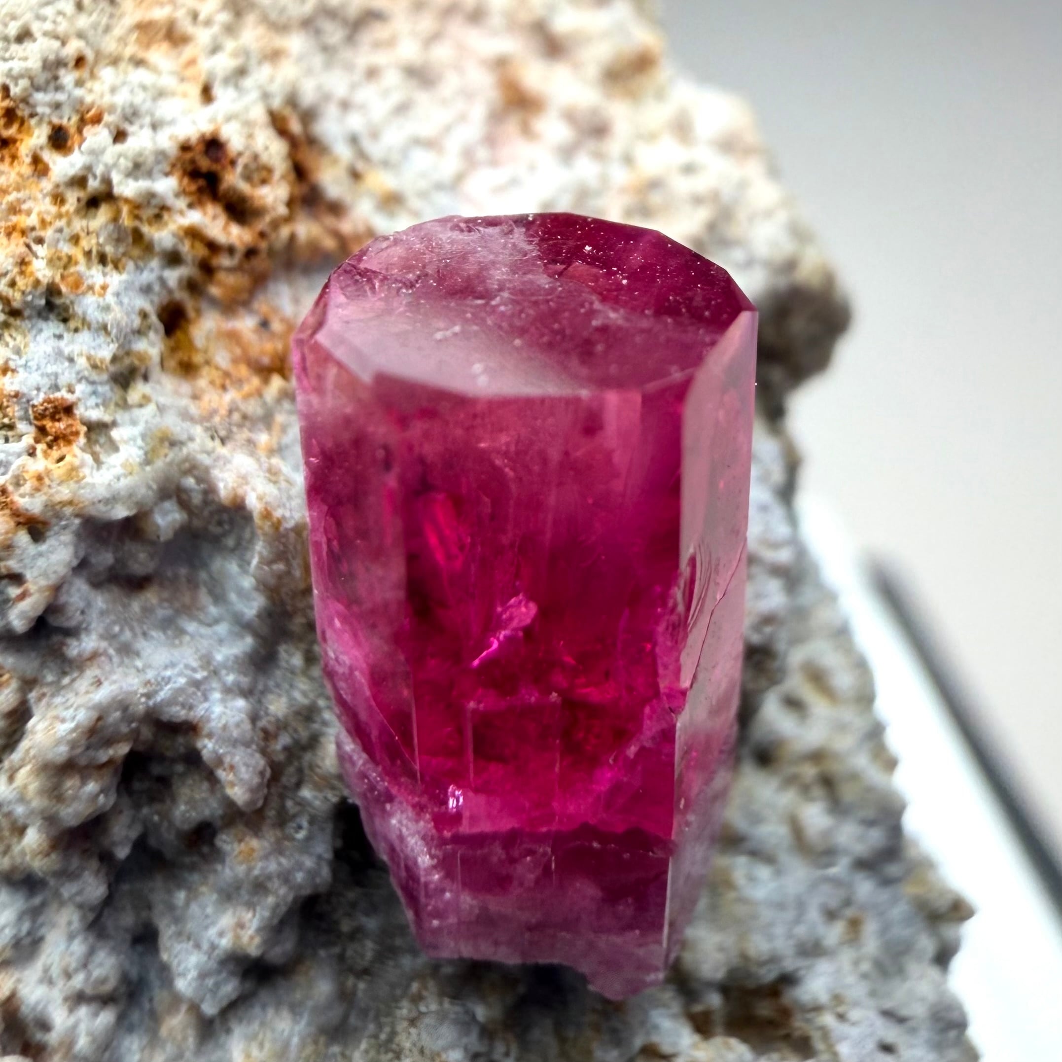 また、レッドベリルにありがちな結晶内部や表面の白い部分もこれはあまり見られず、その点でも魅力的な結晶です。