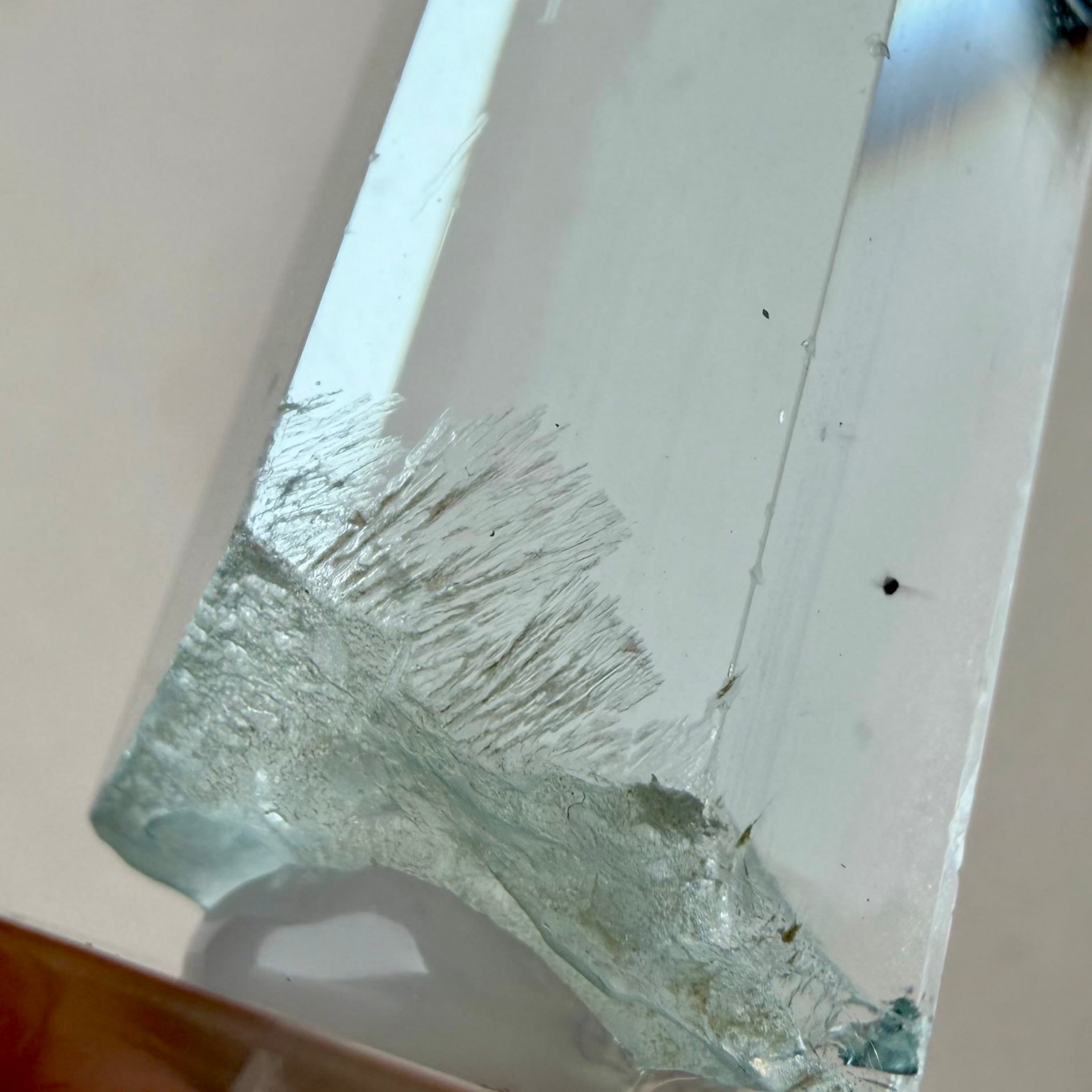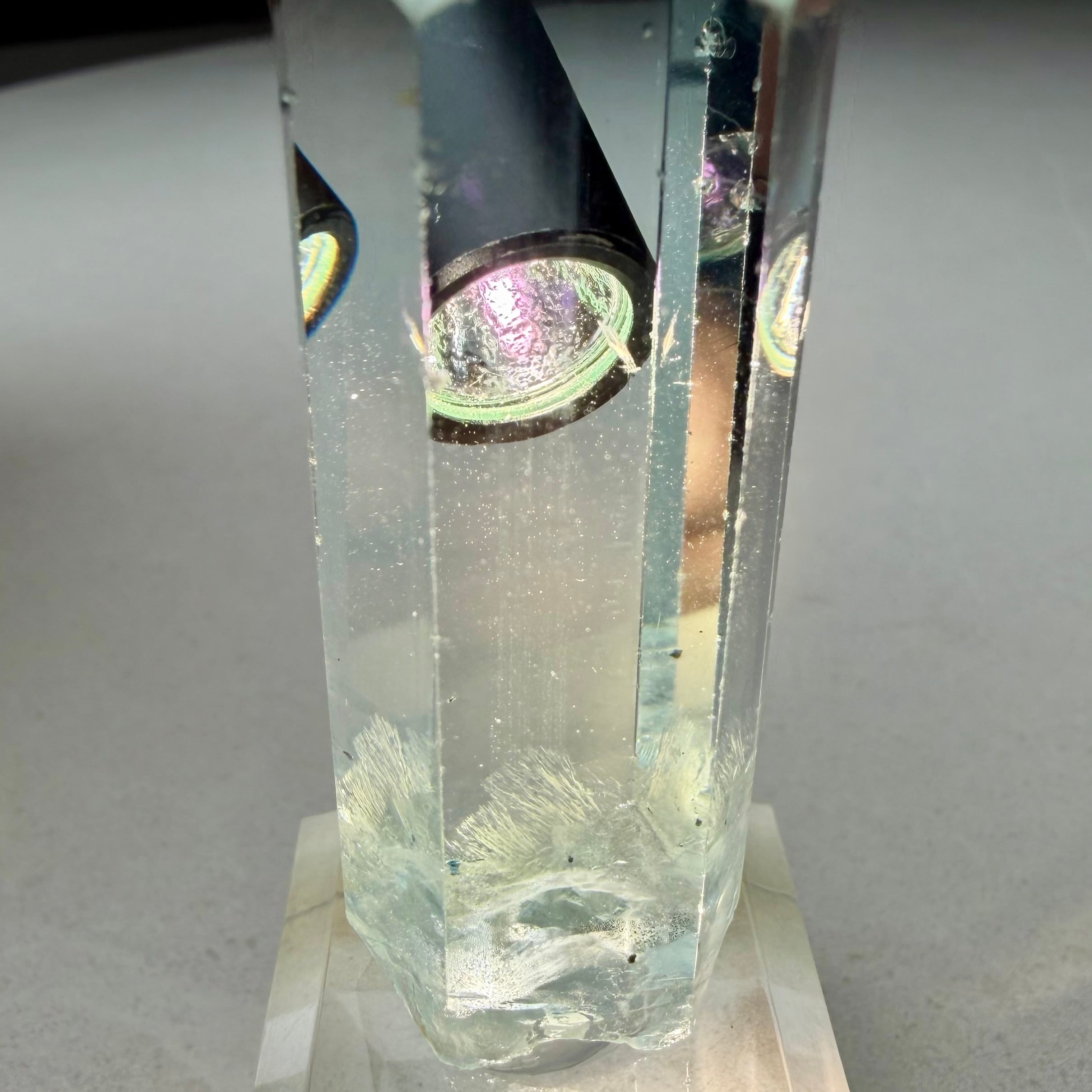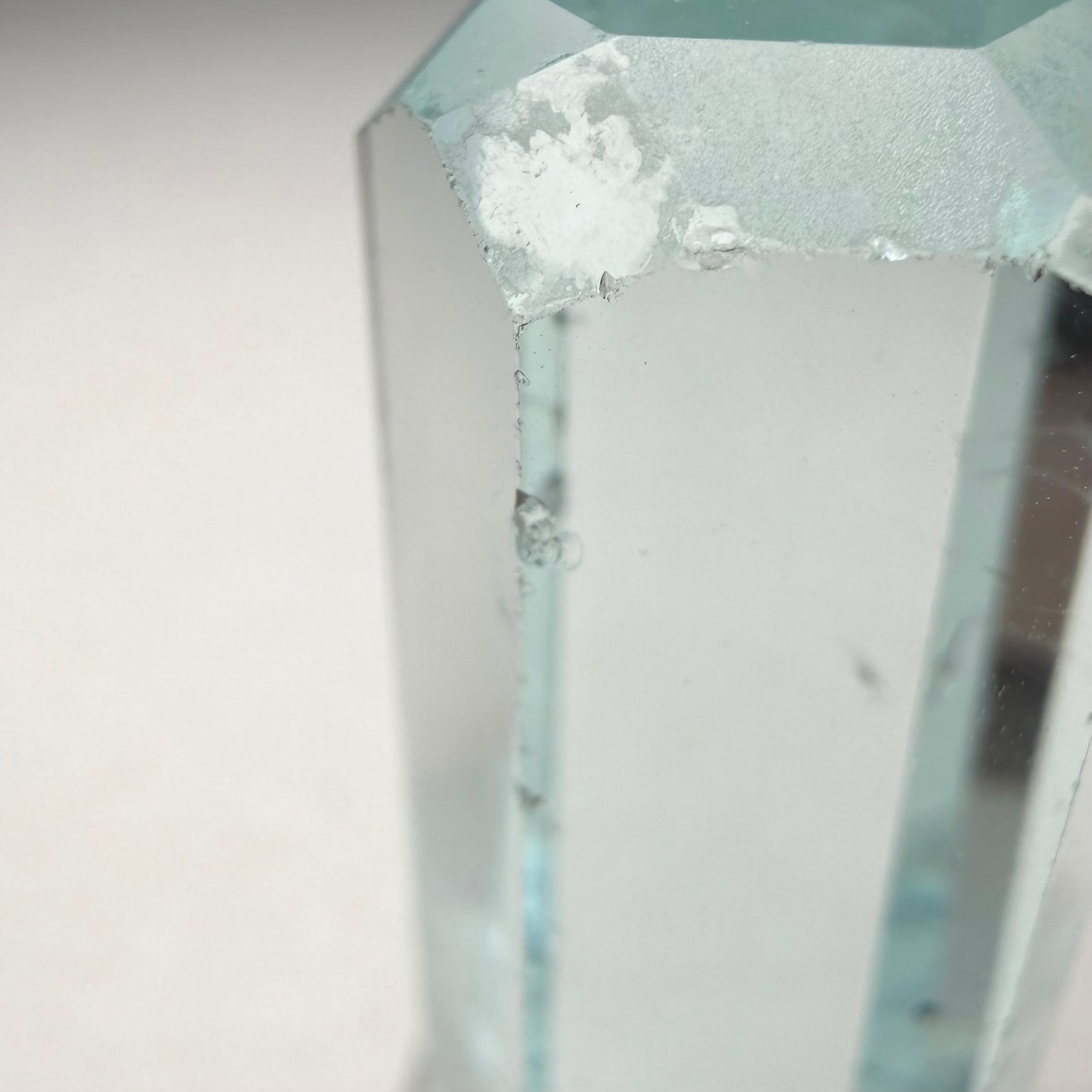 幾つかの画像でわかる様に結晶のエッジの一部に僅かなダメージがありますが、本来ならば気に留める程ではない小さな傷も、これだけ綺麗だと目に入る点ではデメリットかもしれません。