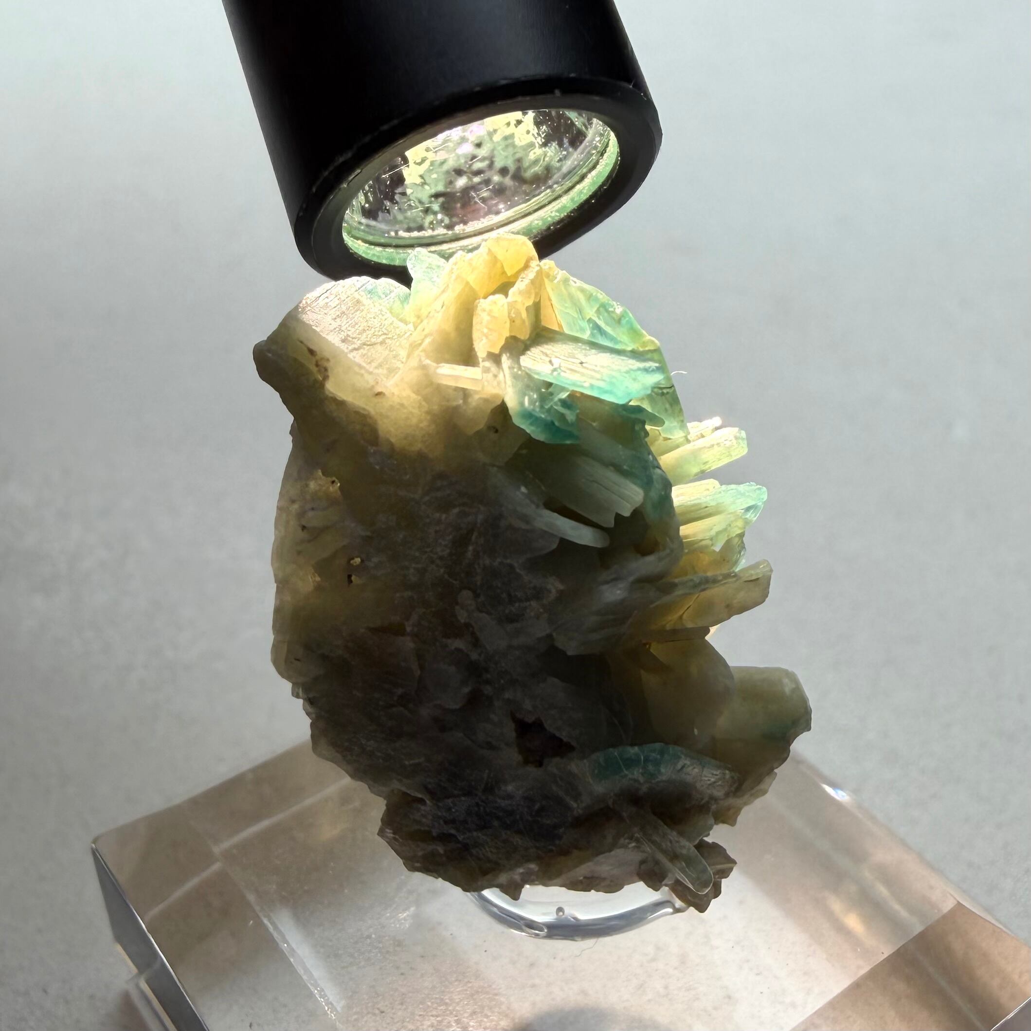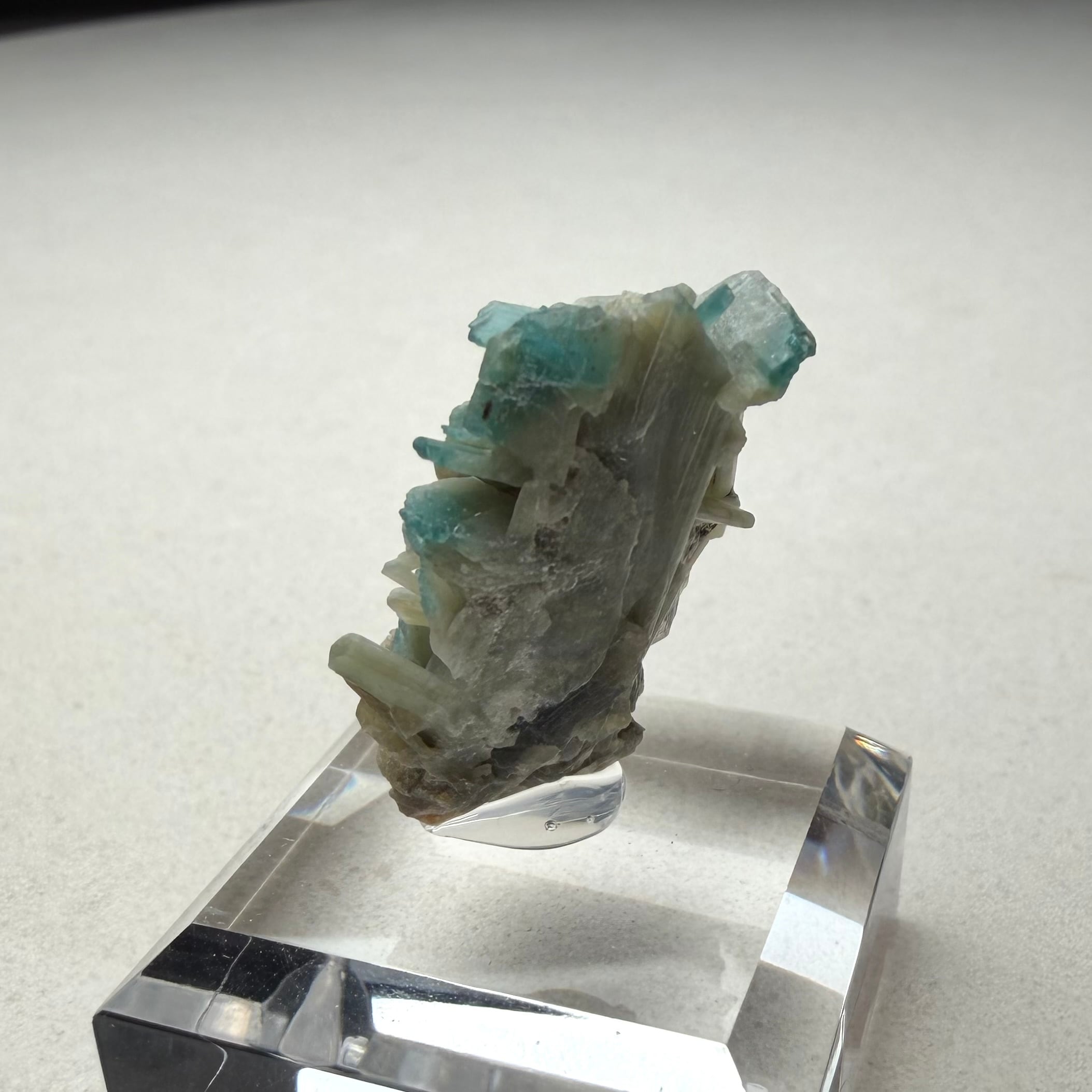 クラスターの内、発色が良好なのは一部の先端部分のみになりますが、産状がわかるクラスター標本は魅力的です。