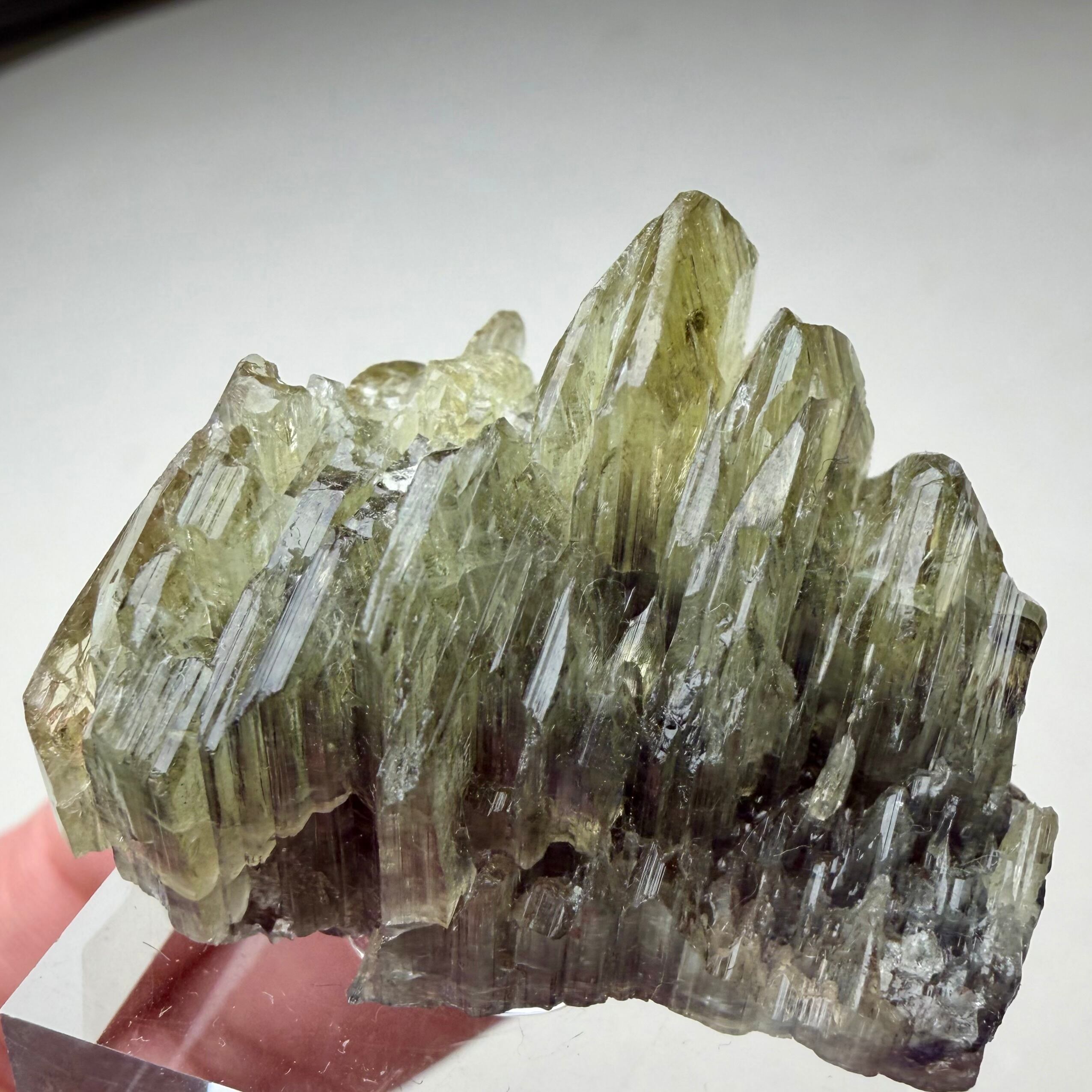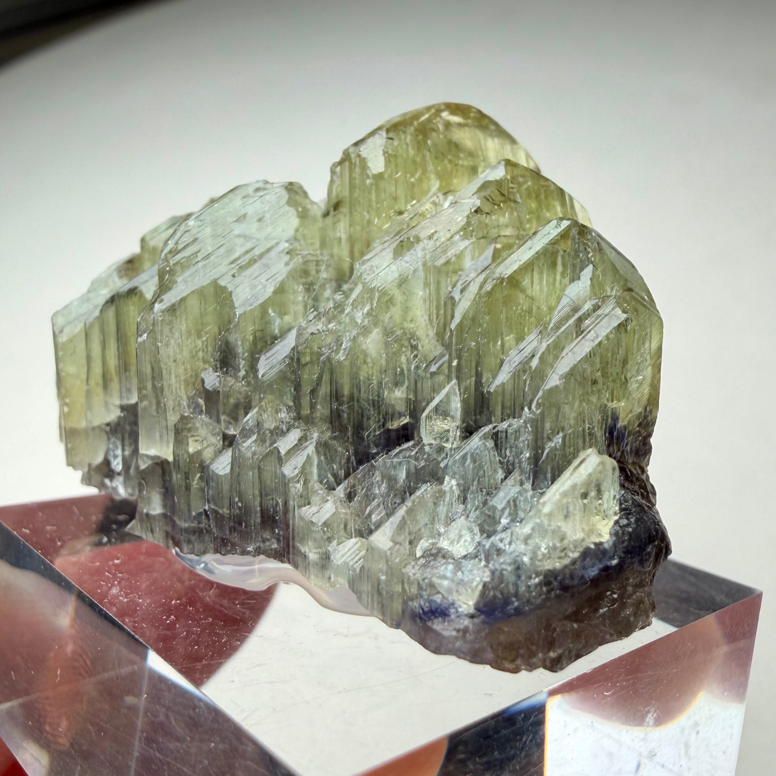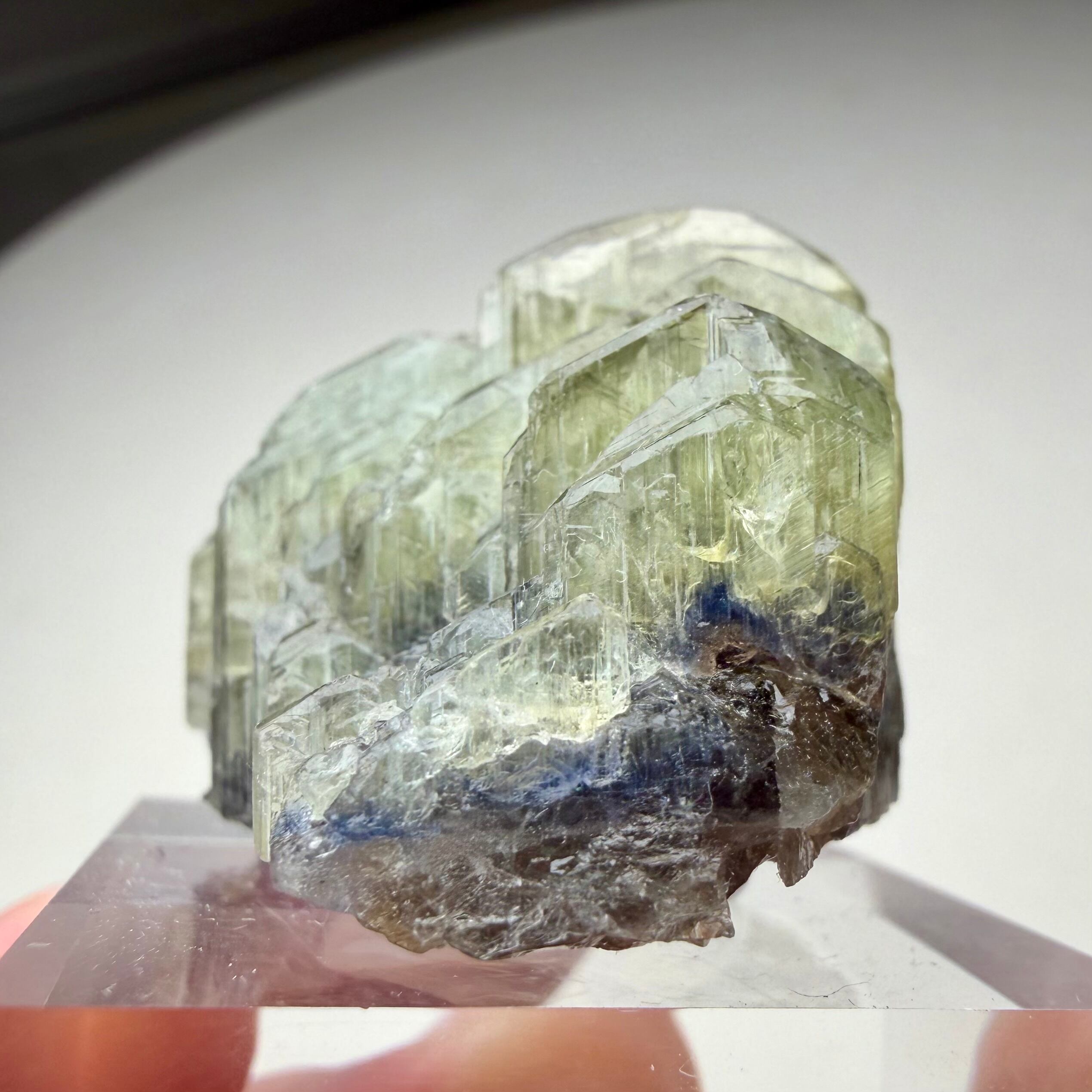 その結晶の半分以上はイエロー寄りの発色のためゾイサイト表記が妥当なのかもしれませんが、根元部分はしっかりとブルーパープルの発色が見られるため、バイカラータンザナイトと言って良さそうです。