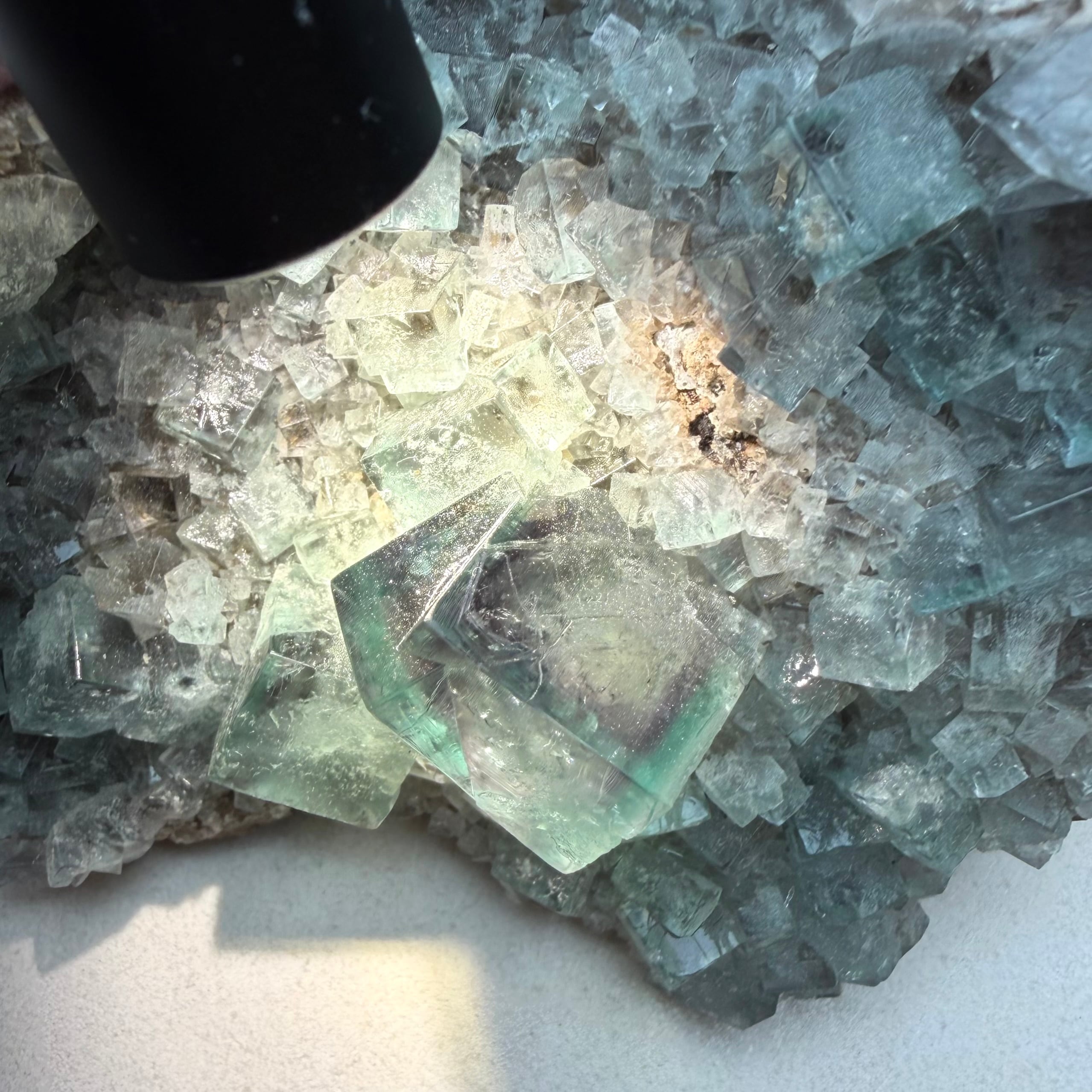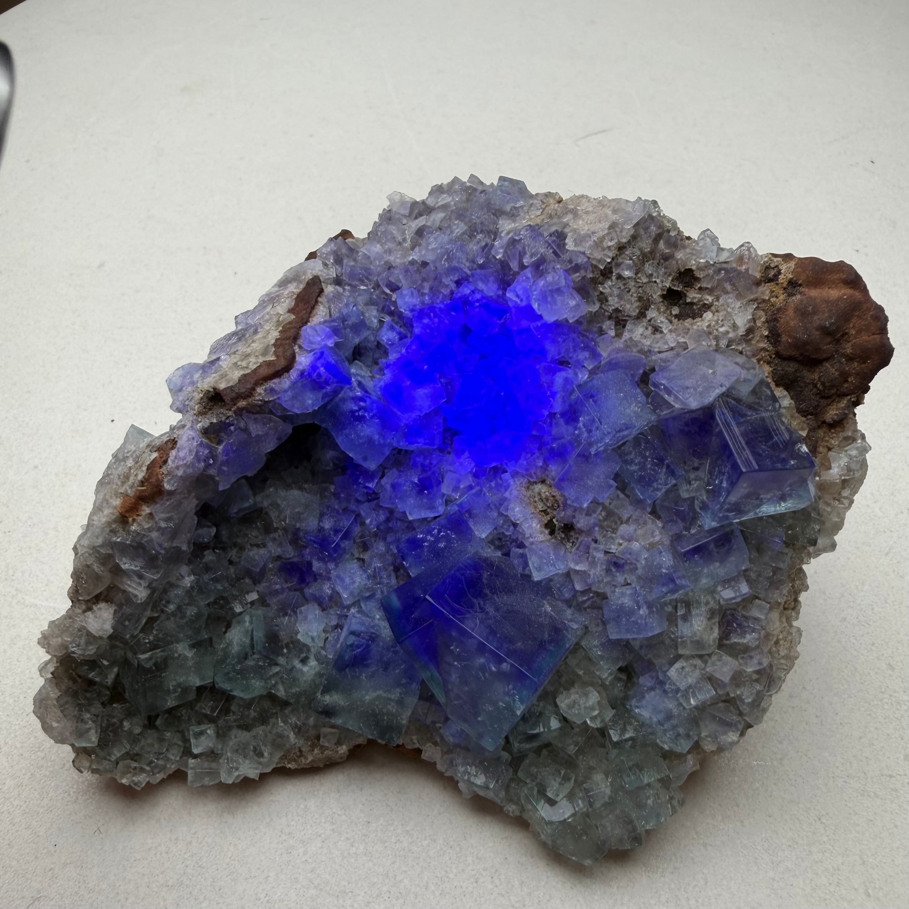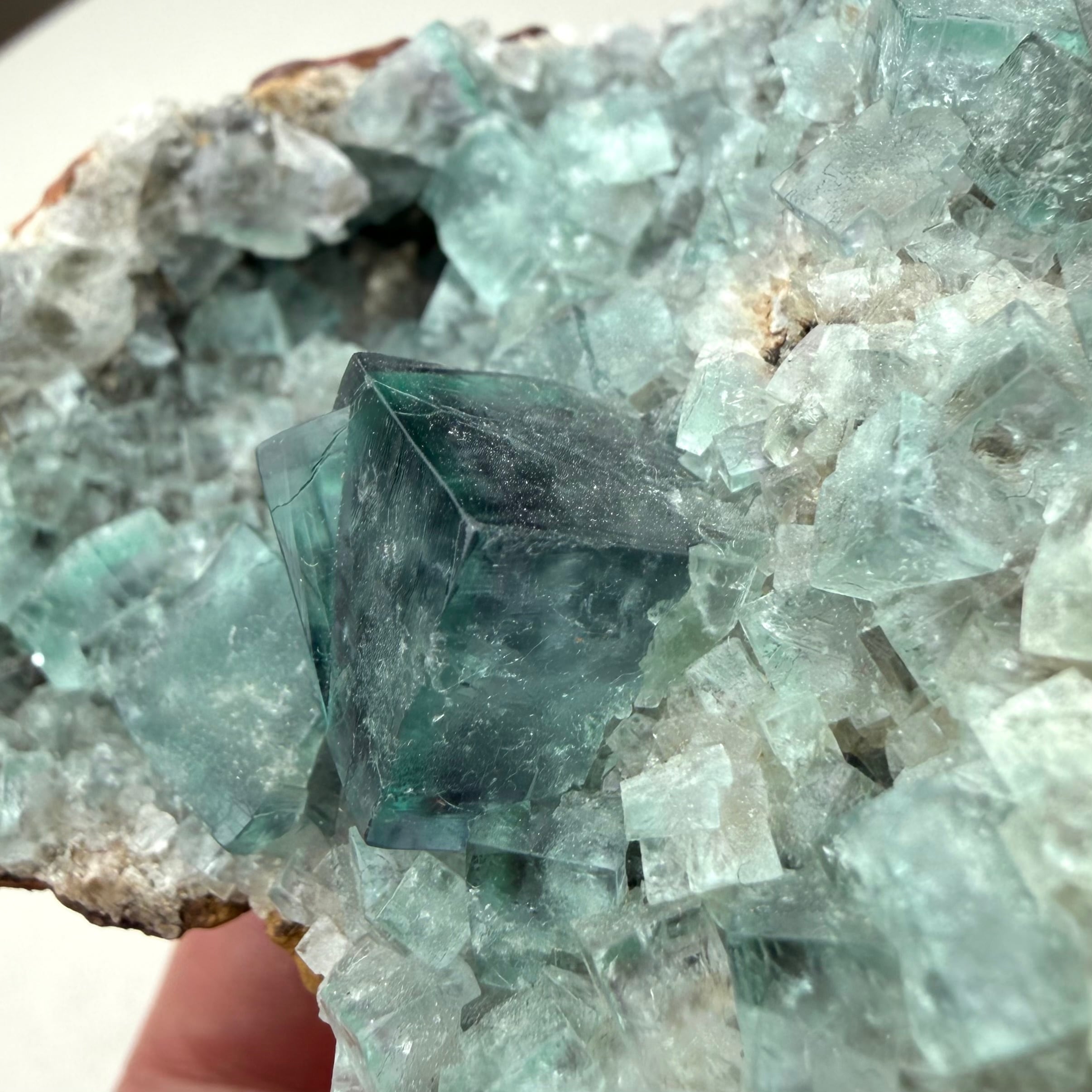 その他の小さな標本は結晶の面や内部が白くなったものが多い反面、Blue Circle Cement Quarryの、しっかりと大きいクラスター標本は中々見かけないため、そう言った意味でも魅力的な標本です。