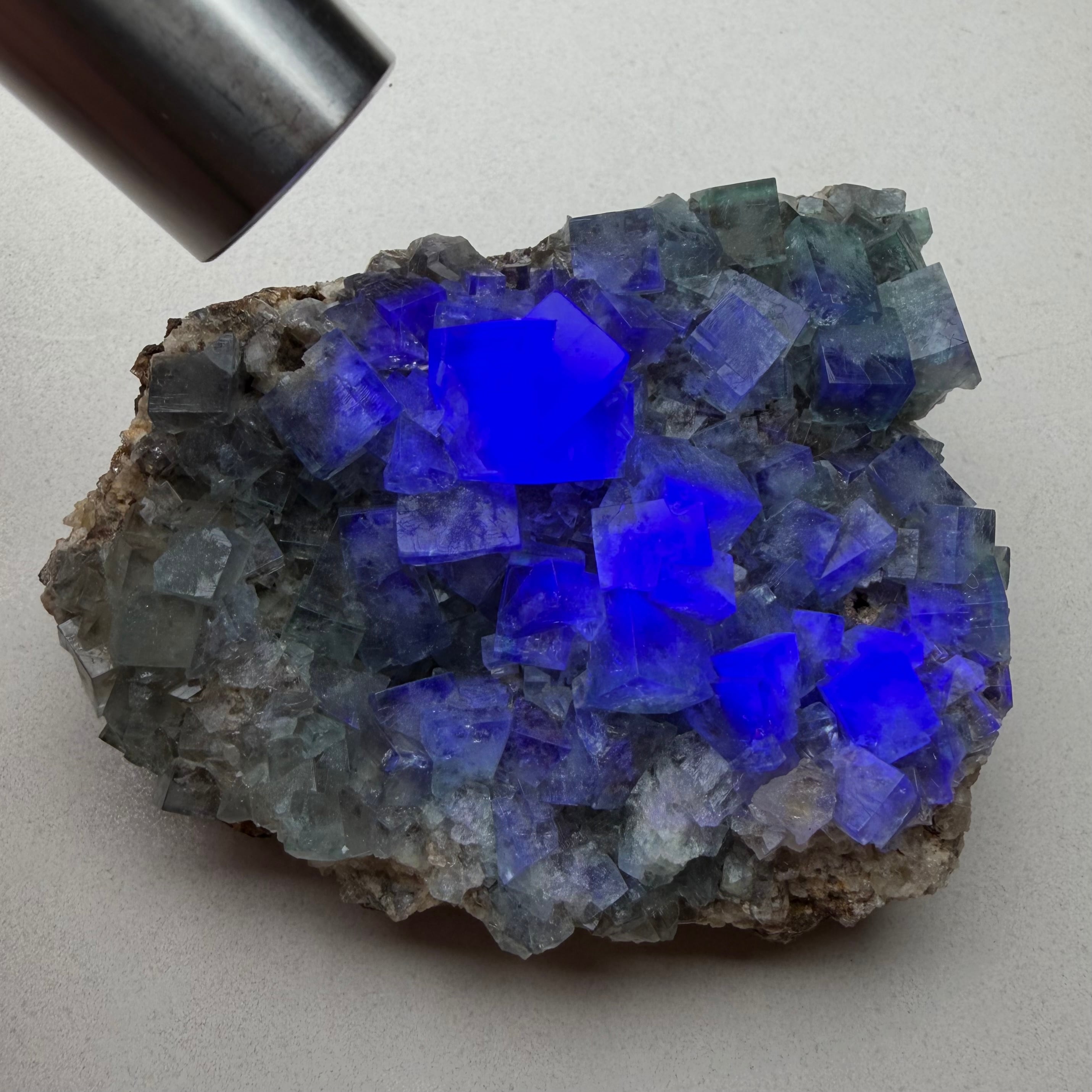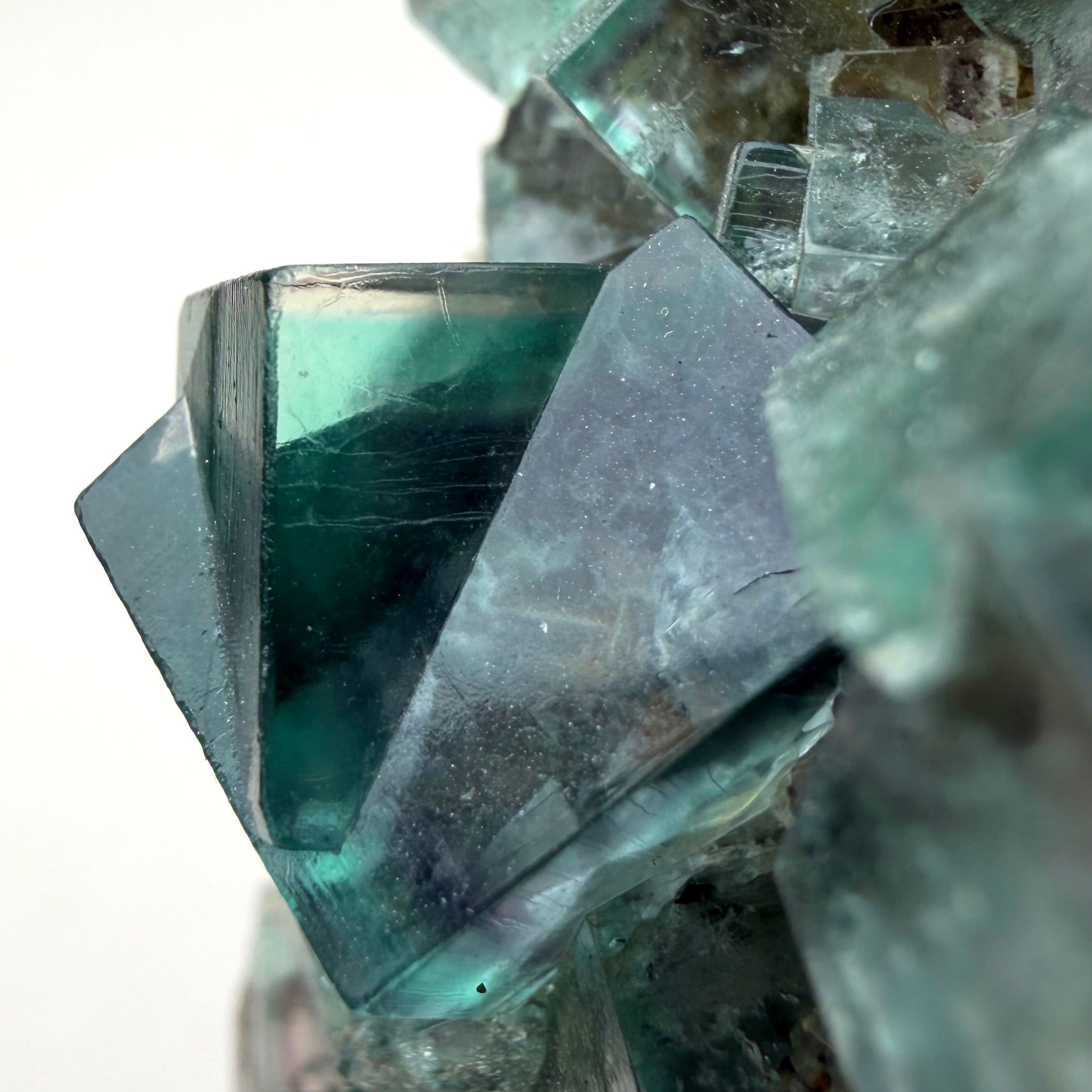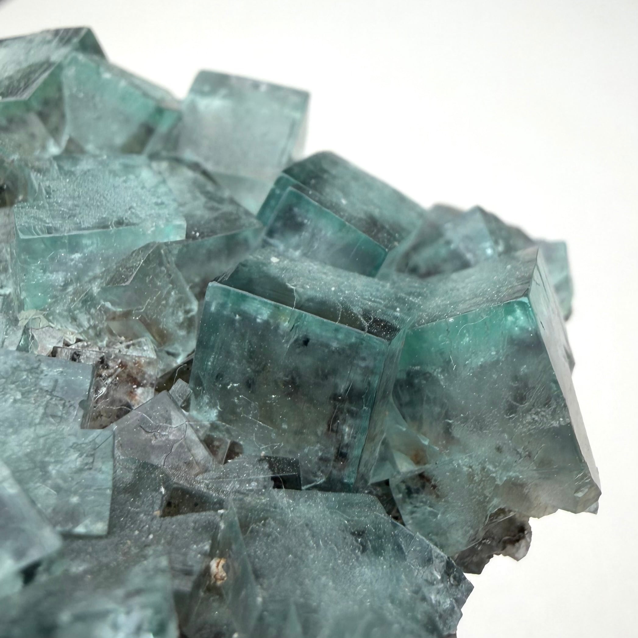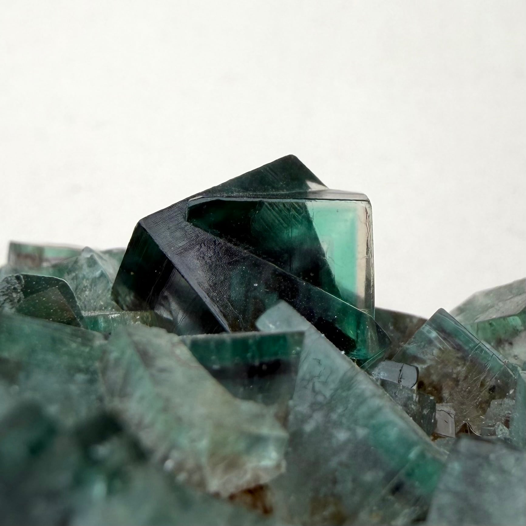 サイズ感のあるメイン結晶を中心にしたクラスターで、その他の小さな標本は結晶の面や内部が白くなったものが多い反面、Blue Circle Cement Quarryの、しっかりと大きいクラスター標本は中々見かけないため、そう言った意味でも魅力的な標本です。