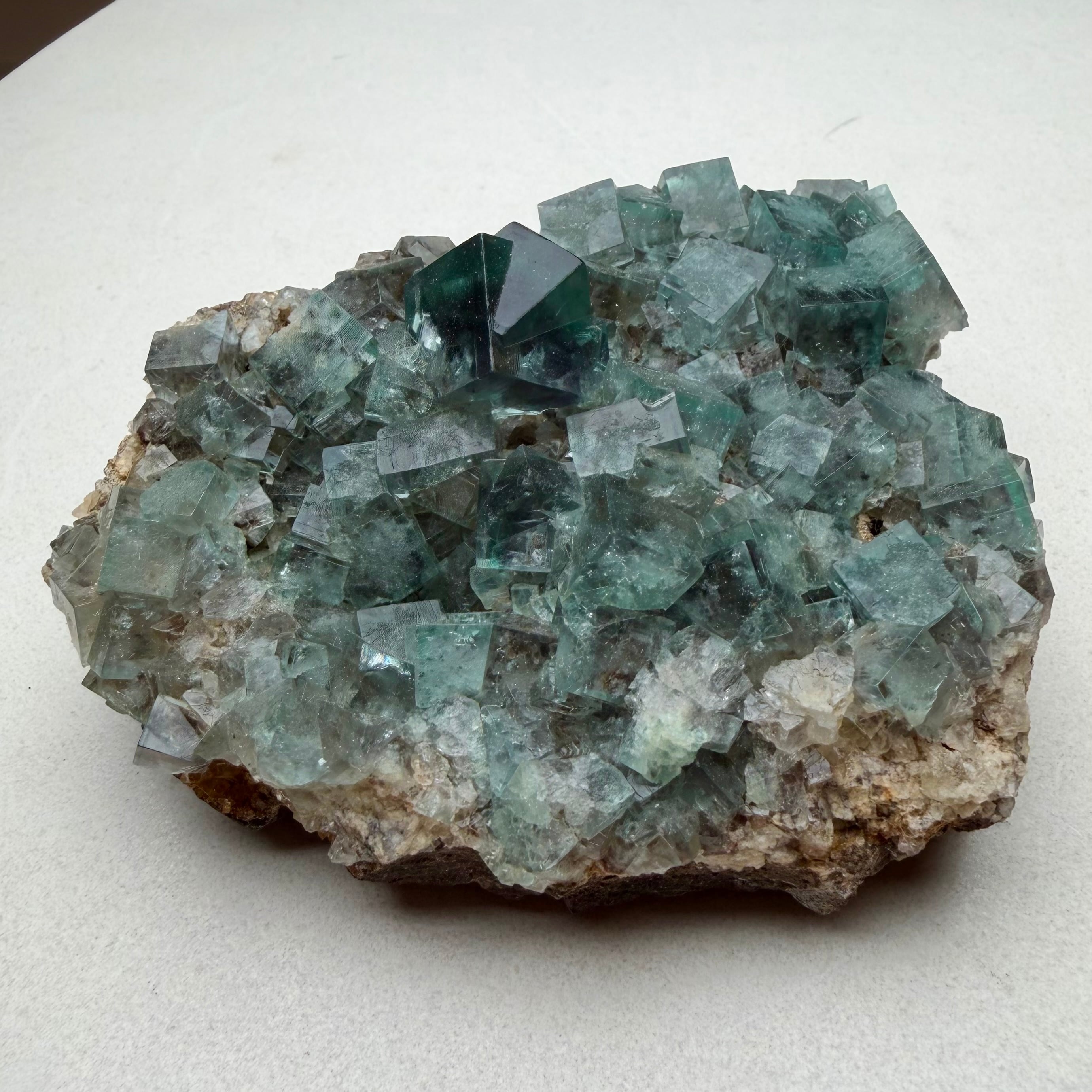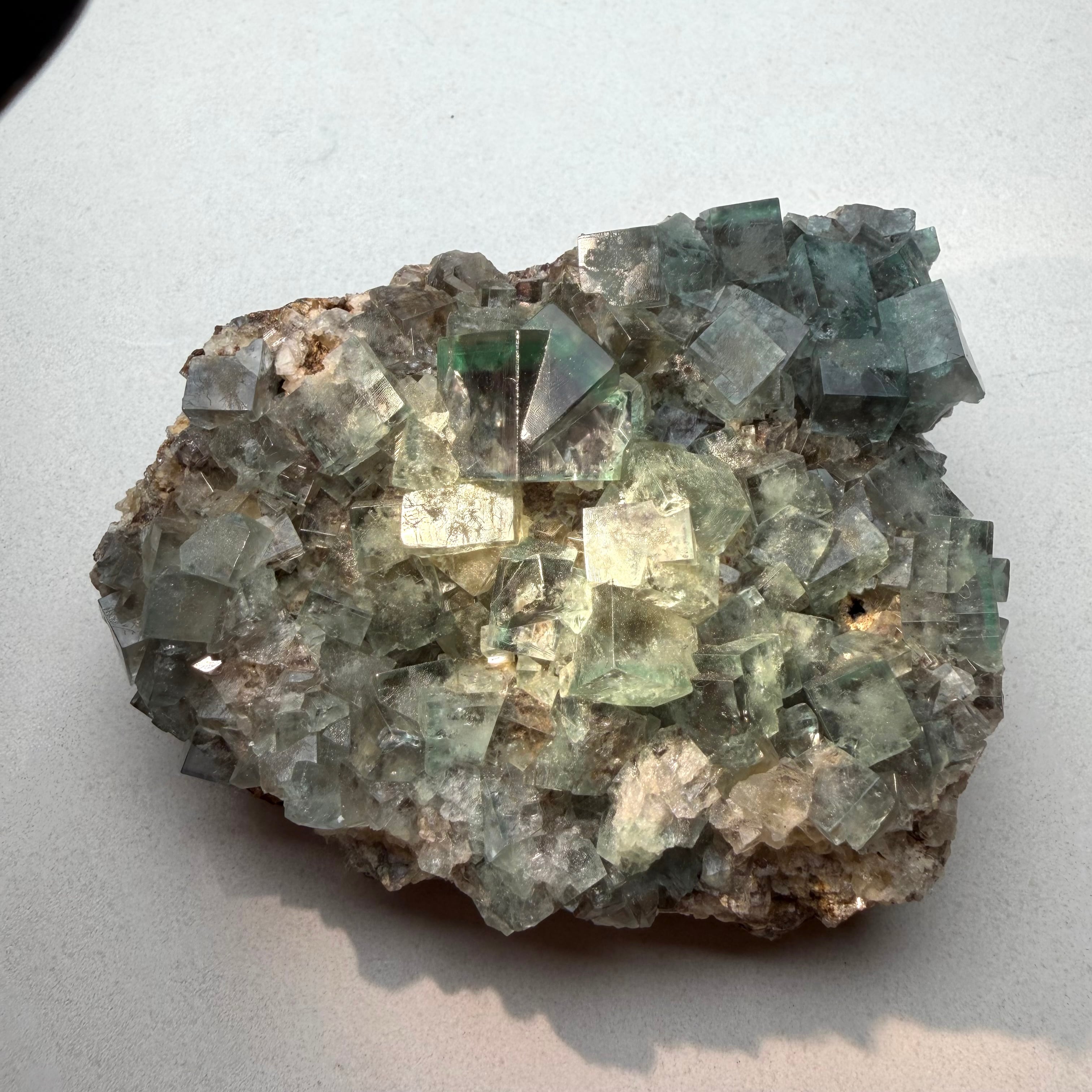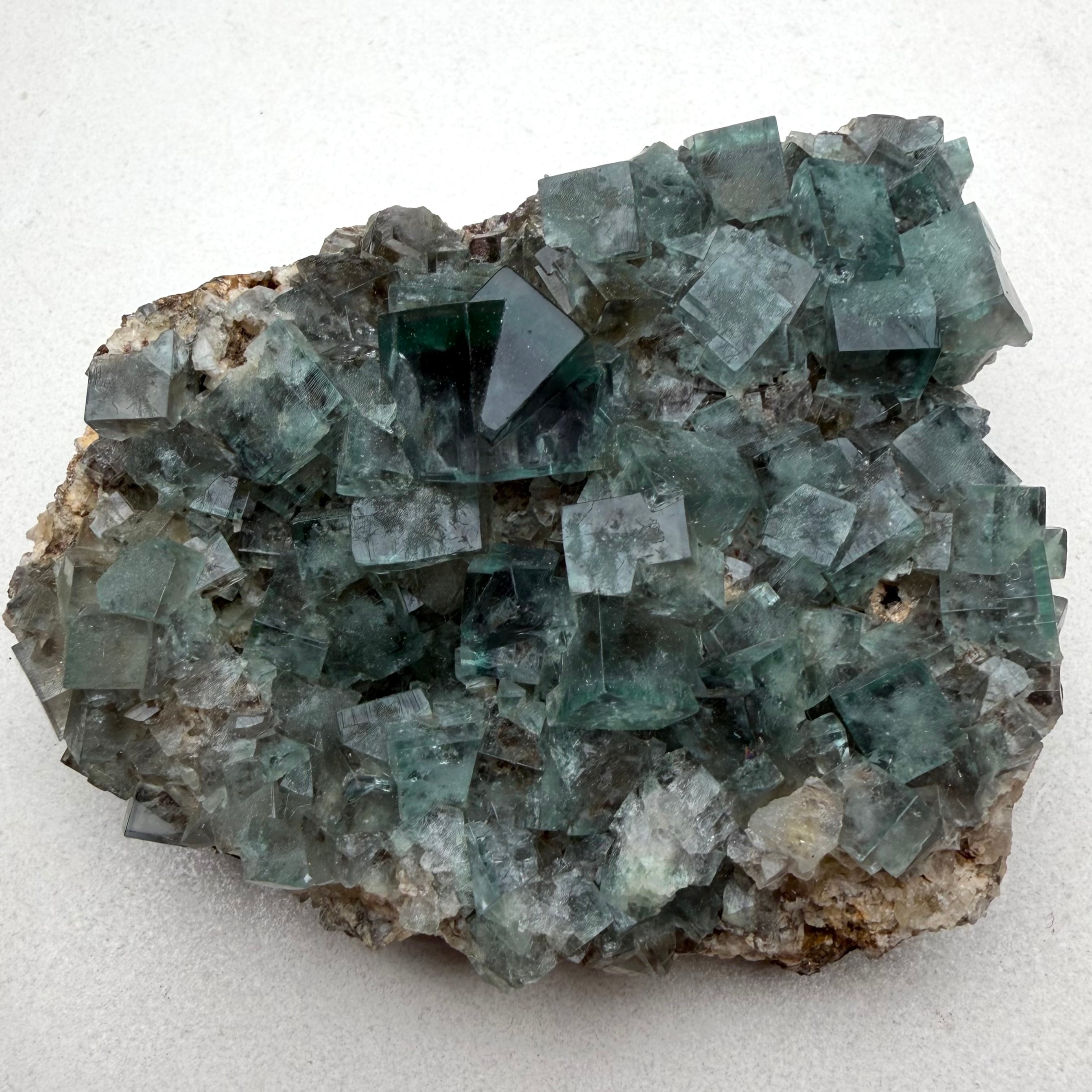 イングランド、Blue Circle Cement Quarryで産したグリーンフローライトのクラスター標本です。