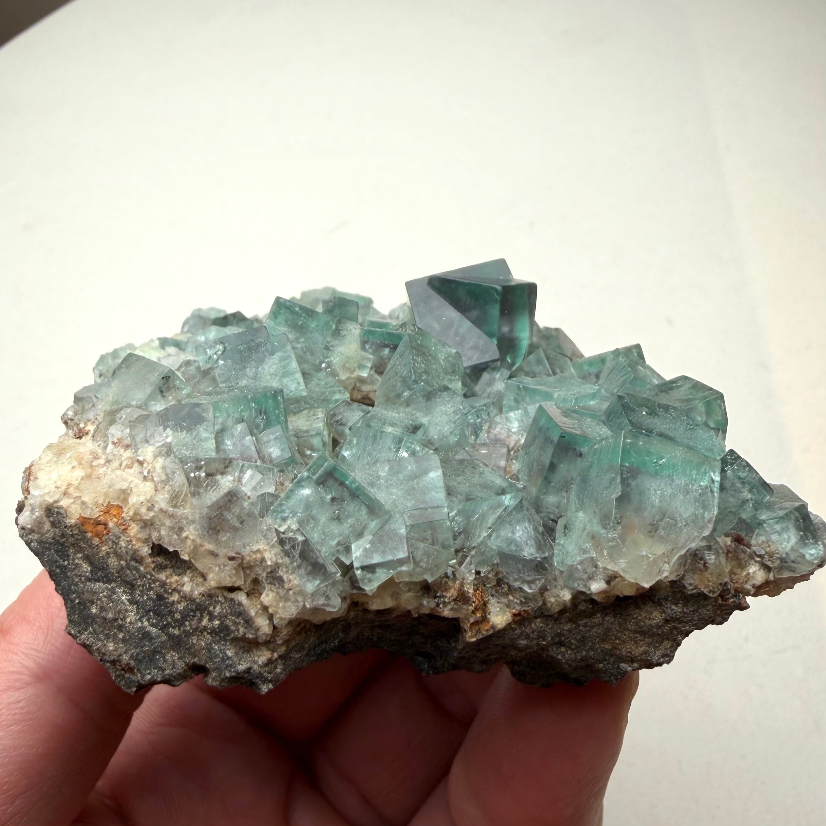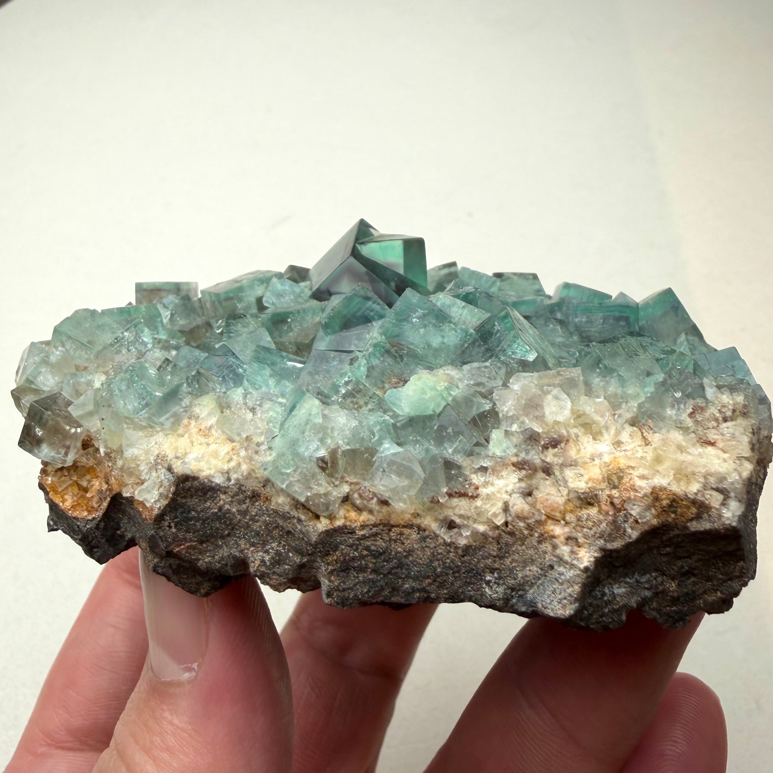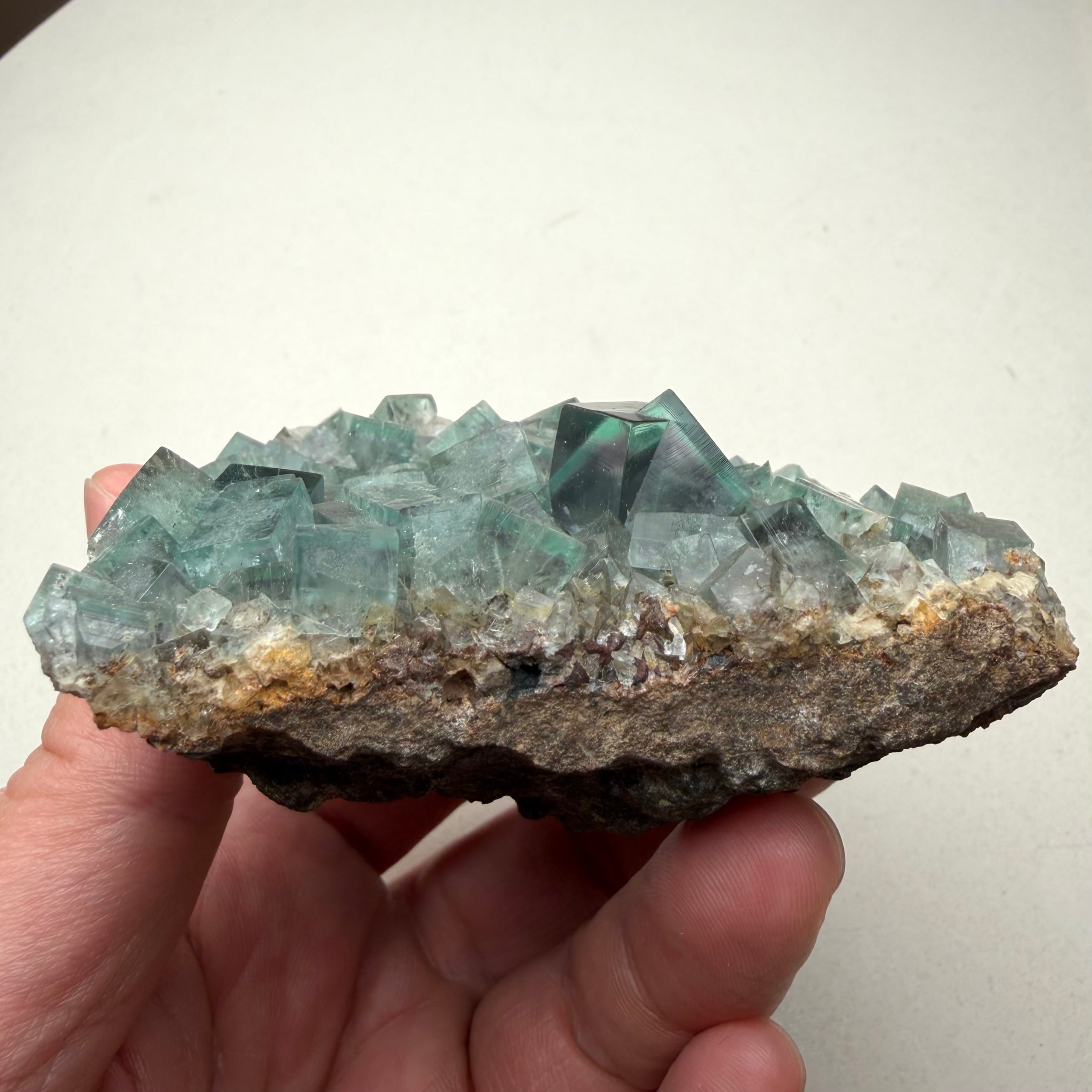 イングランド、Blue Circle Cement Quarryで産したグリーンフローライトのクラスター標本です。