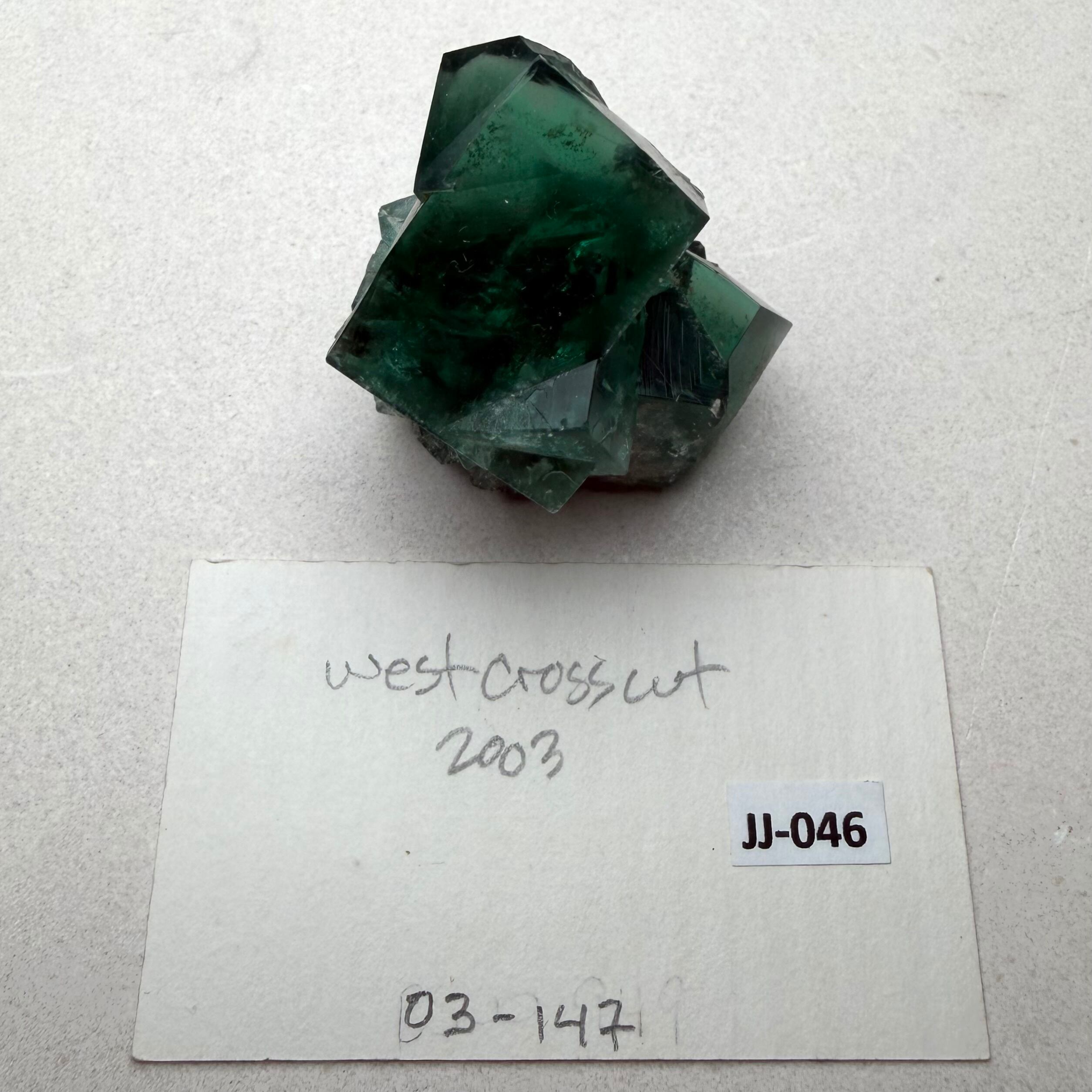 2003年に産出した記録が残る標本で、濃いグリーンと美結晶で知られたWest Crosscut areaで産したものになります。