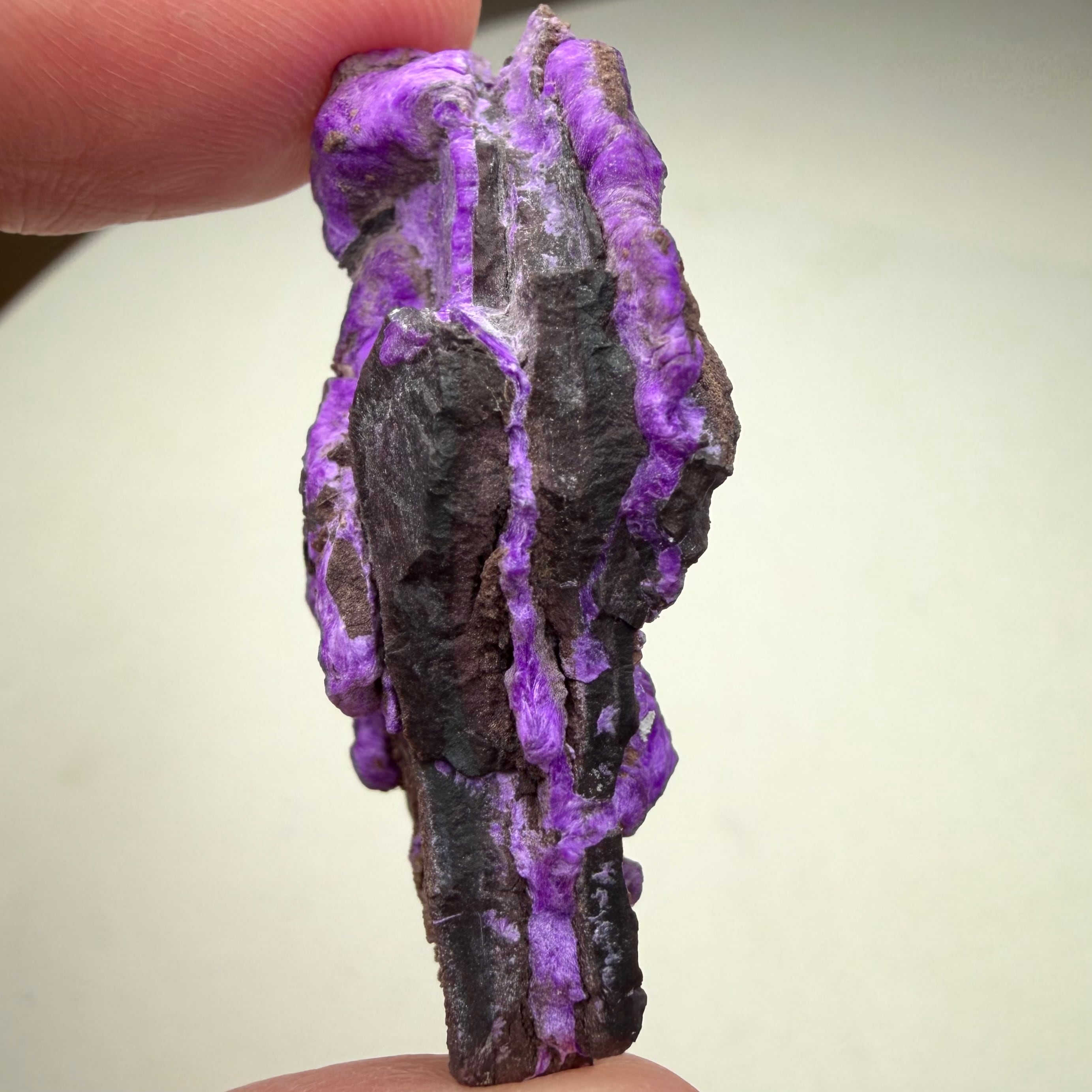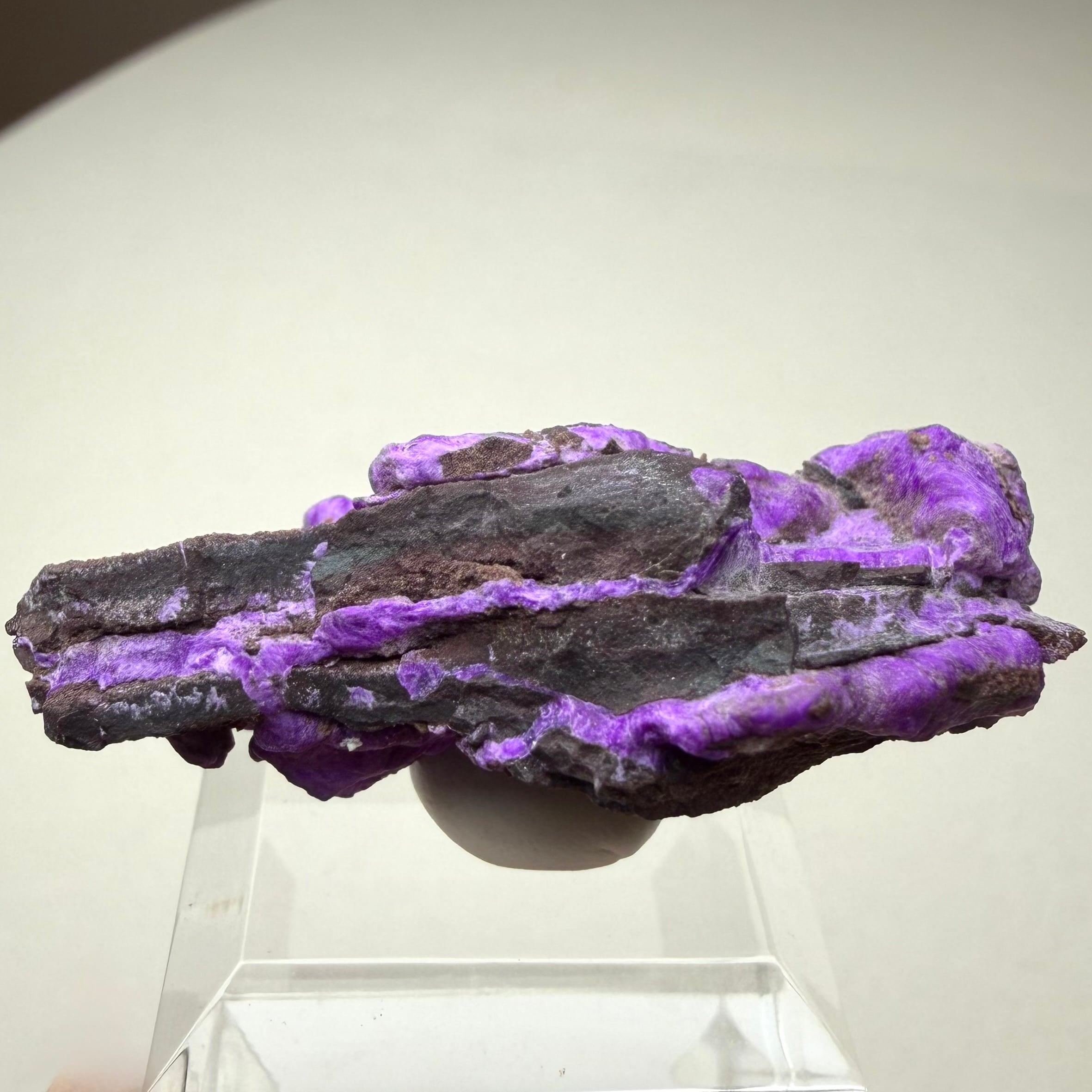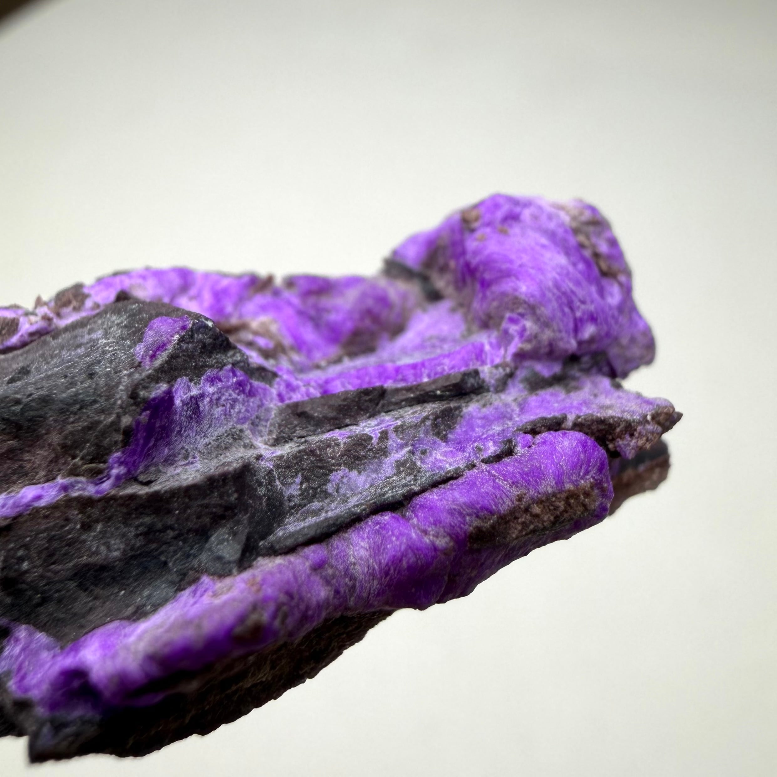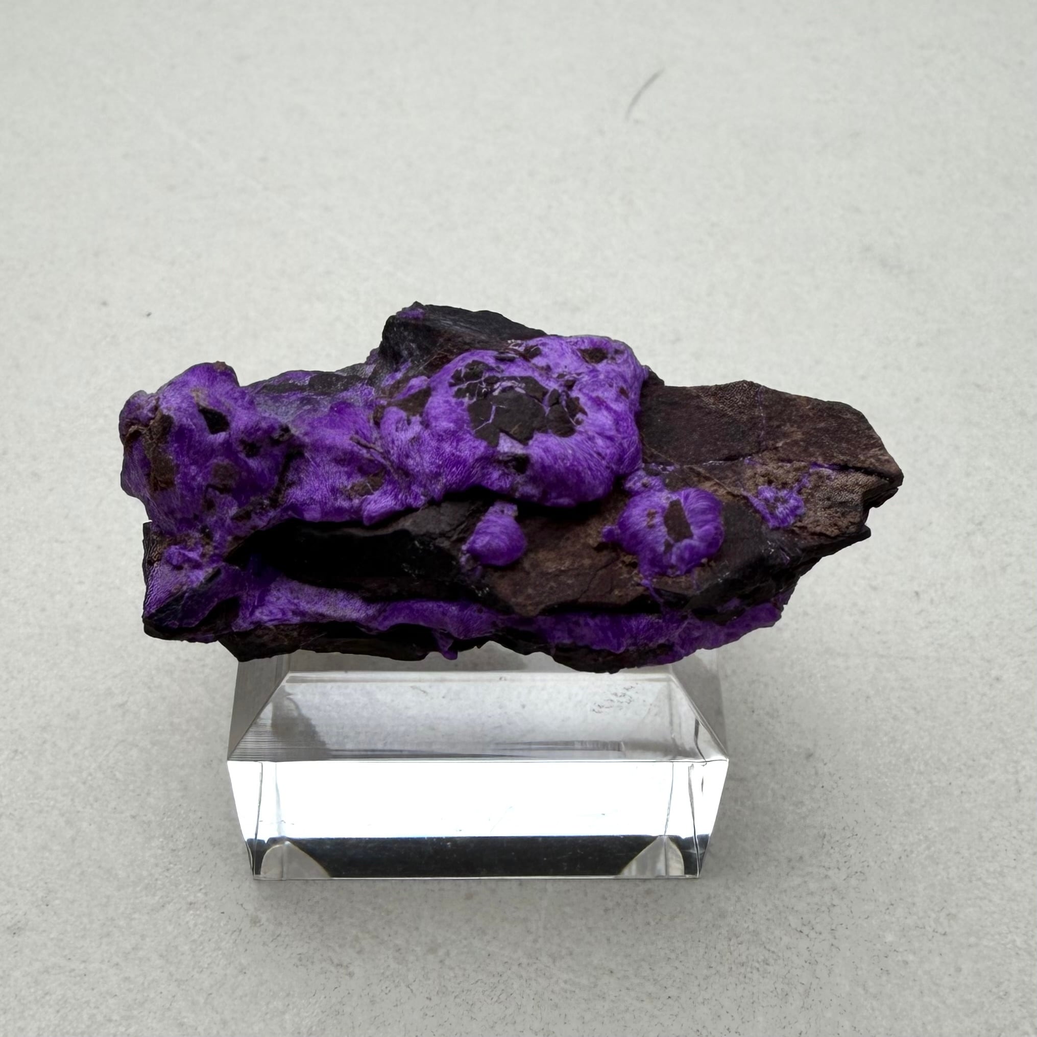 濃いネオンパープルが印象的な、南アフリカ、N'Chwaning Mineで産したスギライトです。
