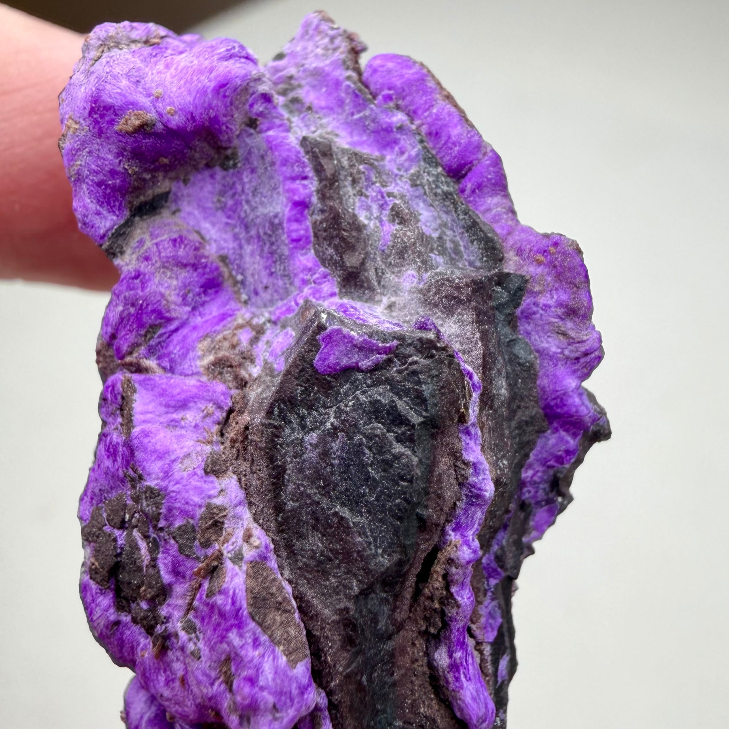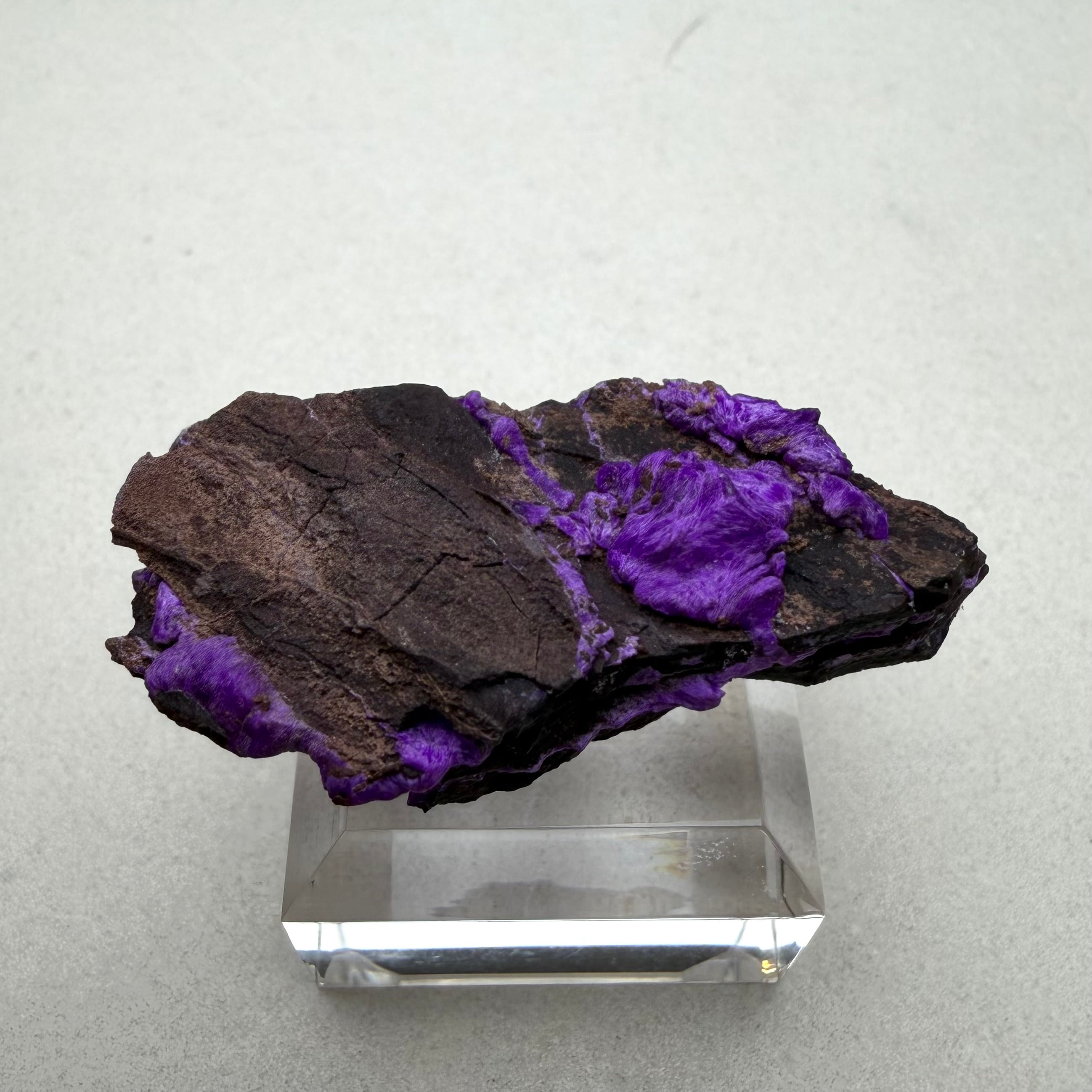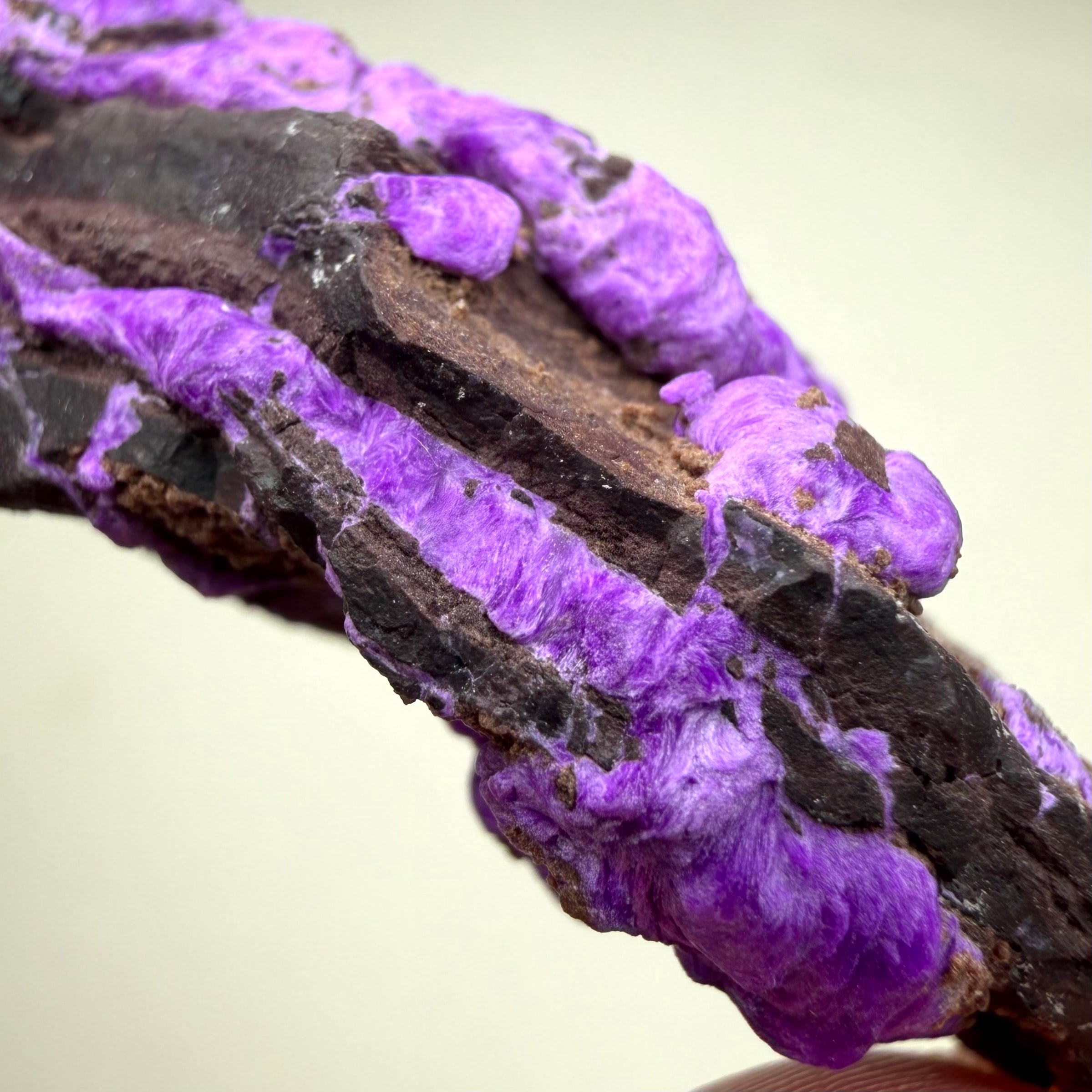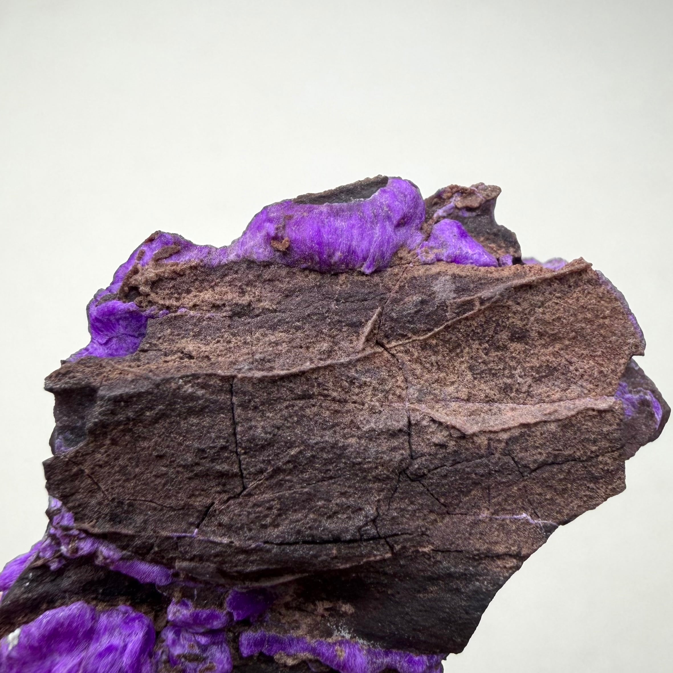 濃いネオンパープルが印象的な、南アフリカ、N'Chwaning Mineで産したスギライトです。