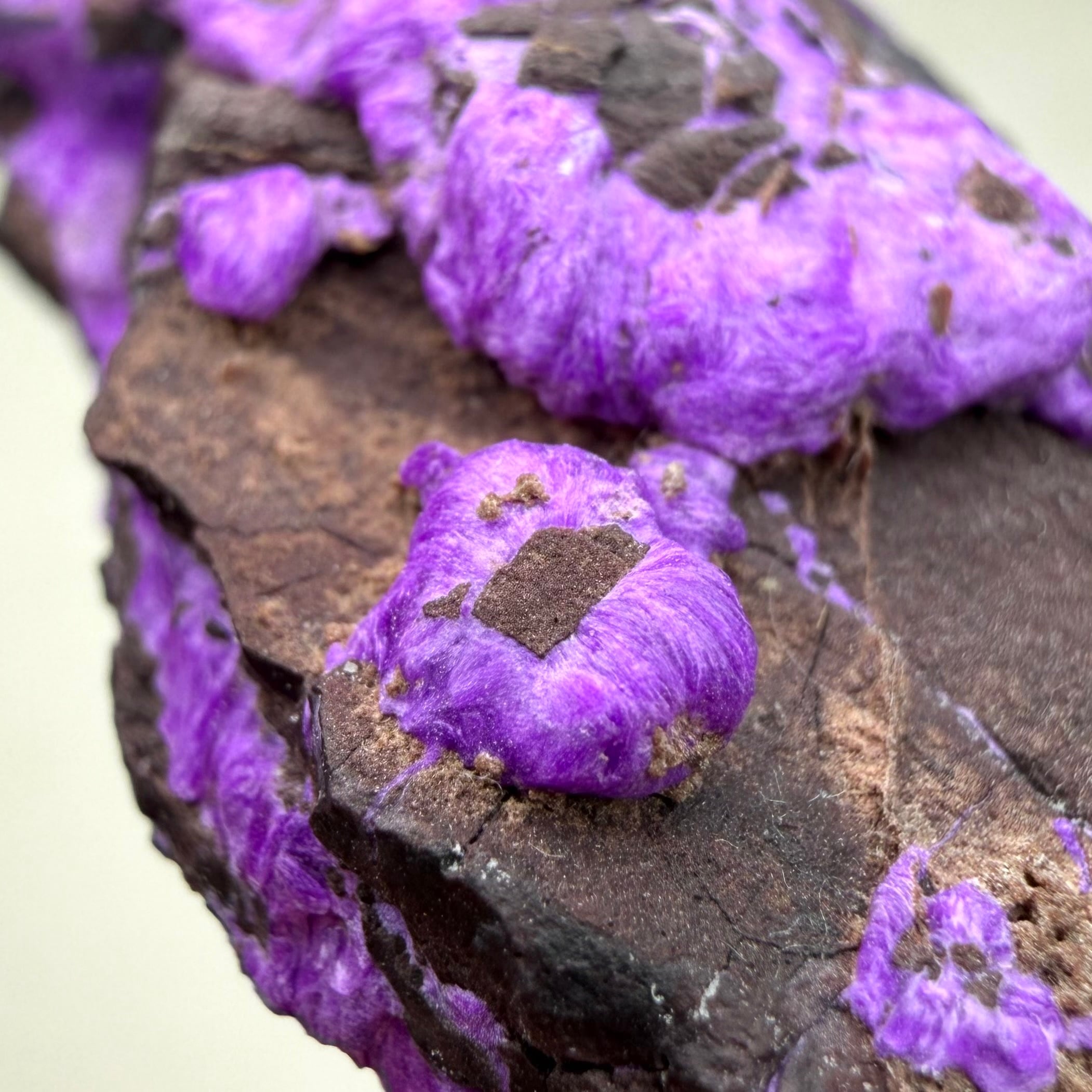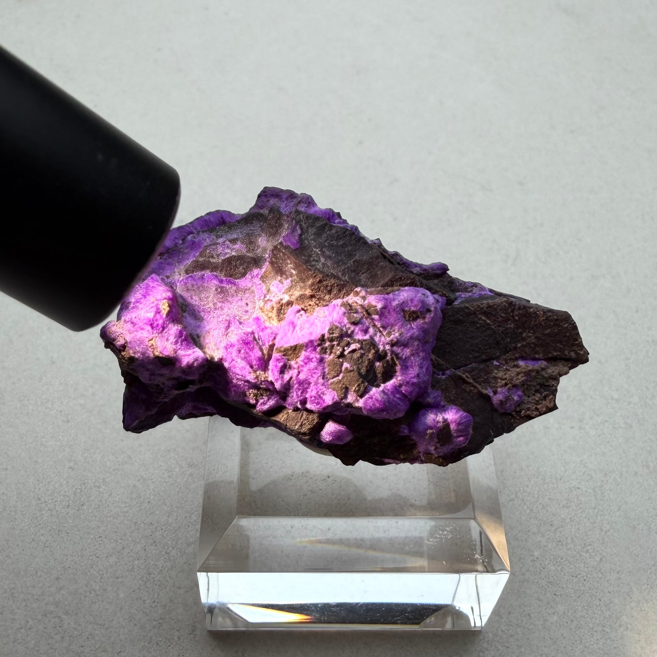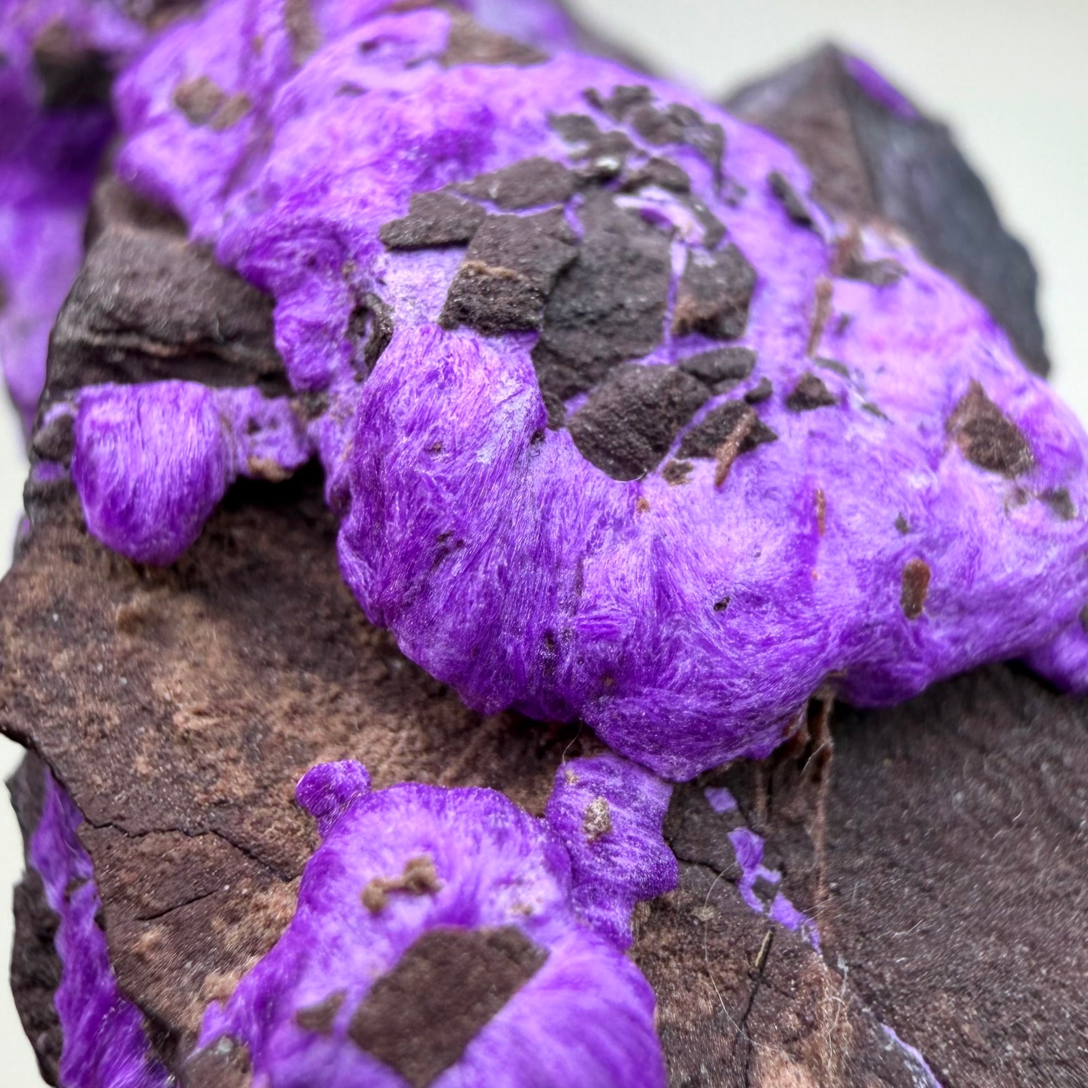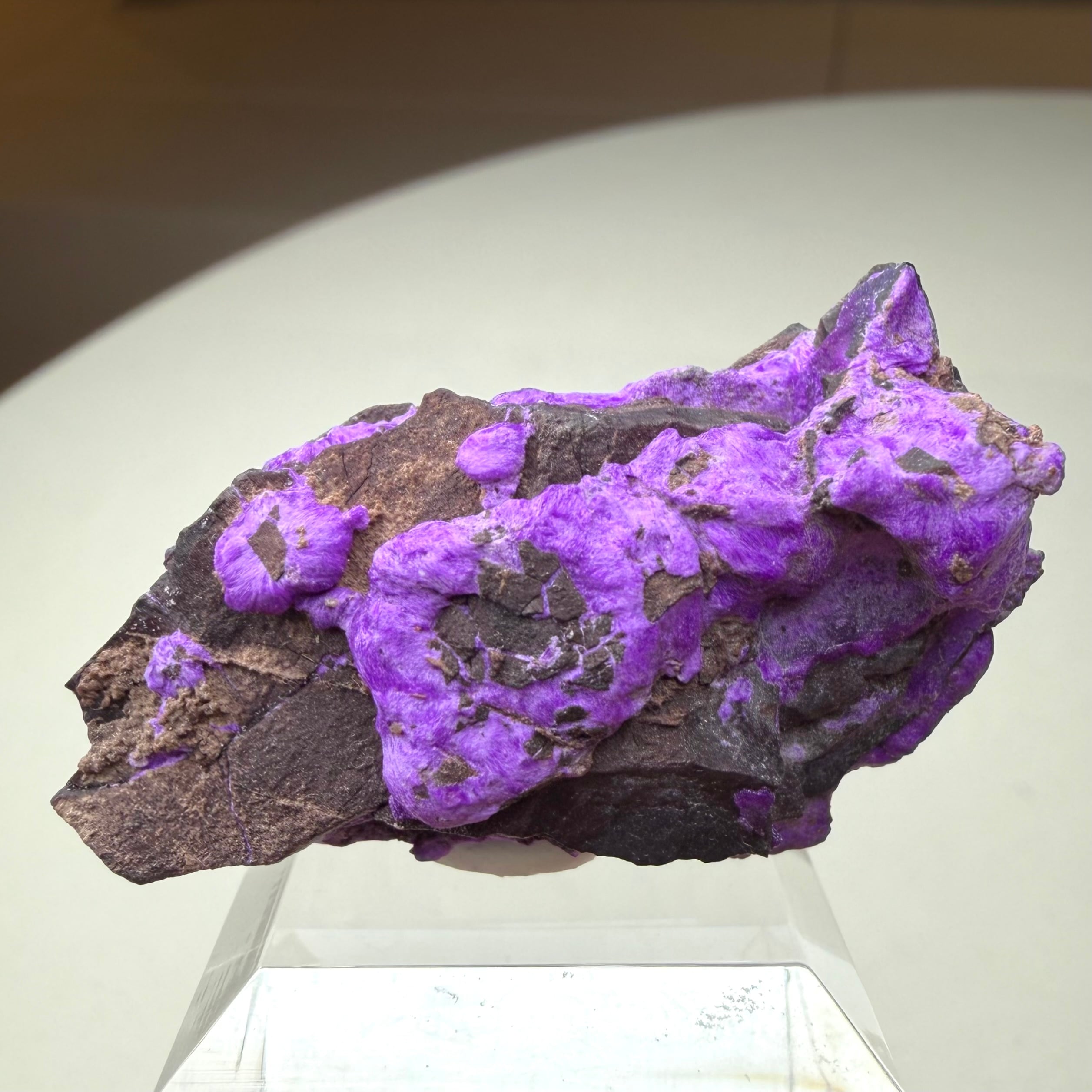 濃いネオンパープルが印象的な、南アフリカ、N'Chwaning Mineで産したスギライトです。