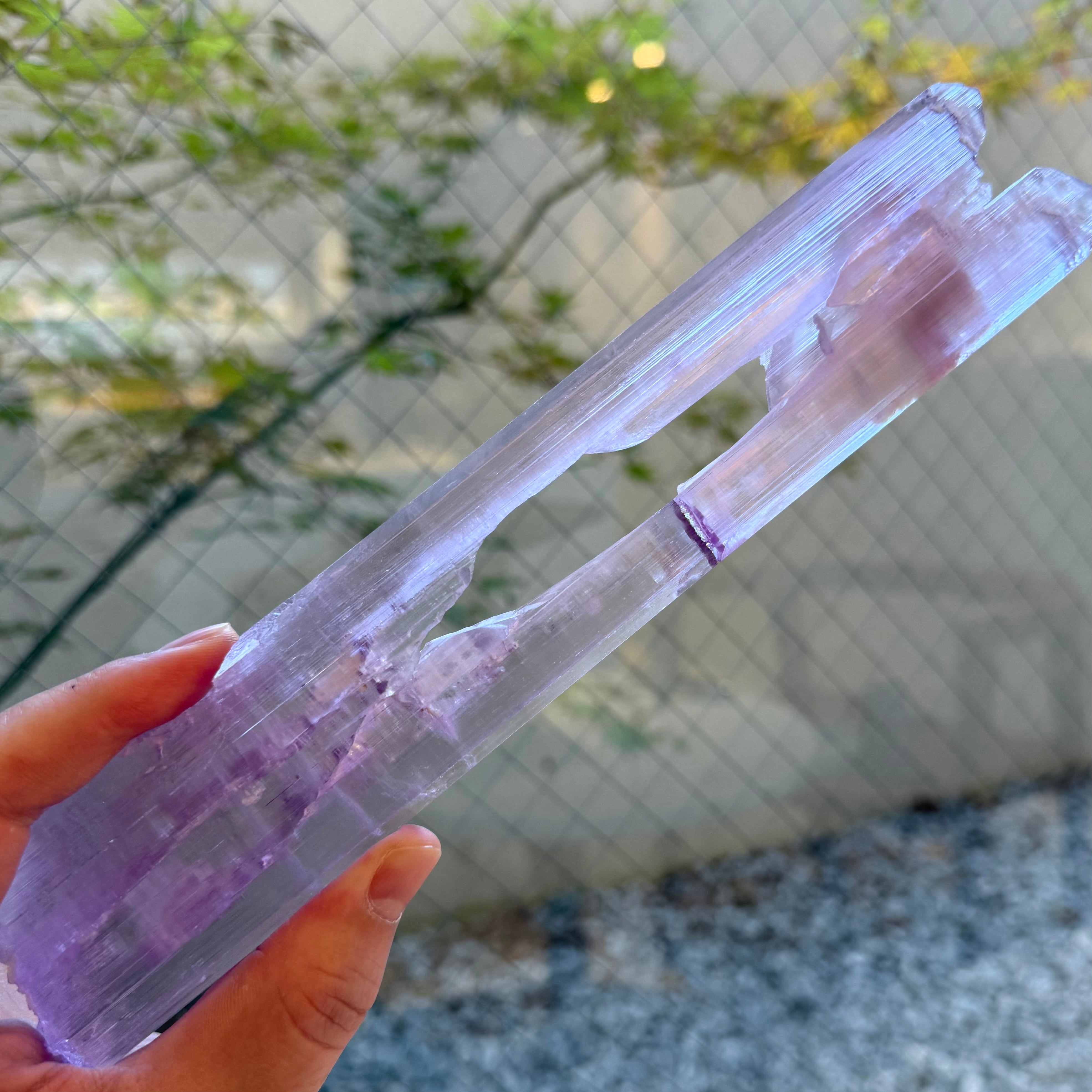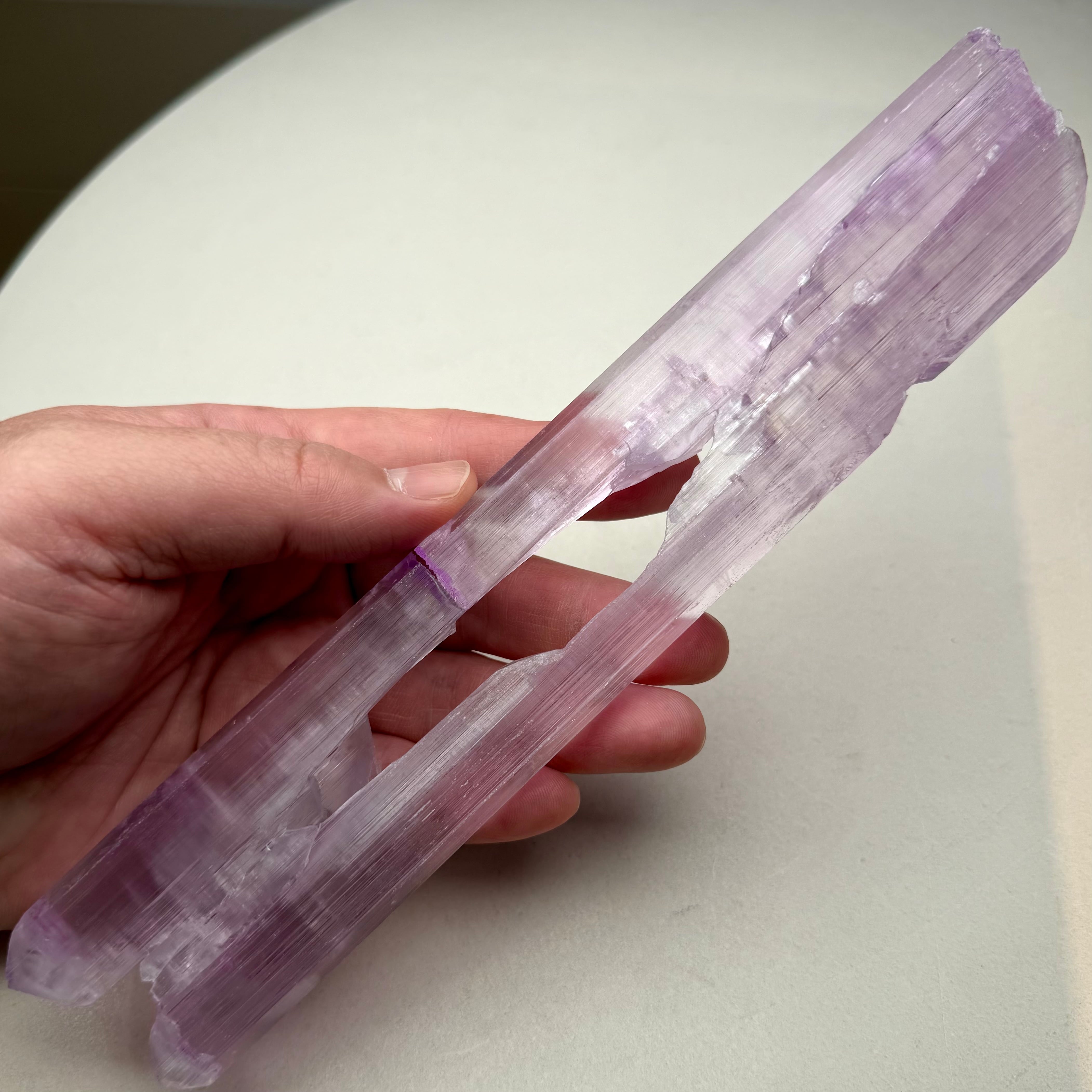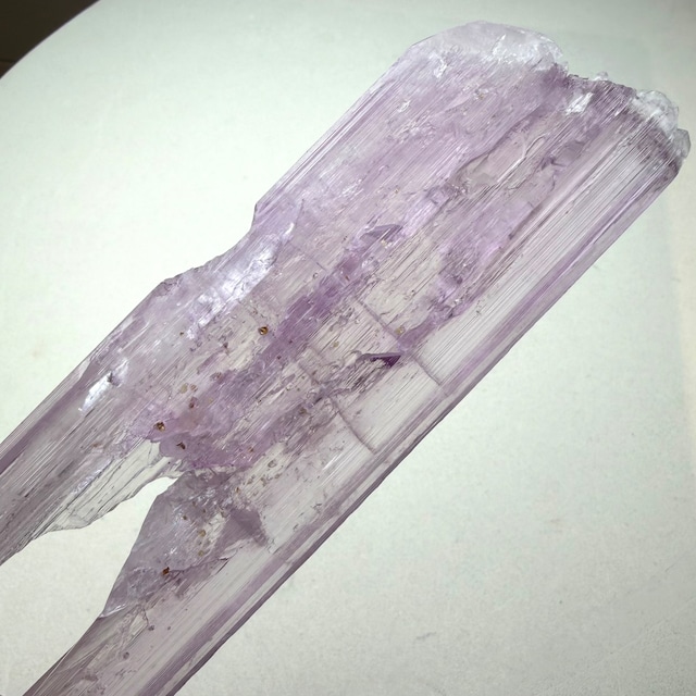 クンツァイトの標本、インパクトのあるサイズ感が一番の特徴で、24センチ程の長さがあります。
