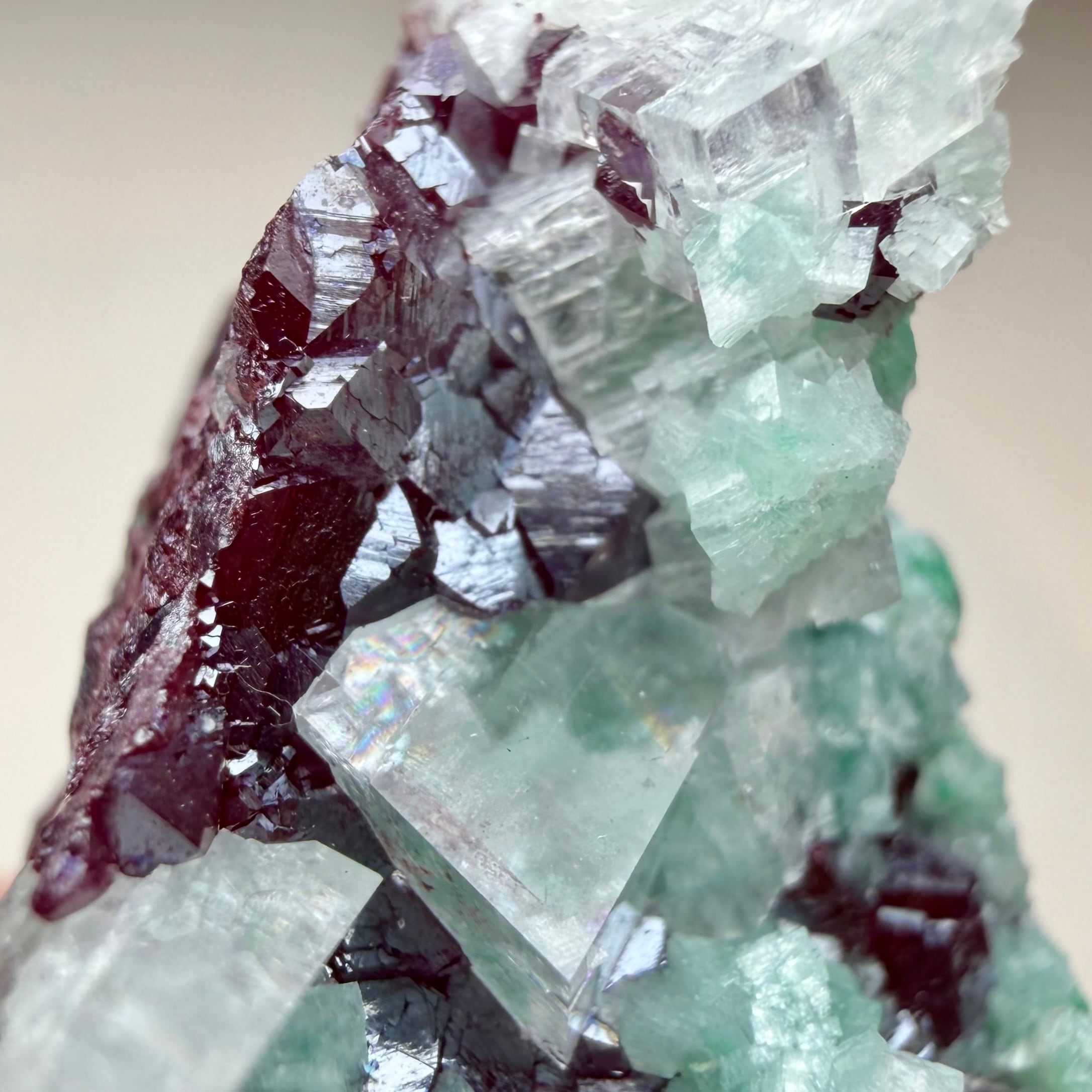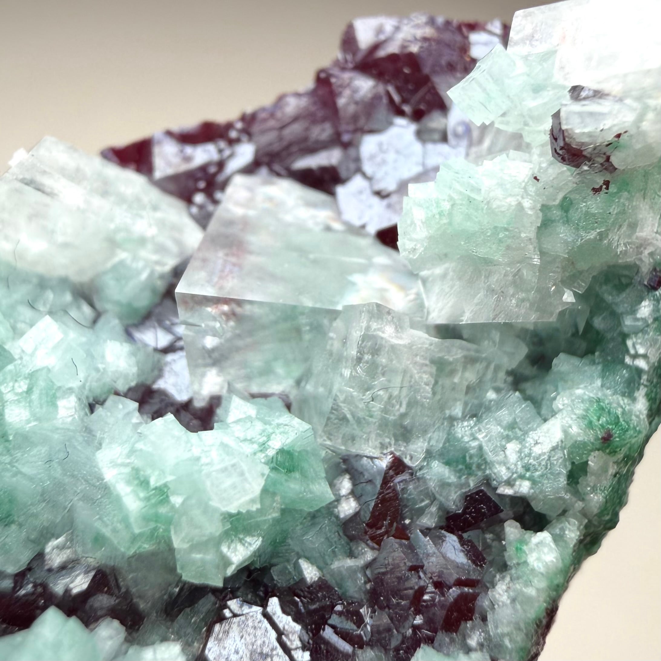 キュプライトはサイズ感がある分ダメージがあり透明感も程々ですが、強い透過光下では透け感と鮮やかな赤色の発色が確認できます。