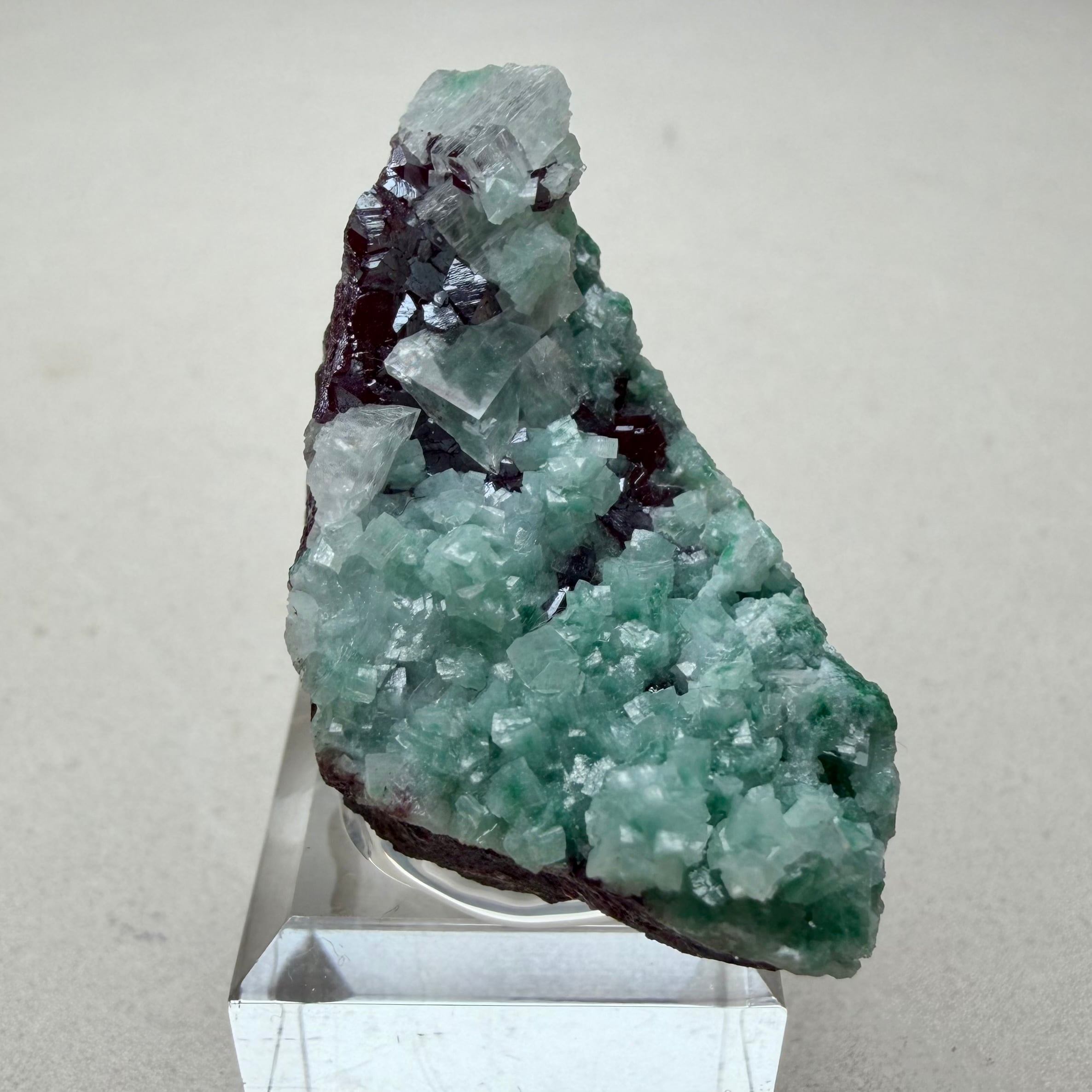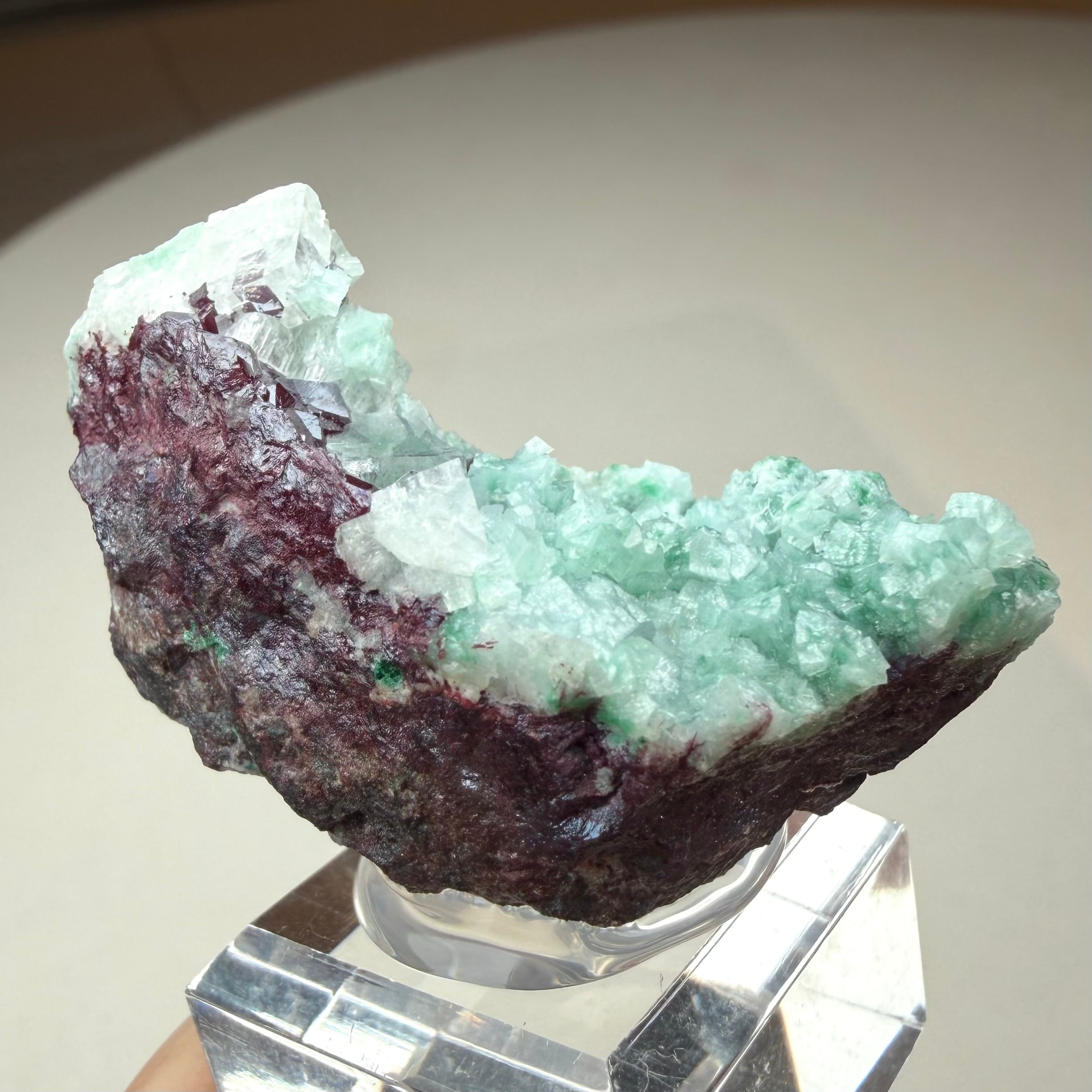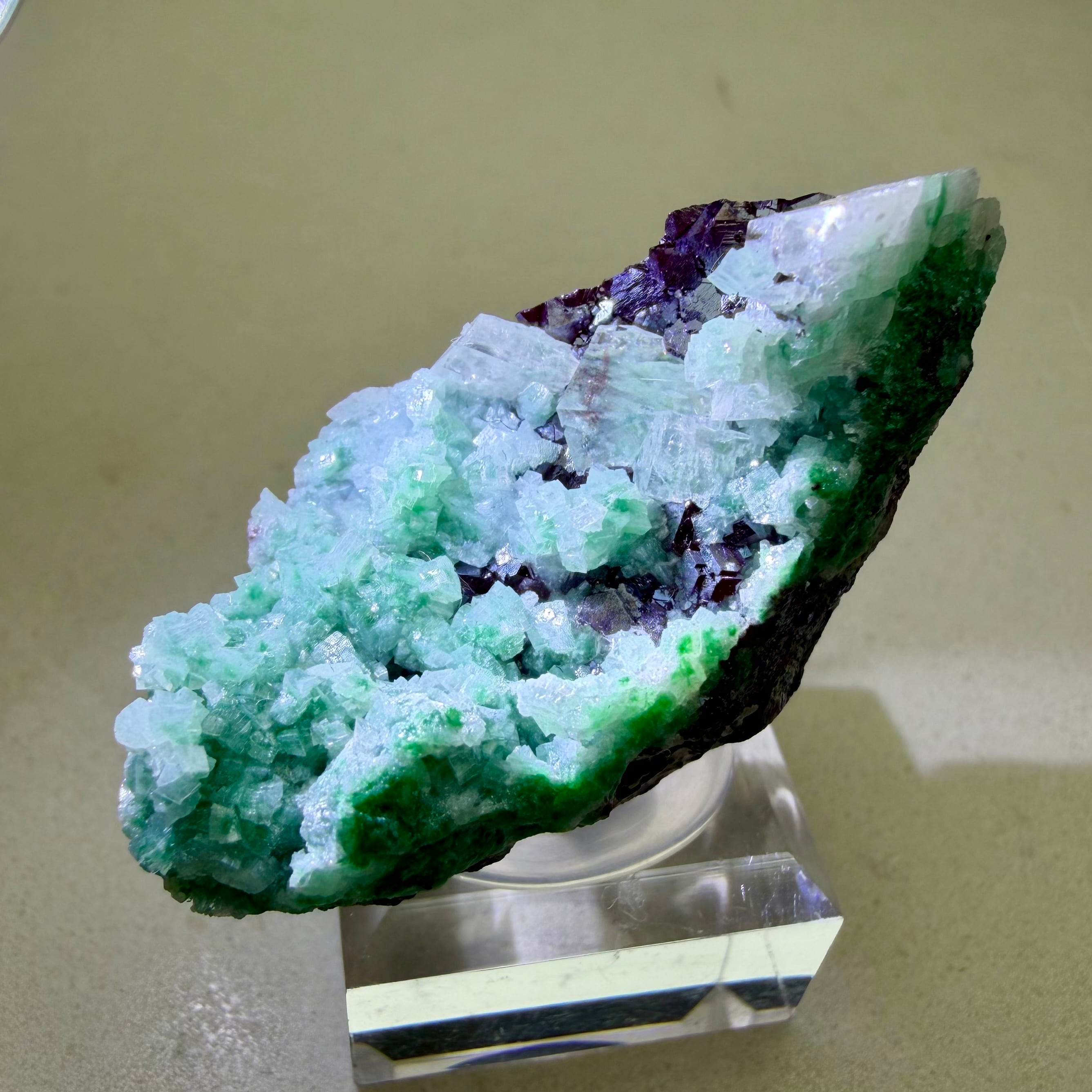 カルサイトはマラカイトを内包するものが多く、グリーンカルサイトの様相を呈しています。