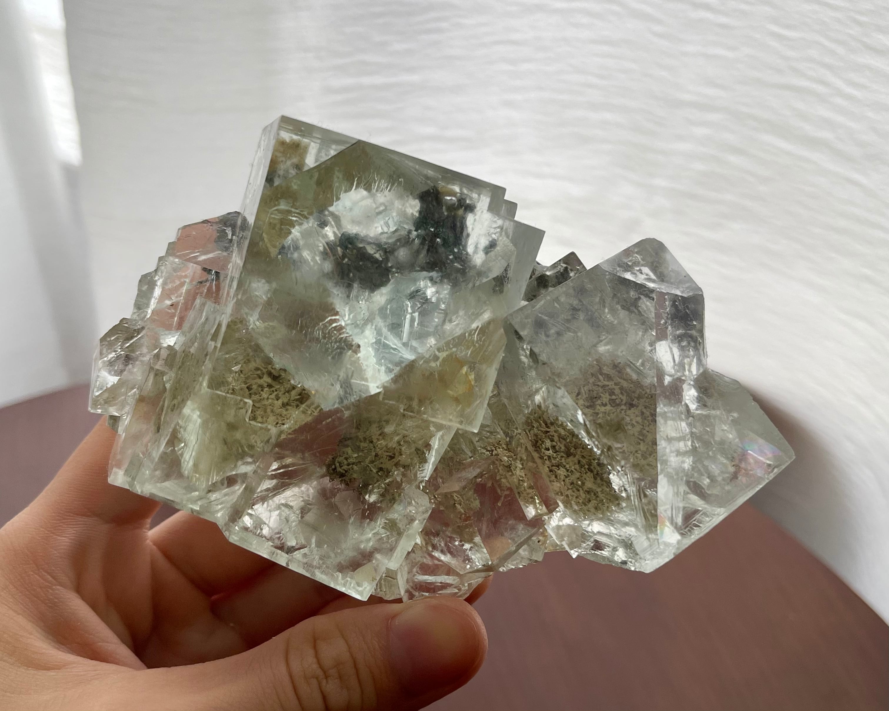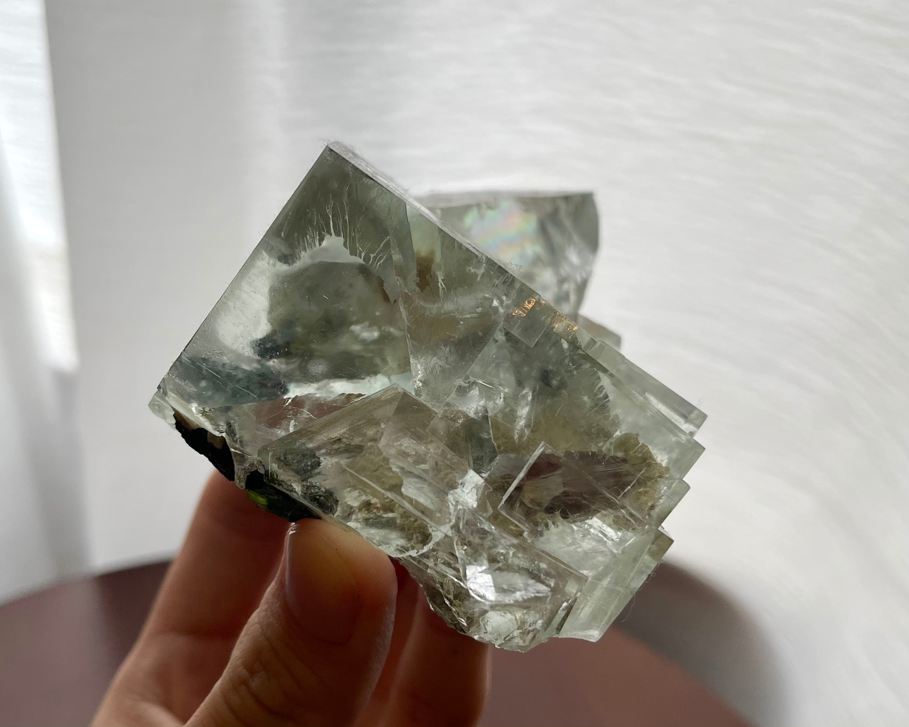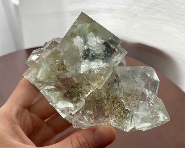 非常に淡いグリーンの入る、ニアカラーレスと言っても良いようなロシア産のフローライトです。