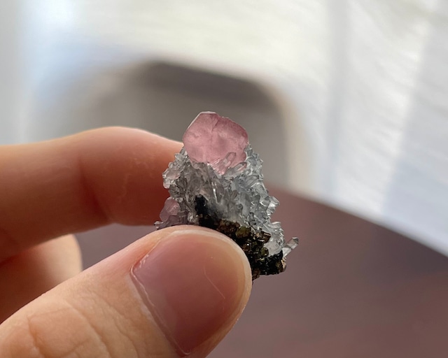 ロードクロサイト / フローロアパタイト / クォーツ【Rhodochrosite with Fluorapatite on Quartz】中国産