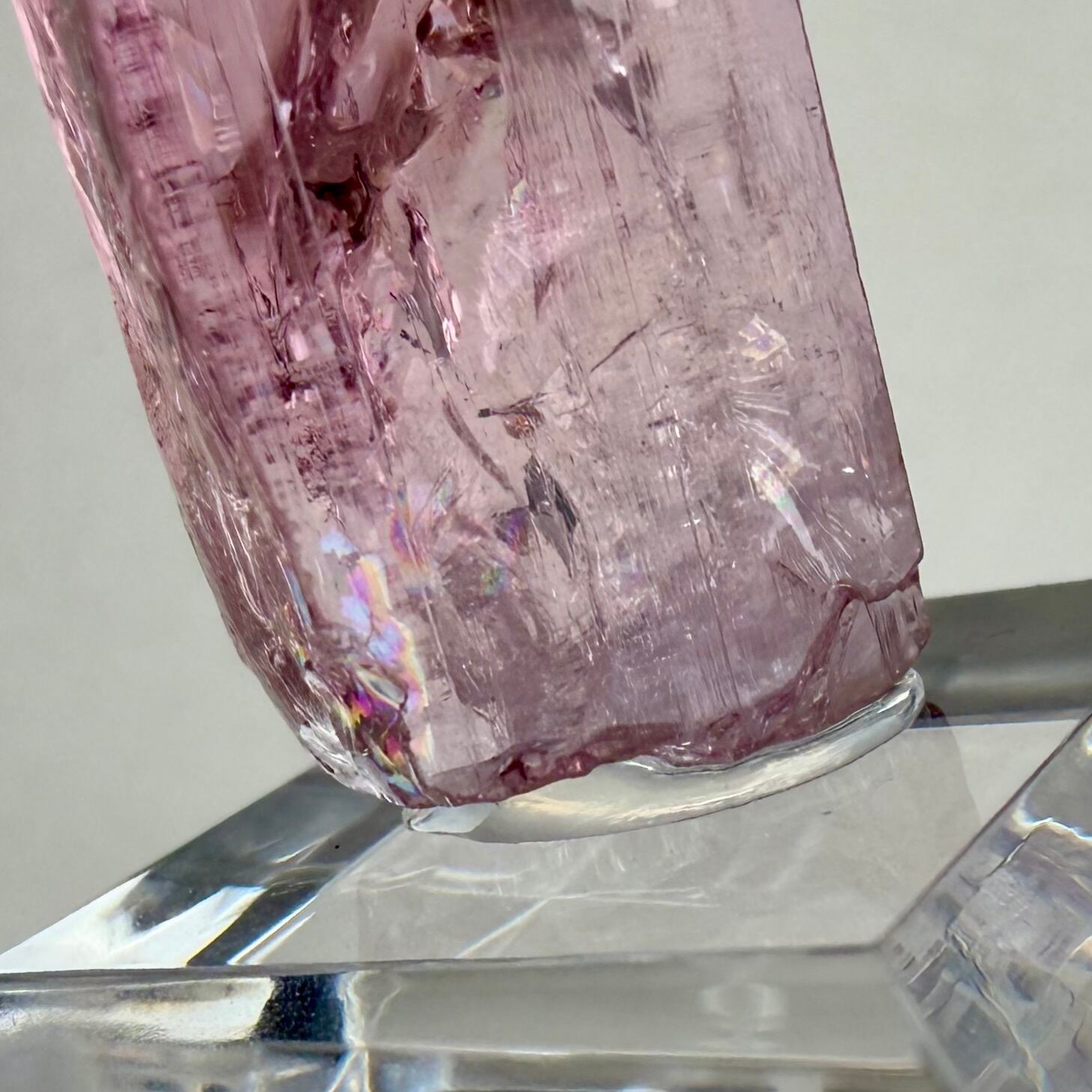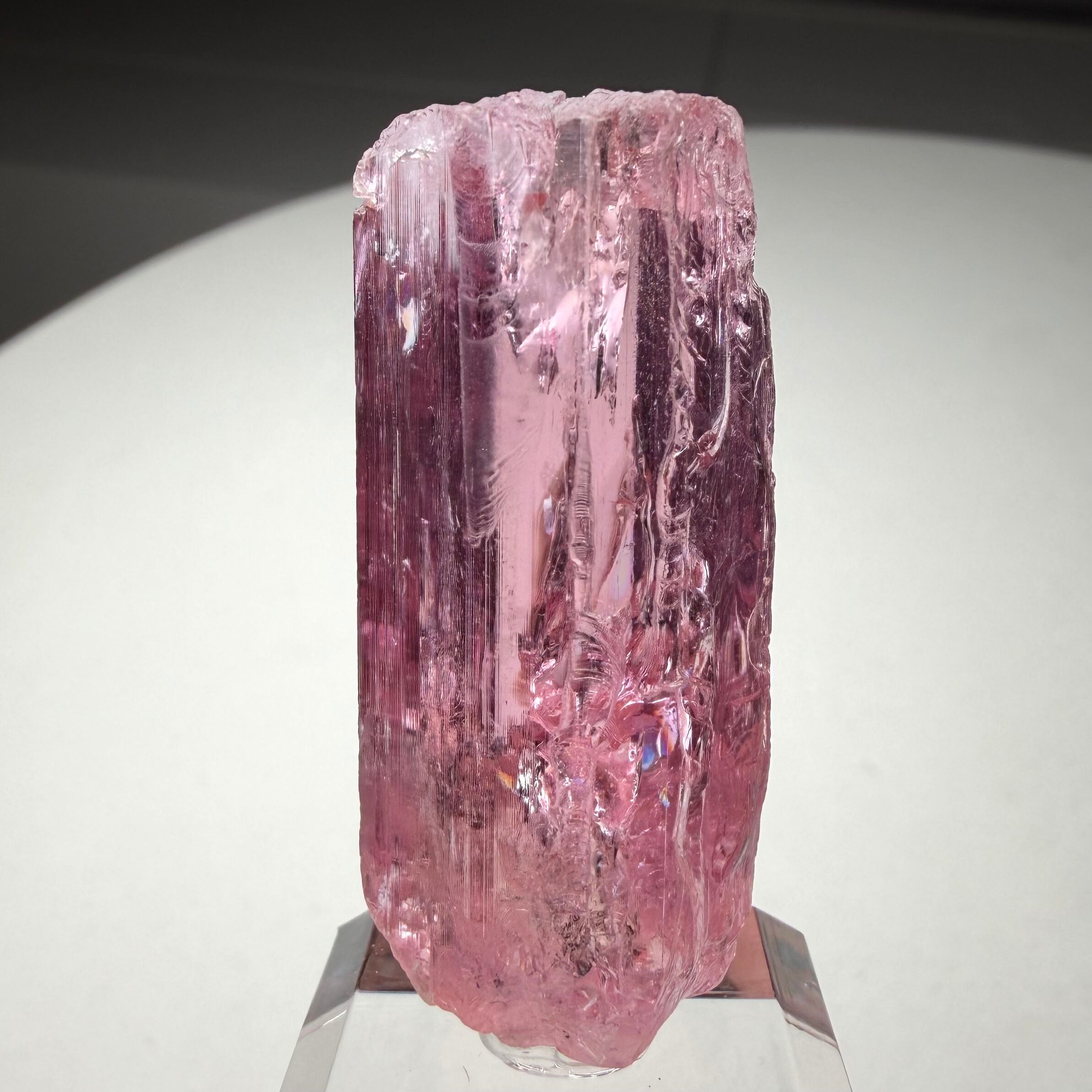 ネオンピンクの発色は、光源を問わず美しく、また光源の具合でその濃淡が変わりますが、何れにしても素晴らしい発色を維持する結晶で、透明感と強いテリ感も魅力的な良結晶です。