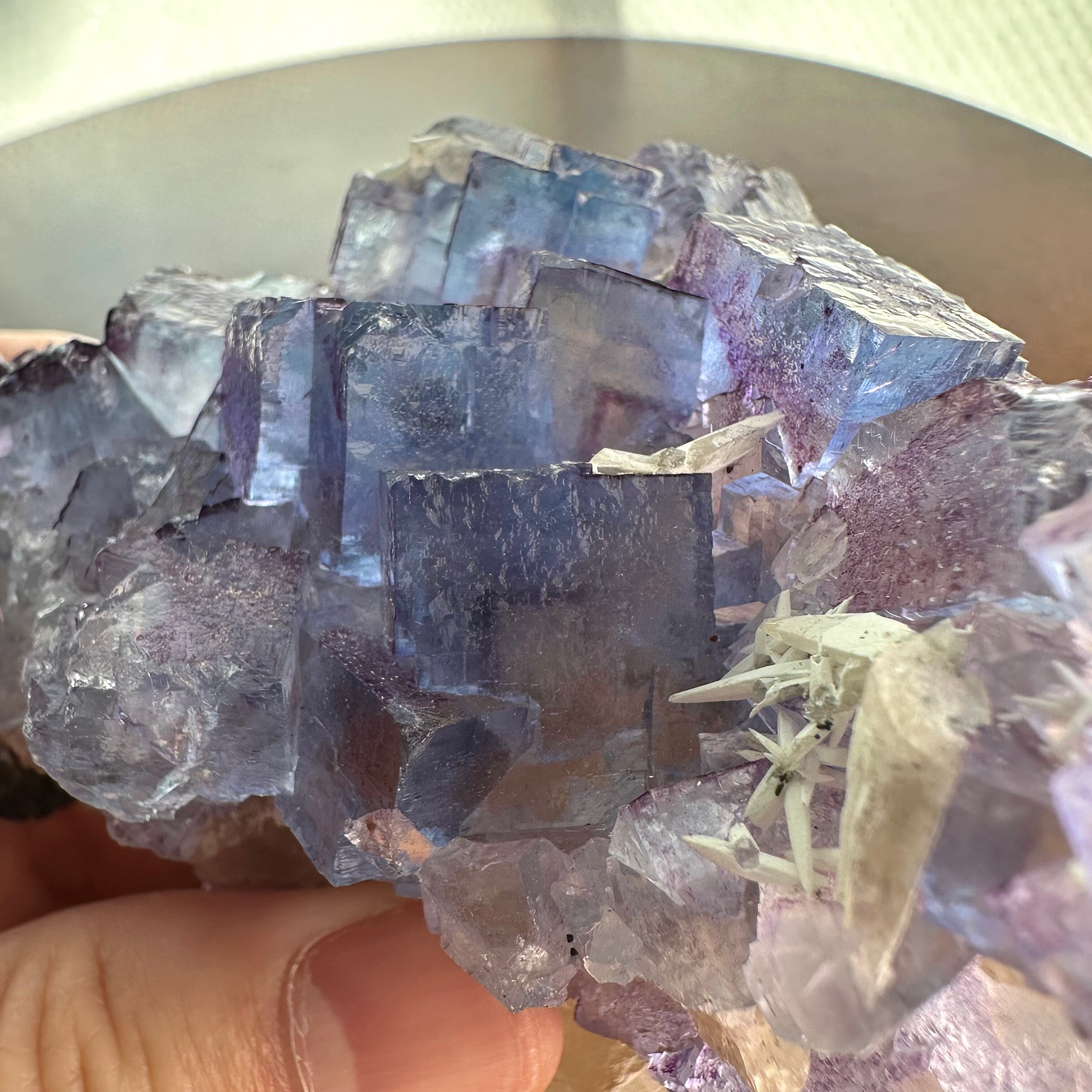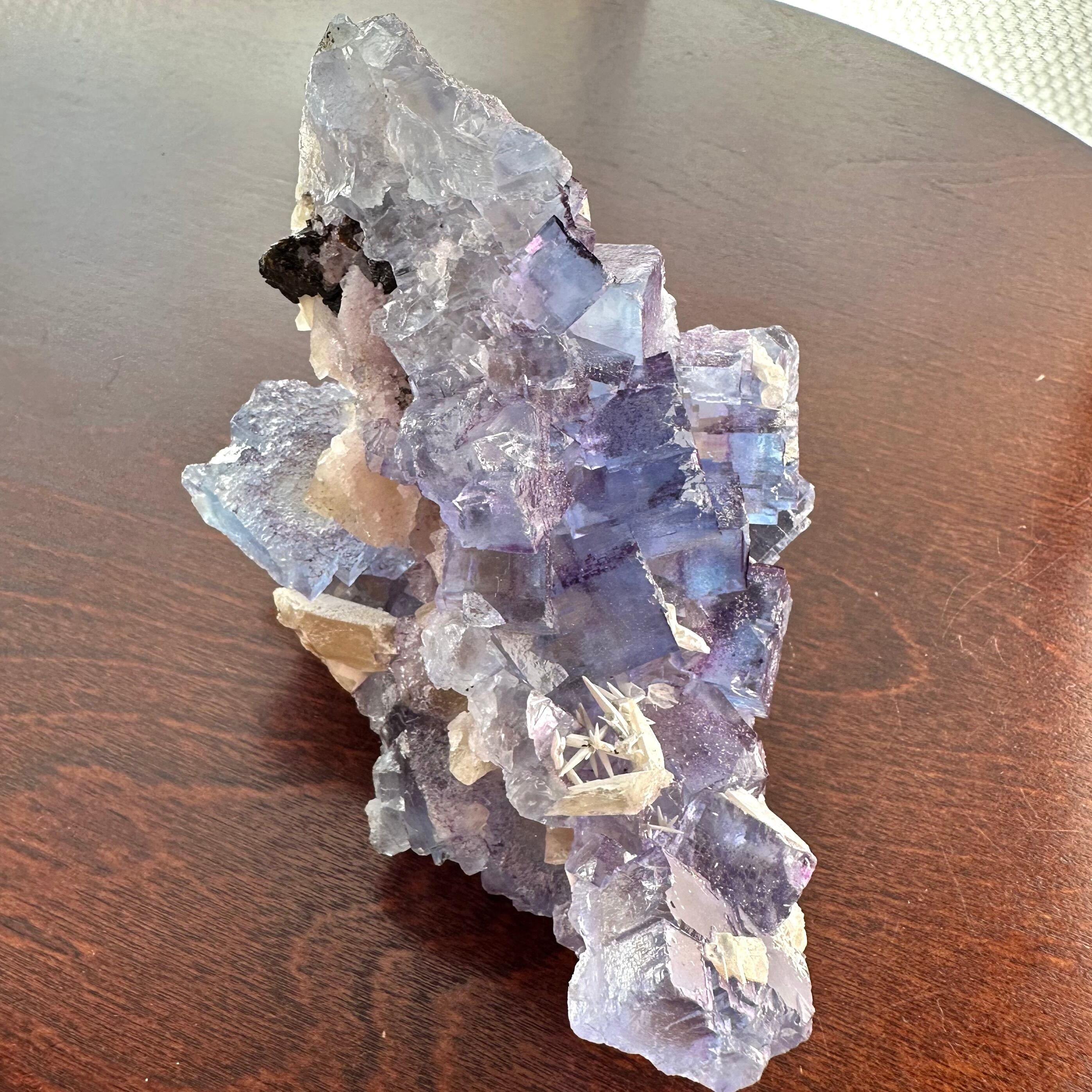 カルサイトやスファレライトとのコンビネーションが楽しめるイリノイのブルーフローライト、サイズにも優れた比較的大きめのクラスター標本です。