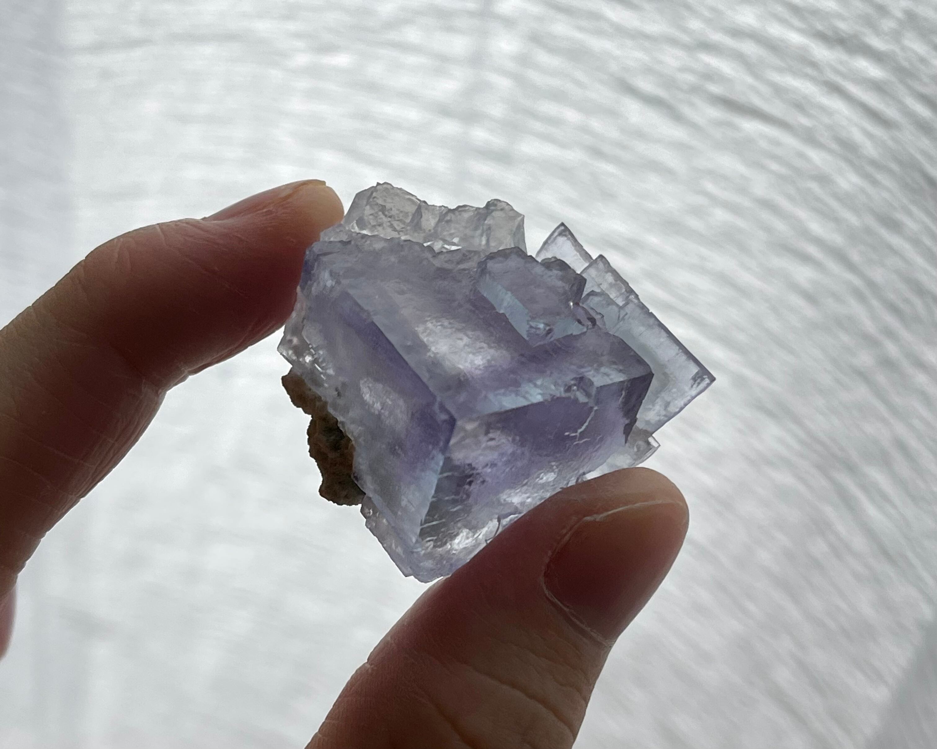 表層は色鮮やかなライトブルー、そしてパープルコアや濃くハッキリとしたパープルゾーニングと、それぞれどの色合いが美しいイリノイ産のフローライトです。