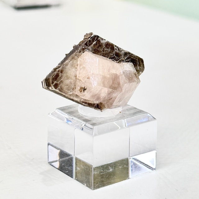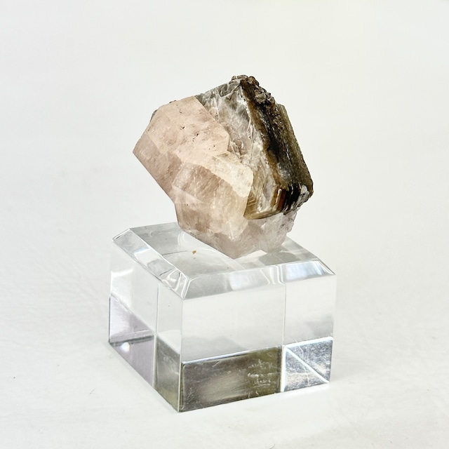 ピンクアパタイトとマスコバイトの共生標本、共生そのものは珍しくないものの、アパタイトの結晶のサイズや透明感に対しマスコバイトも非常に光沢が強く形も整っていて、非常にレベルの高い標本となっています。