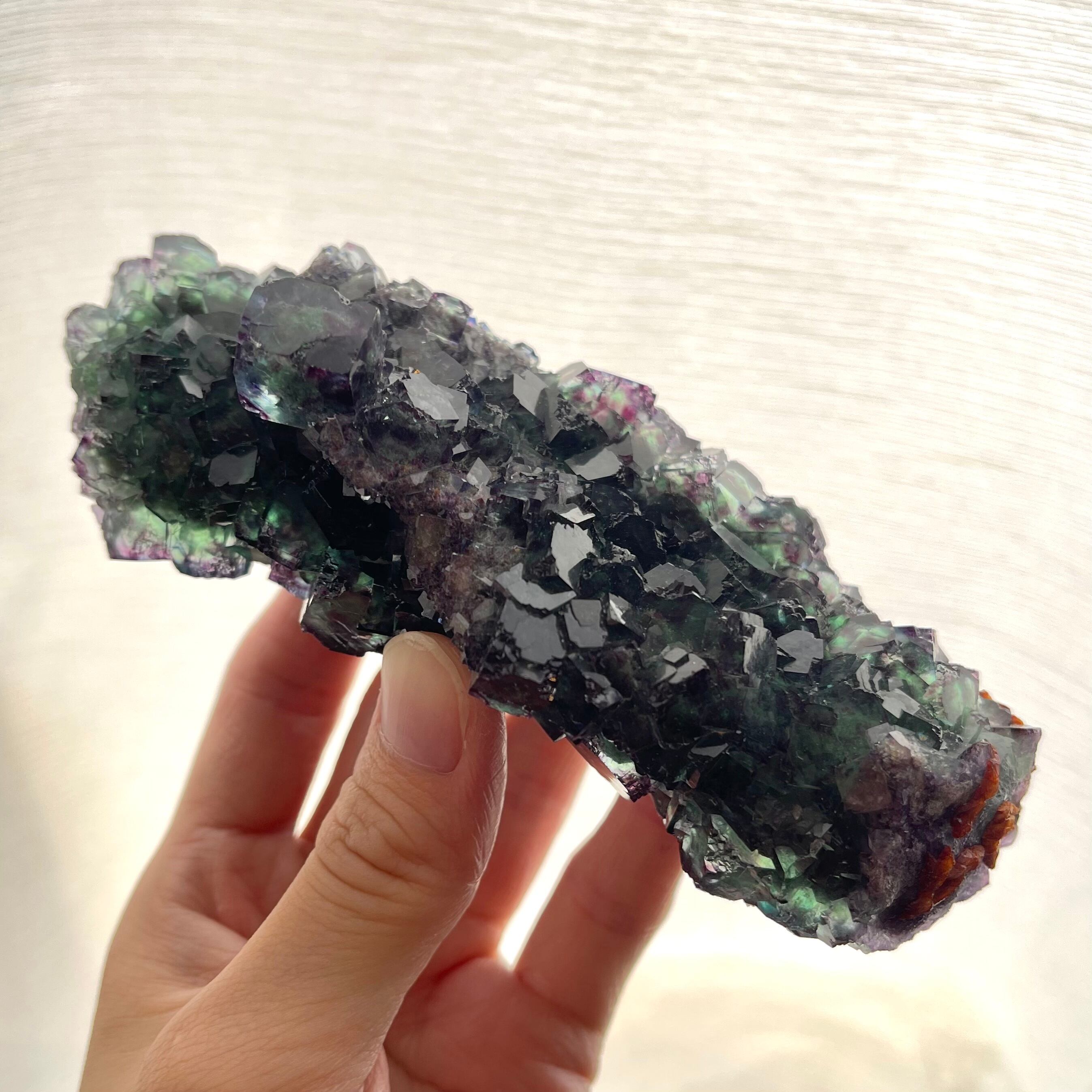 また、飛び出しているメイン結晶はグリーンやパープル、ブルーグリーンの発色の良さや色の入り方が非常に印象的です。