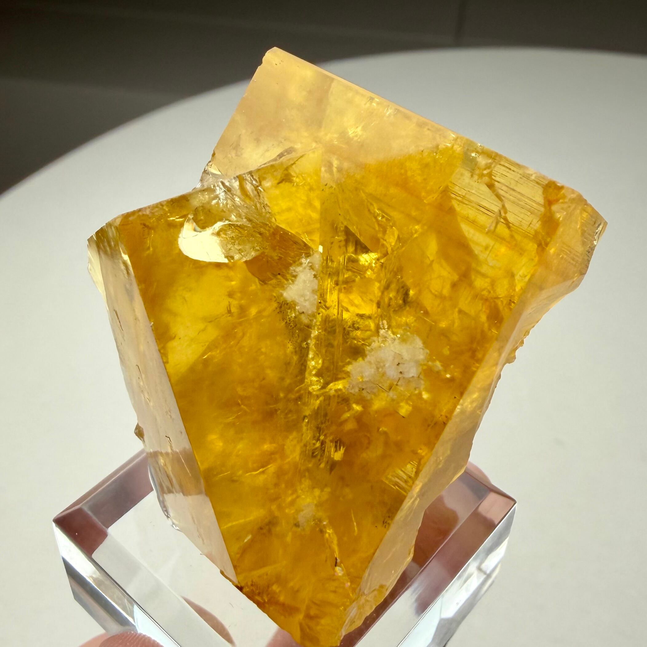 勿論サイズ感のみならず、そのネオンイエローの発色の良さと透明感、強烈なテリを誇る良結晶です。