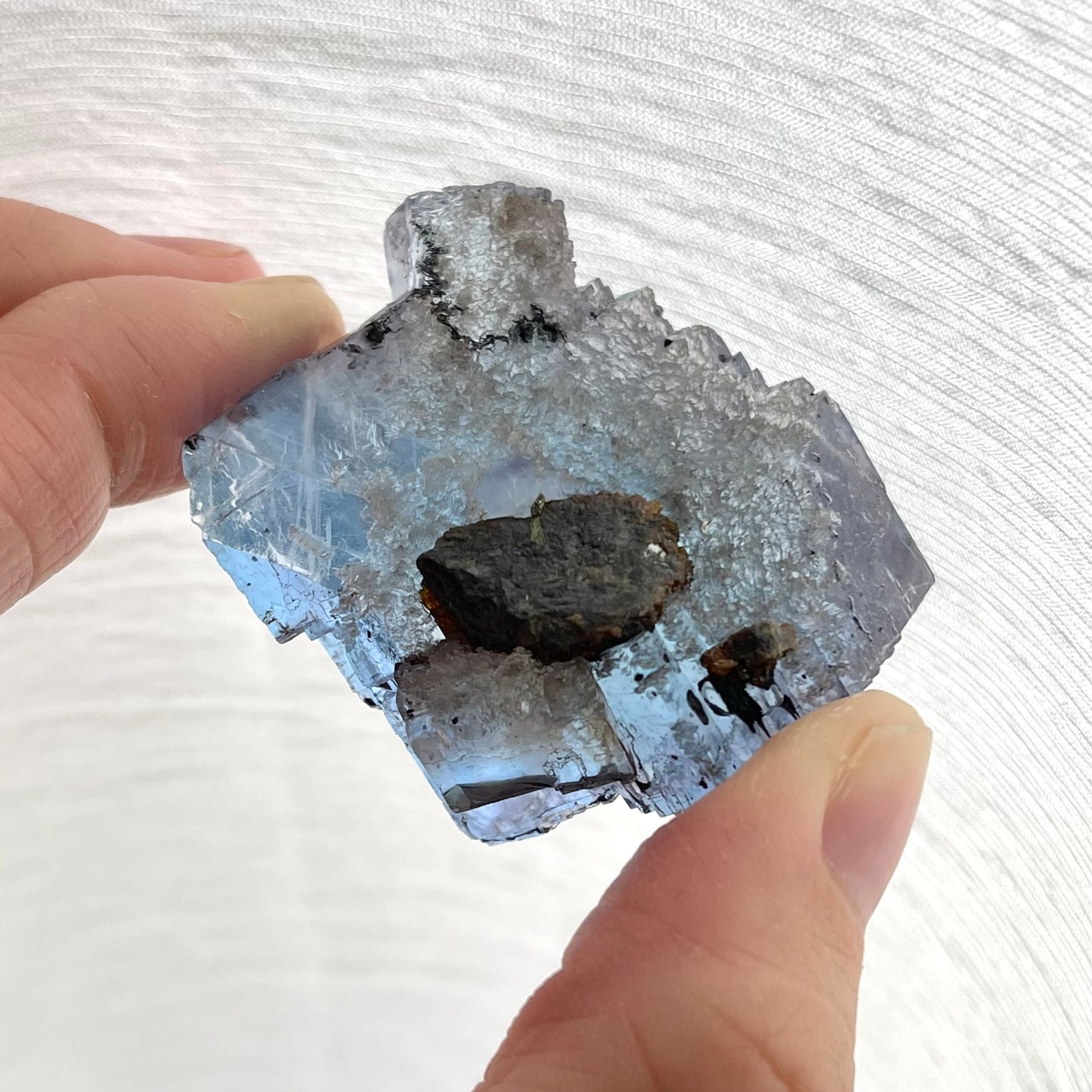 それに加え、しっかりとした厚みがありながらも強烈な透明感と鮮やかなブルーの発色が見られ、イリノイのブルーフローライト収集に区切りを付けられる標本かもしれません。