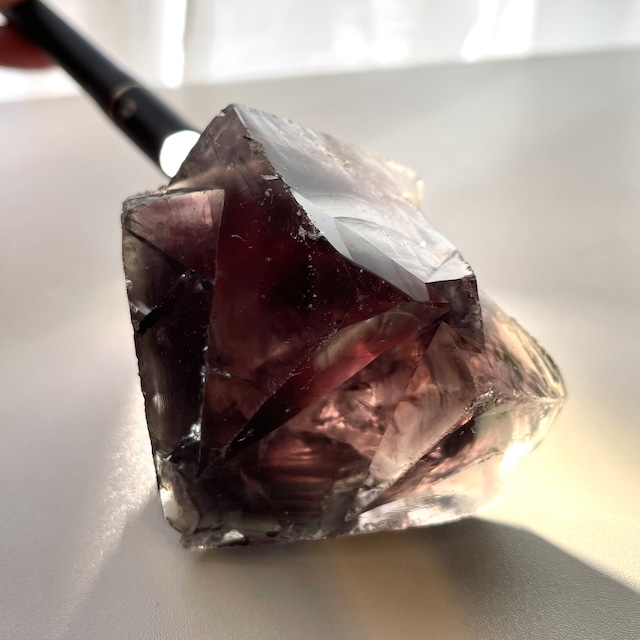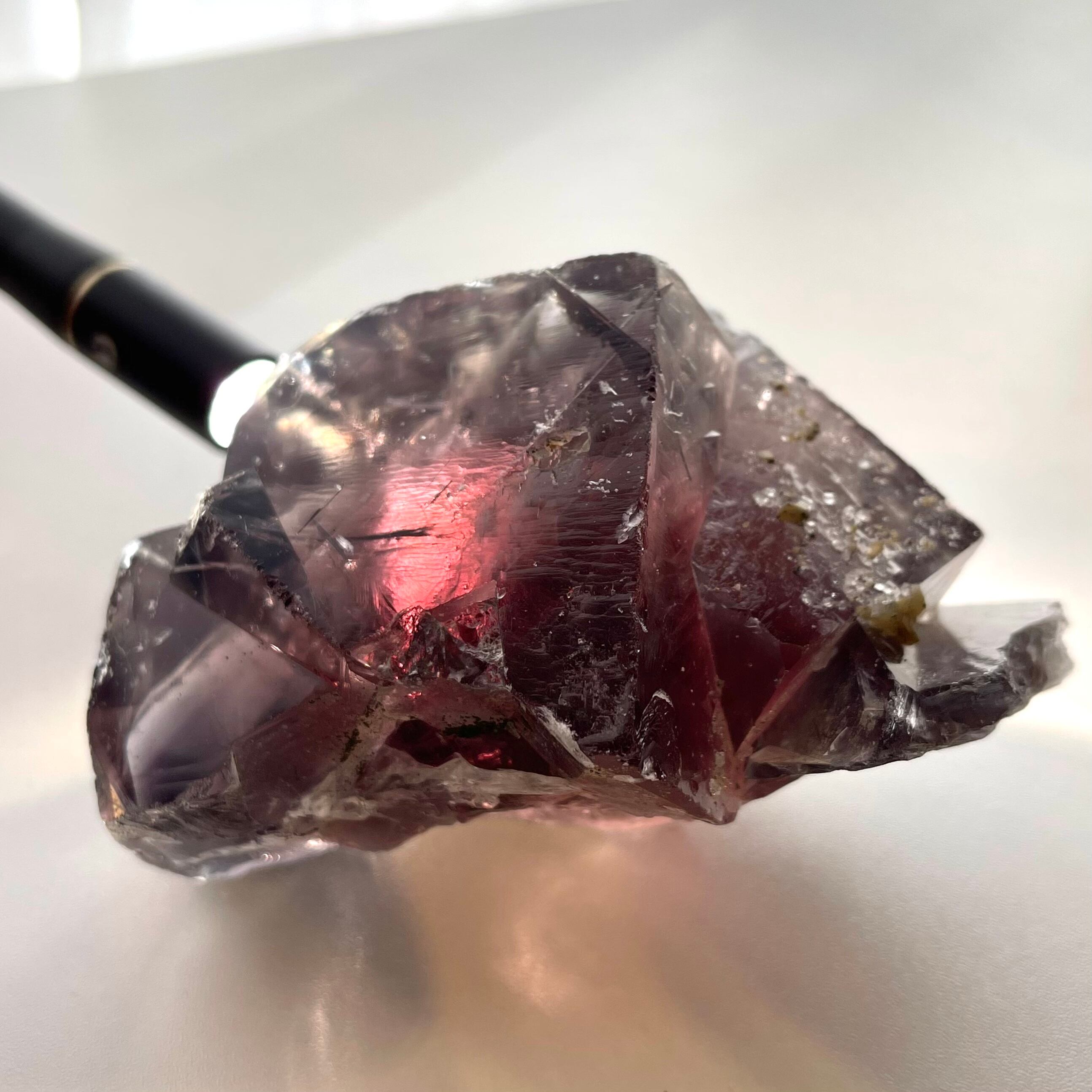 自然光でもしっかりと透けるものの、透過光下では更に濃いボルドーカラーやゾーニングが見られ、その様子は他産地と比べるのも何ですがイングランド、ボルツバーンの良品とも遜色ない水準です。