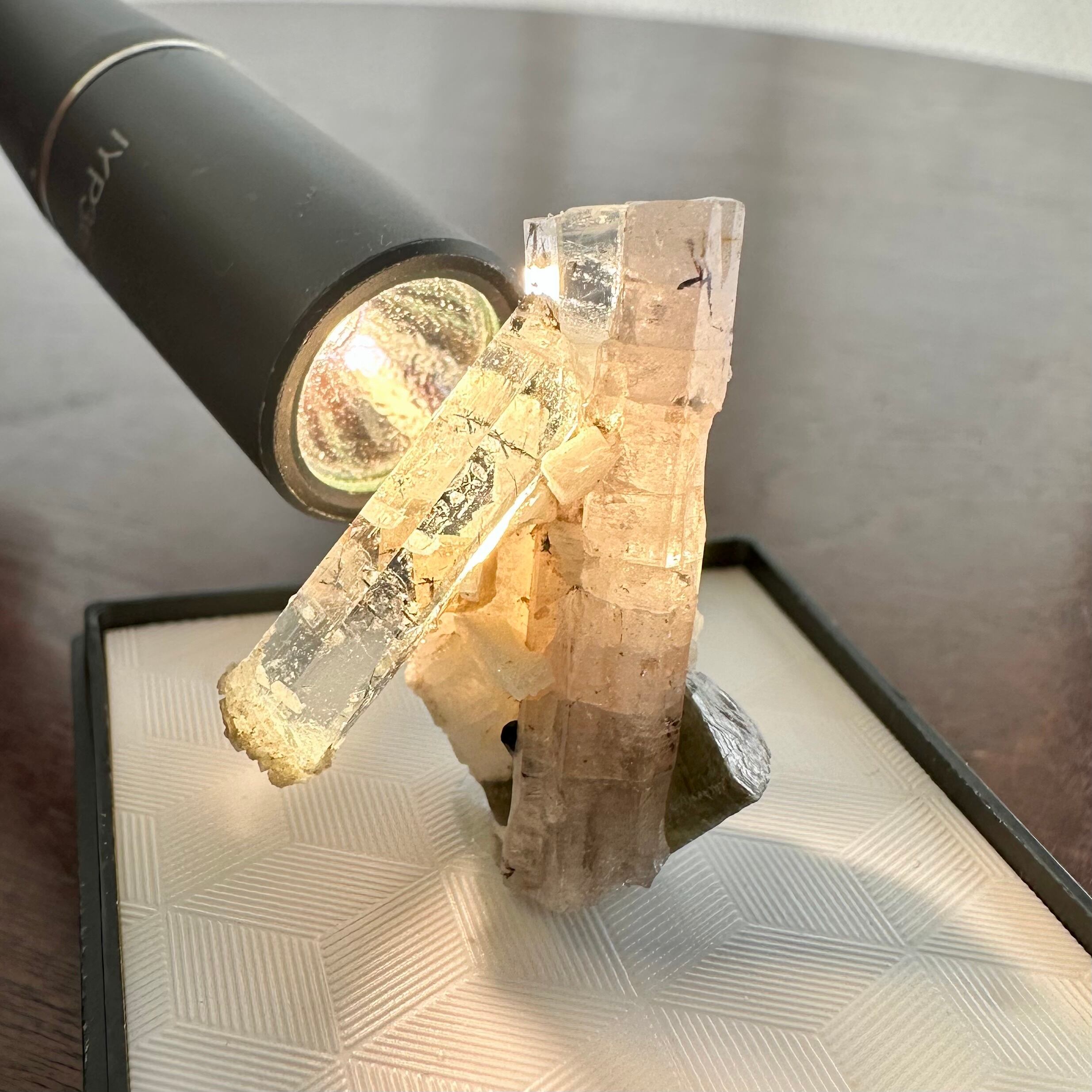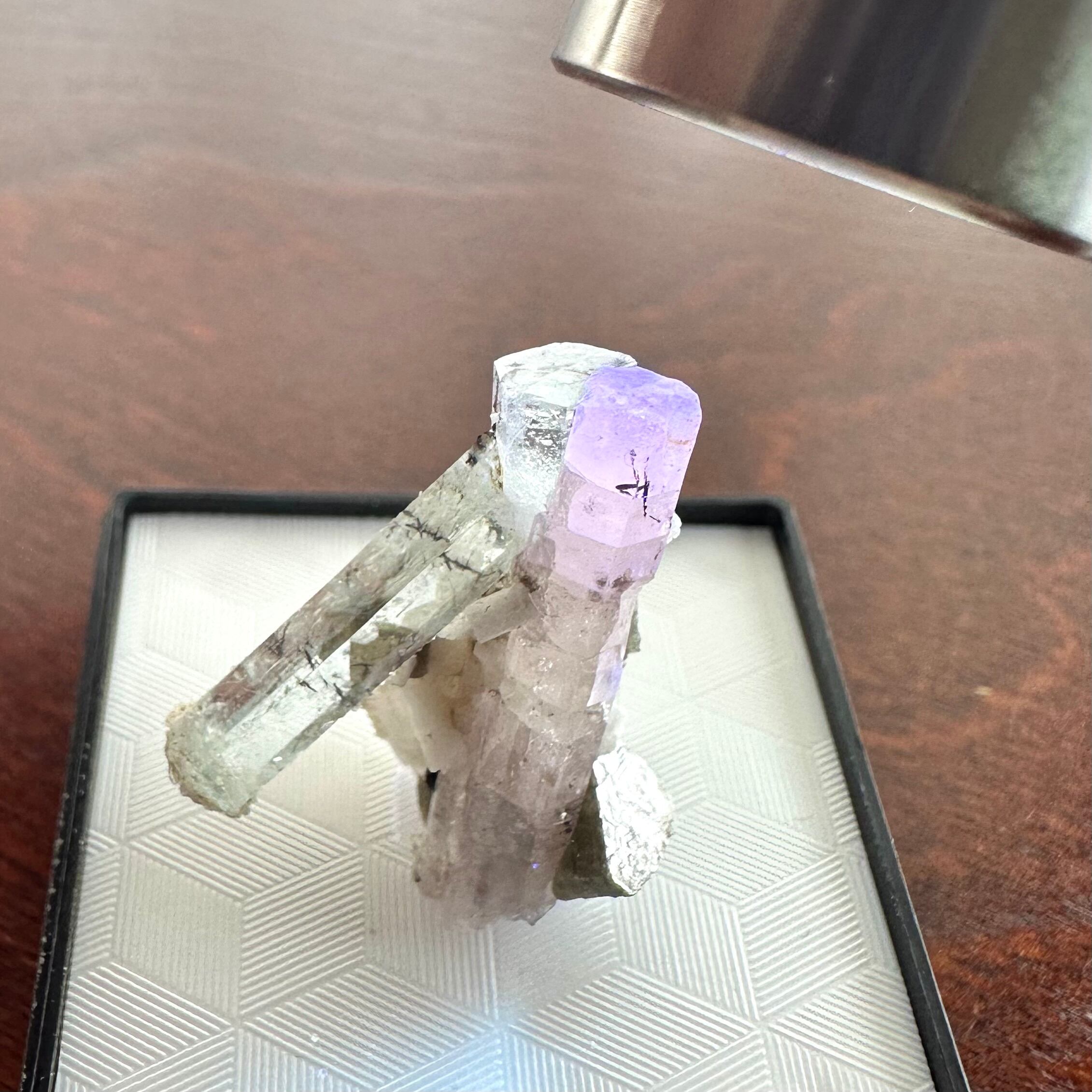 サムネイル標本の収集で有名なRalph D. Clark氏の放出標本でラベルも付属致しますが、氏がコレクションした際にはアクアマリンとモルガナイトとの共生標本と思っていたとの事でラベルはそちらの表記になっている旨ご了承ください。