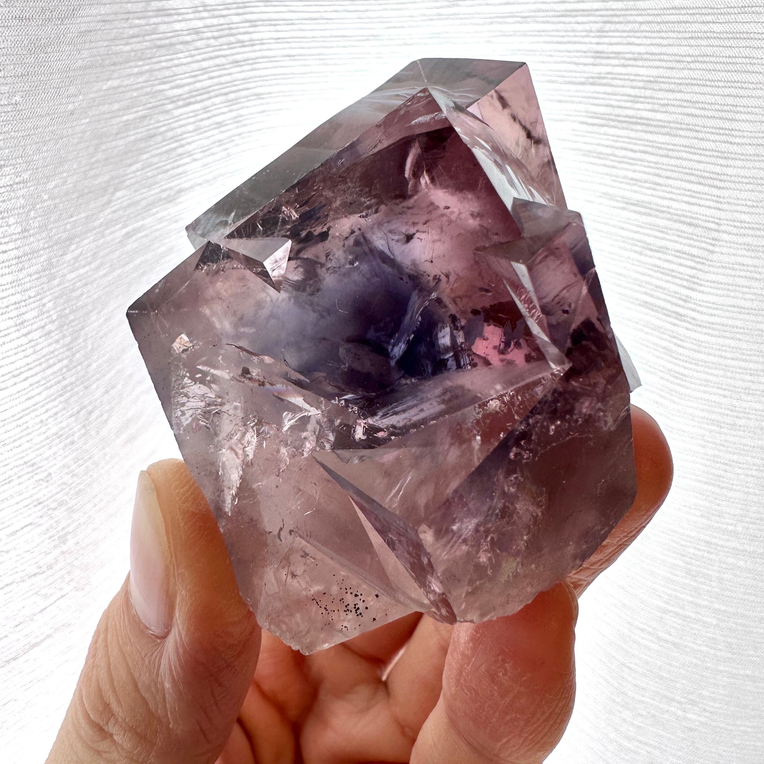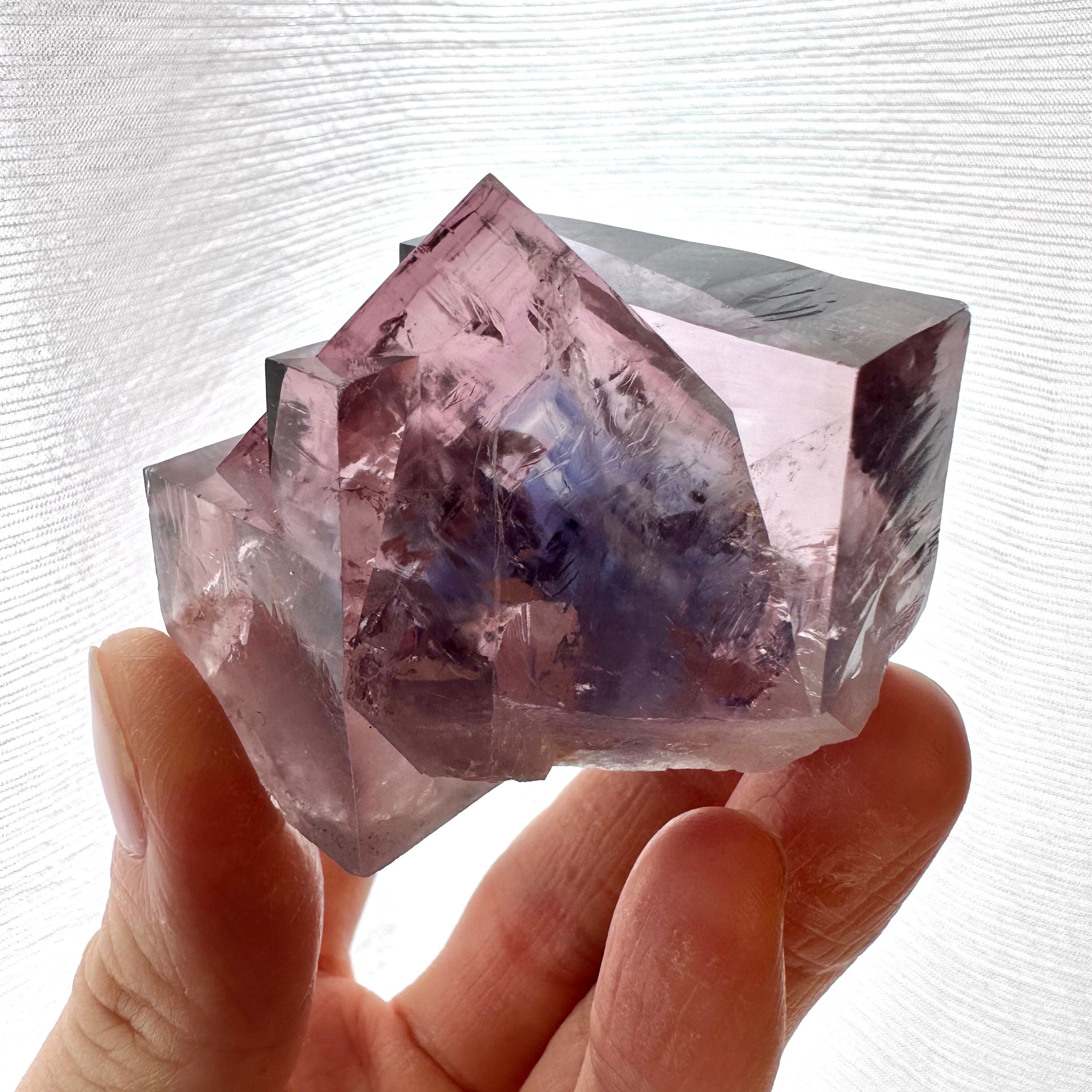 貫入双晶の結晶はサイズ感も抜群で、それに反して強烈な透明感を維持しています。