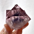 角度や光源で見え方は変わるものの、基本的にはピンキッシュパープルの結晶にブルーパープルのコアが見られる結晶で、強烈なテリとその独特な発色が魅力的な標本です。
